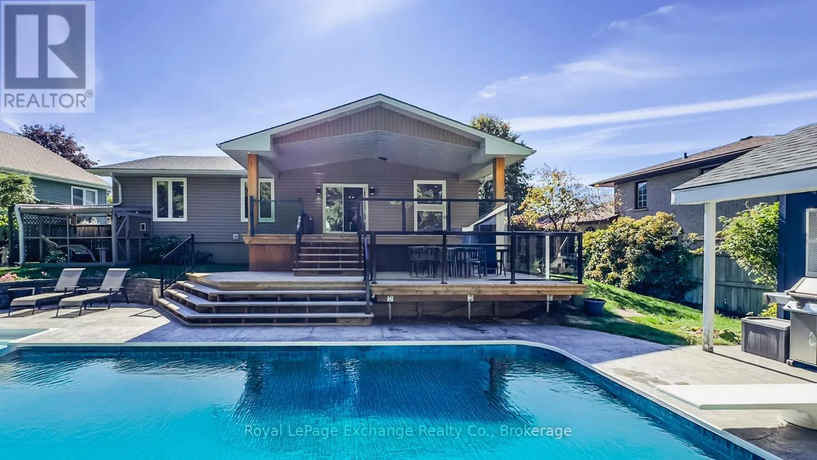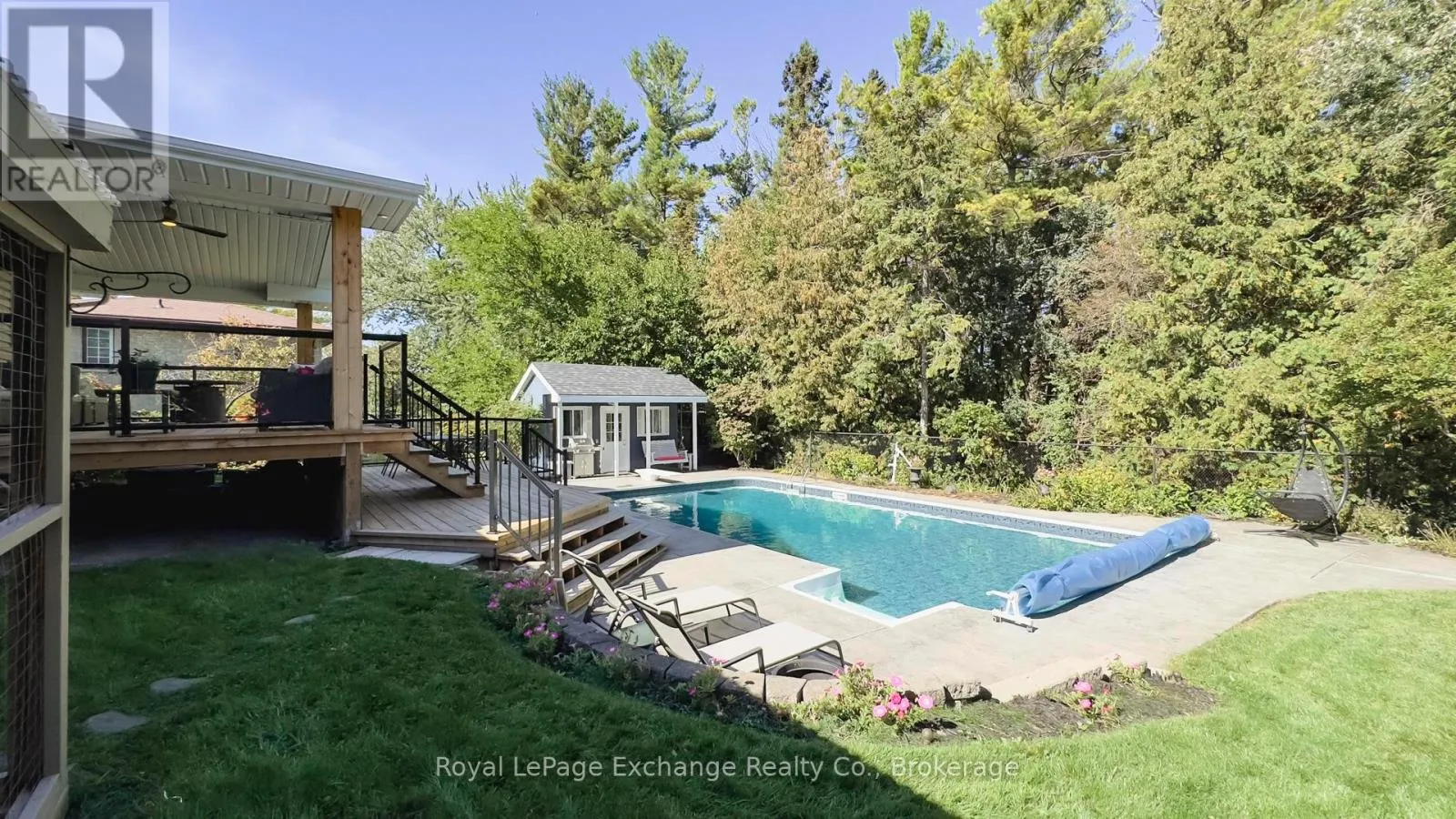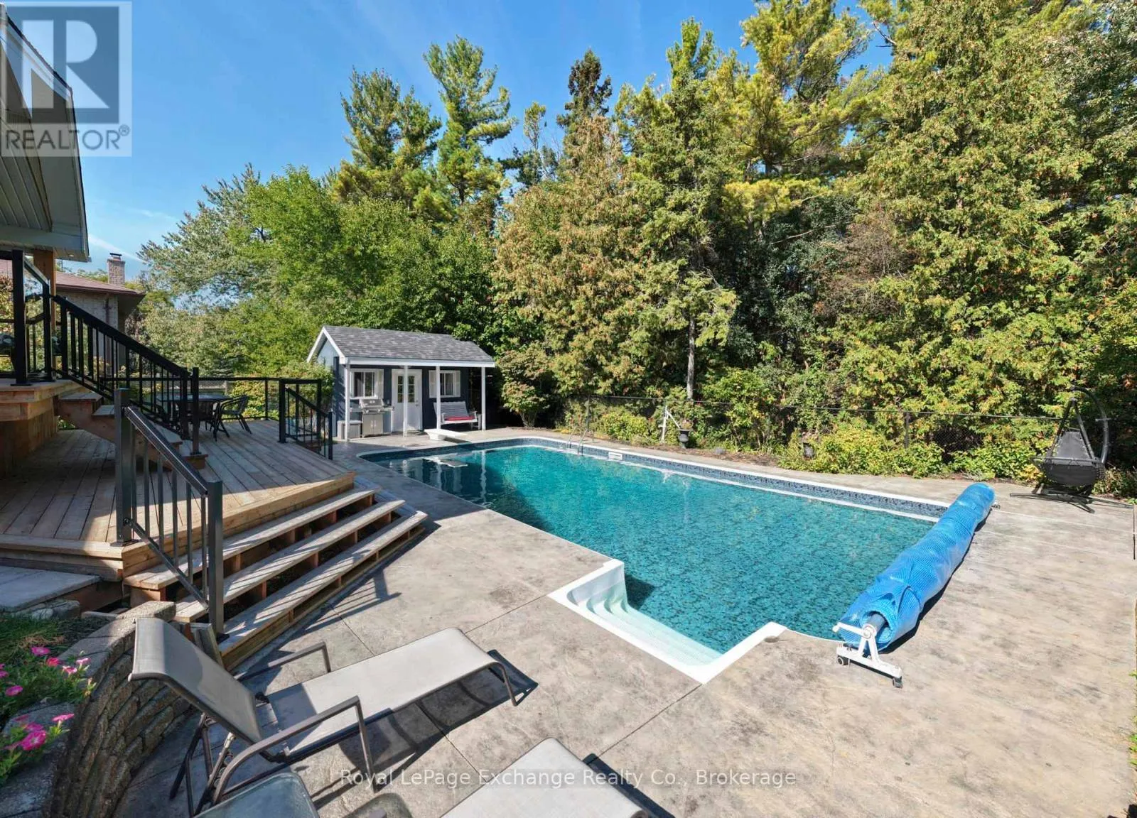 Cross Streets: Goldie & McPherson. ** Directions: From Durham Street, turn onto McPherson Cres, and then onto Goldie Cres. A picture-perfect location on a quiet cul-de-sac, backing onto greenspace, and easy access to the Davidson Centre with all of its parks and amenities. First time on the market in over 30 years for this beautiful custom-built family home that has been thoughtfully updated and well-maintained over the years. Pride of ownership is clear from the moment you pull in the driveway, with mature trees and tasteful landscaping, and updates to the windows, siding and roof shingles in recent years. Your first impression once in the main living space will be a a sense of warmth and welcome, with plenty of natural light, a cozy ambiance from the propane fireplace, and custom built-in cabinetry. The eat-in kitchen offers stainless steel appliances, granite countertop on the island, plenty of storage, and access to an oversized covered deck that overlooks the 18'x36' in-ground pool and fully-fenced private yard. Imagine long summer days enjoying the pool with your favourite people, hosting a backyard party on the two-tiered deck, or getting cozy with a good book on a rainy day, still free to BBQ and enjoy nature while remaining comfortable from the elements. A large, updated and spa-inspired main bathroom, plus three sizeable bedrooms on the main floor offers privacy and comfort for your family. Downstairs you will find a newly updated full bathroom, a spacious and versatile rec room with plenty of natural light, a functional laundry room and multiple well-configured storage options. What is notable about this desirable location is the walkability factor: you are steps from the trail system, and within a 15 minute walk to two local grocery stores and schools; without compromising on the tranquil neighbourhood. This is a house that truly feels like a home. There is nothing to do here but move in and enjoy. You won't want to wait! (id:27476)