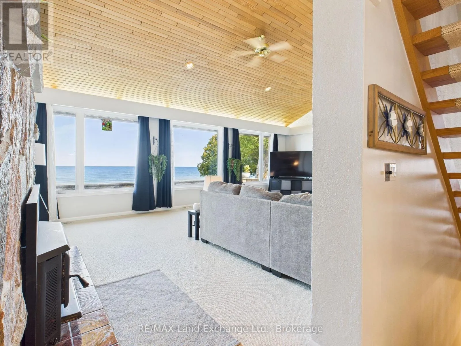 Cross Streets: Kincardine Ave. ** Directions: 147 Goderich Street. Prestigious Lakeside Living in Kincardine! Executive 5-Bedroom Home nestled along one of the most exclusive stretches of Lakeside properties in Kincardine, this stunning executive-style home offers over 5,000 sq ft of luxurious living space designed for comfort, relaxation, and entertaining.Boasting 5 spacious bedrooms and 4 well-appointed bathrooms, the home features a chefs kitchen complete with built-in appliances and a large centre island perfect for family meals or entertaining guests. The grand dining room opens directly onto a lake-facing patio, creating an effortless flow between indoor and outdoor living. Enjoy breathtaking lake views from the expansive living room, framed by oversized windows that flood the space with natural light. The lower level includes a dedicated spa, sauna, and fitness room, offering a private retreat within your own home.Step outside to a beautiful, private backyard oasis filled with mature perennial gardens, ideal for quiet reflection or vibrant gatherings.This is a rare opportunity to own a lakefront gem in one of Kincardines most sought-after neighborhoods. (id:27476)