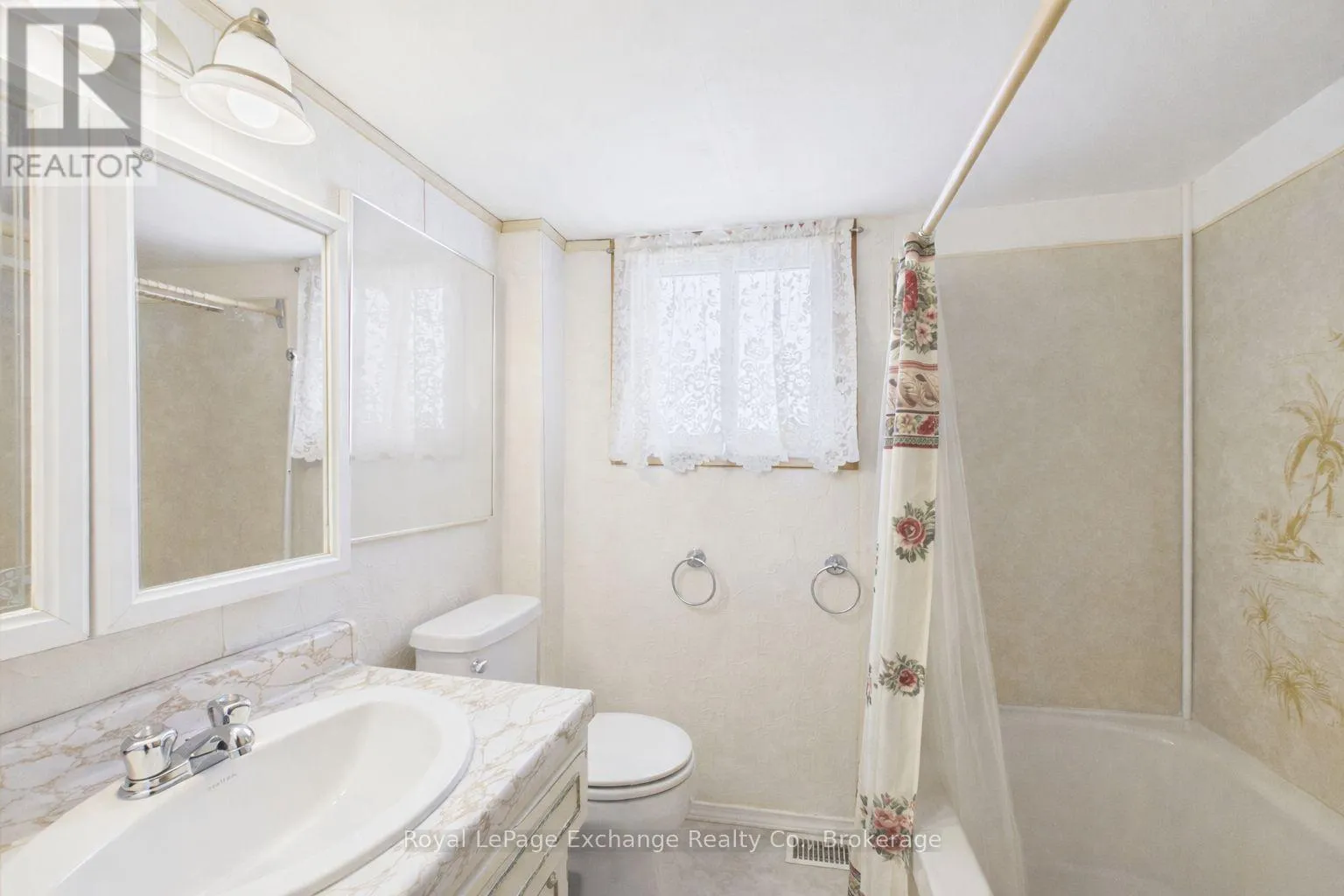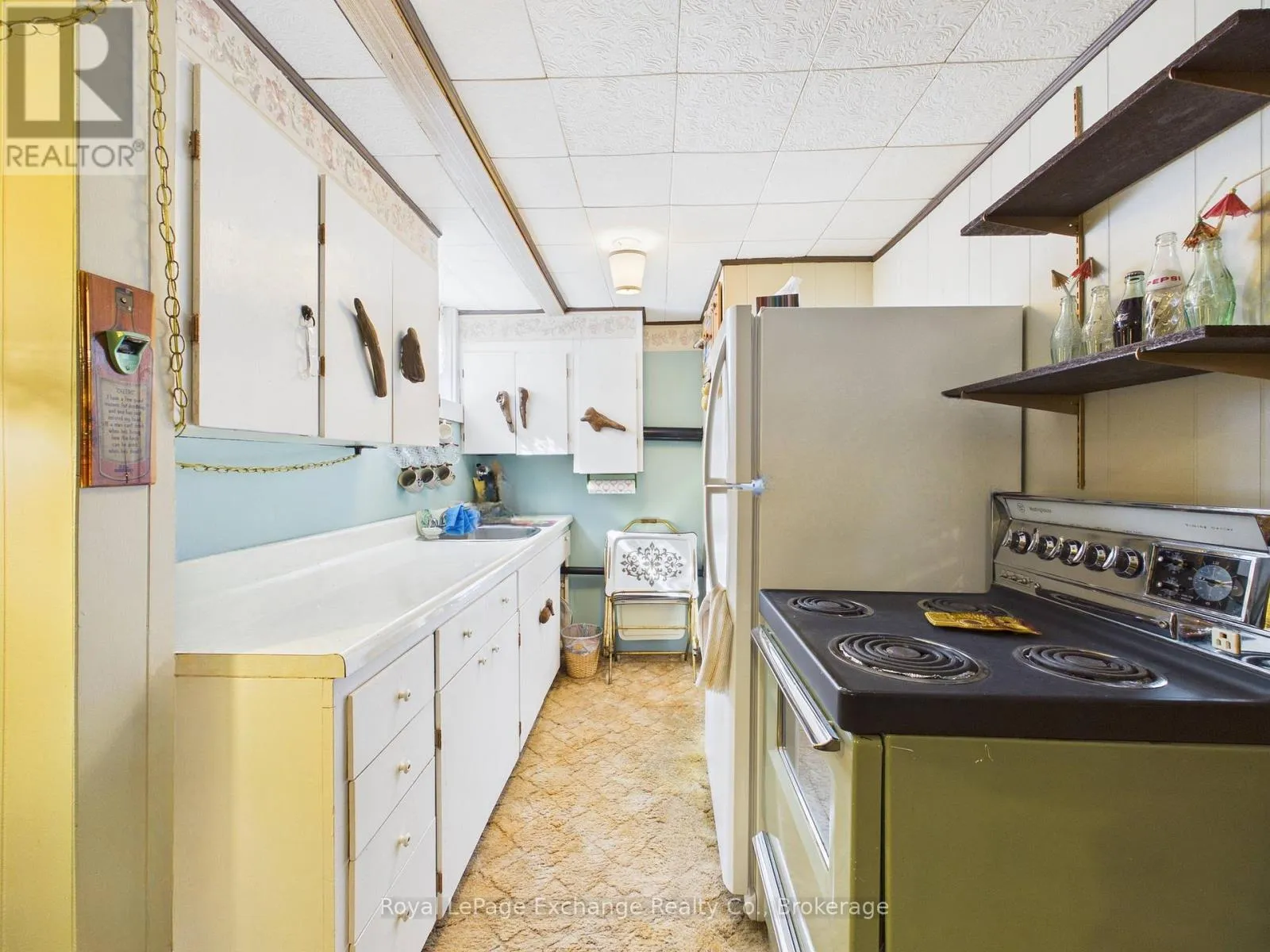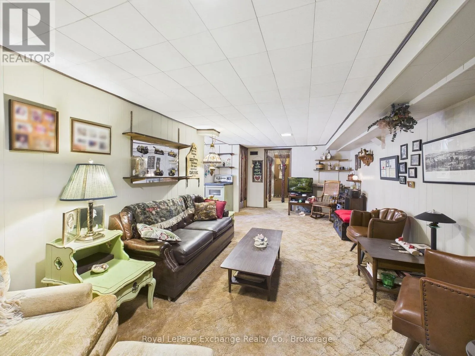 Cross Streets: St Albert St & Princes St. ** Directions: Heading N on Queen St. turn R onto St Albert St. arrive at property on R. Ideally located close to downtown Kincardine and within walking distance to the sandy shores of Lake Huron, this home offers a great location with plenty of potential. The main floor features a living room, eat-in kitchen, separate dining room, den, and a convenient 2-piece bathroom, providing a functional layout for everyday living. The second storey consists of 3 bedrooms and a 4-piece bathroom. The lower level adds additional living space with a second kitchenette, family room, and laundry area, offering flexibility for extended family or guests. Situated on a rare double lot, this property presents a unique opportunity with the potential for severance (subject to approvals). Additional features include a carport, convenient access to parking from both Princes Street and St. Albert Street, a patio on the east side of the home, garden shed, and nicely landscaped yard including lovely smoke bushes, a huge red maple, burning and rose of sharon bushes . (id:27476)