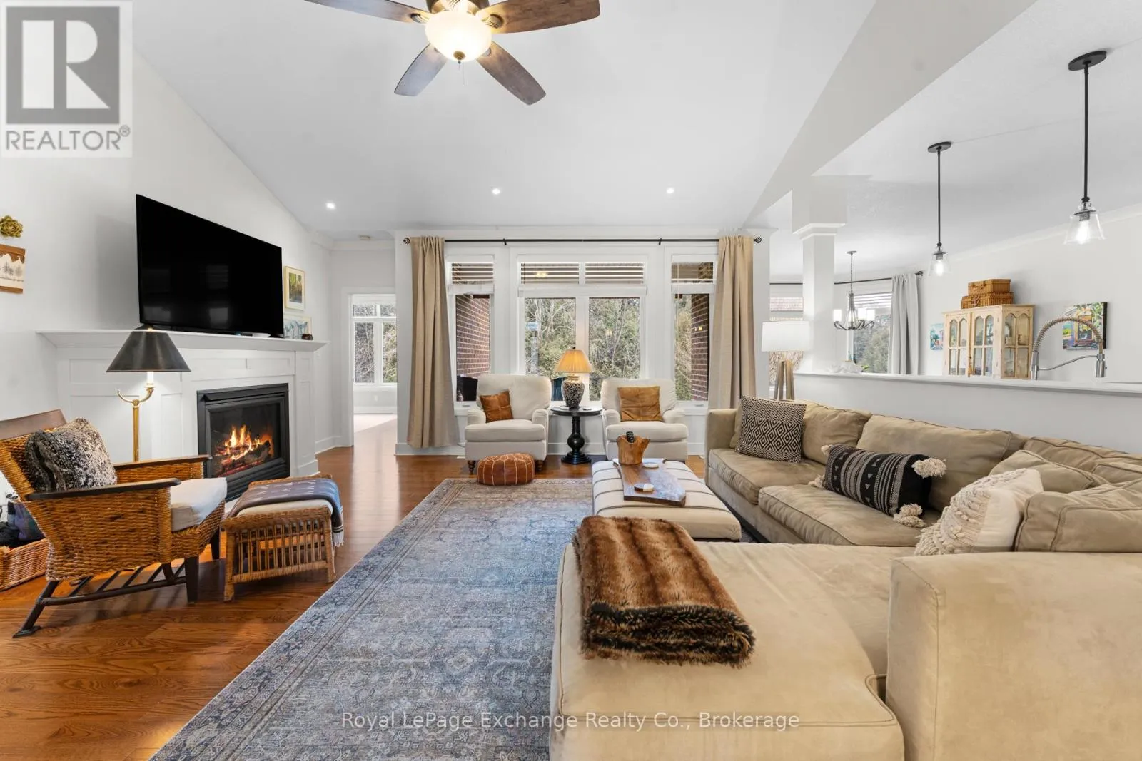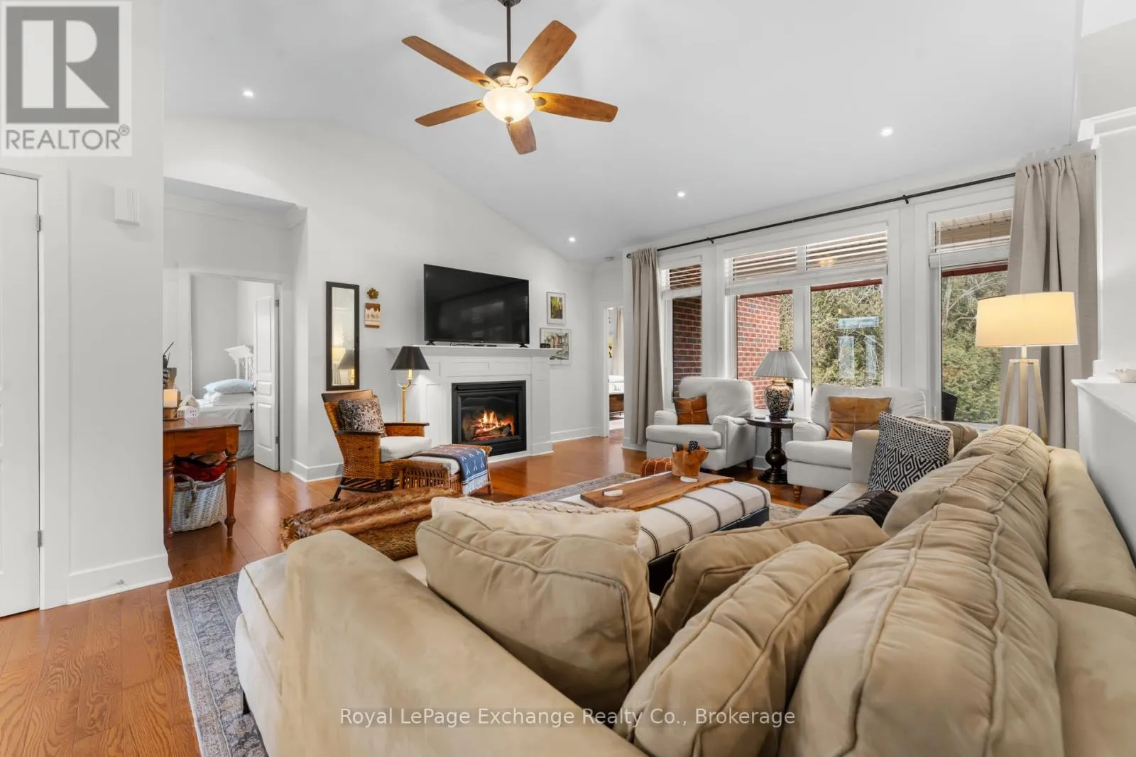 Cross Streets: Hunter. ** Directions: West on Russell st from Hwy 21 Left on Hunter, Look for signs. Discover this executive-built solid brick bungalow just moments from the shores of Lake Huron. Set on an impressive 3/4 acre private ravine lot, this property is surrounded by mature trees, beautifully landscaped gardens, and a serene natural setting with walking trails right at your doorstep-offering the perfect blend of luxury and tranquility. Step into a bright, open-concept main floor designed for modern living, complete with abundant storage throughout. The home features two spacious bedrooms plus a versatile office/den that can easily serve as an additional bedroom. The stunning primary retreat boasts a fully upgraded five-piece ensuite and 2 spacious closets. The inviting living room is highlighted by a beautiful gas fireplace-perfect for cozy evenings.The fully finished lower level continues the open-concept feel, with large windows that flood the space with natural light. This level offers two additional bedrooms, a four-piece bathroom, and extensive storage-ideal for growing families or hosting guests. Hobbyists and workshop enthusiasts will appreciate the dedicated workshop space, perfect for projects year-round. Step outside to your own secluded backyard oasis, complete with a covered back deck featuring a retractable awning and a beautifully finished stone patio-perfect for relaxing or entertaining in total privacy. (id:27476)