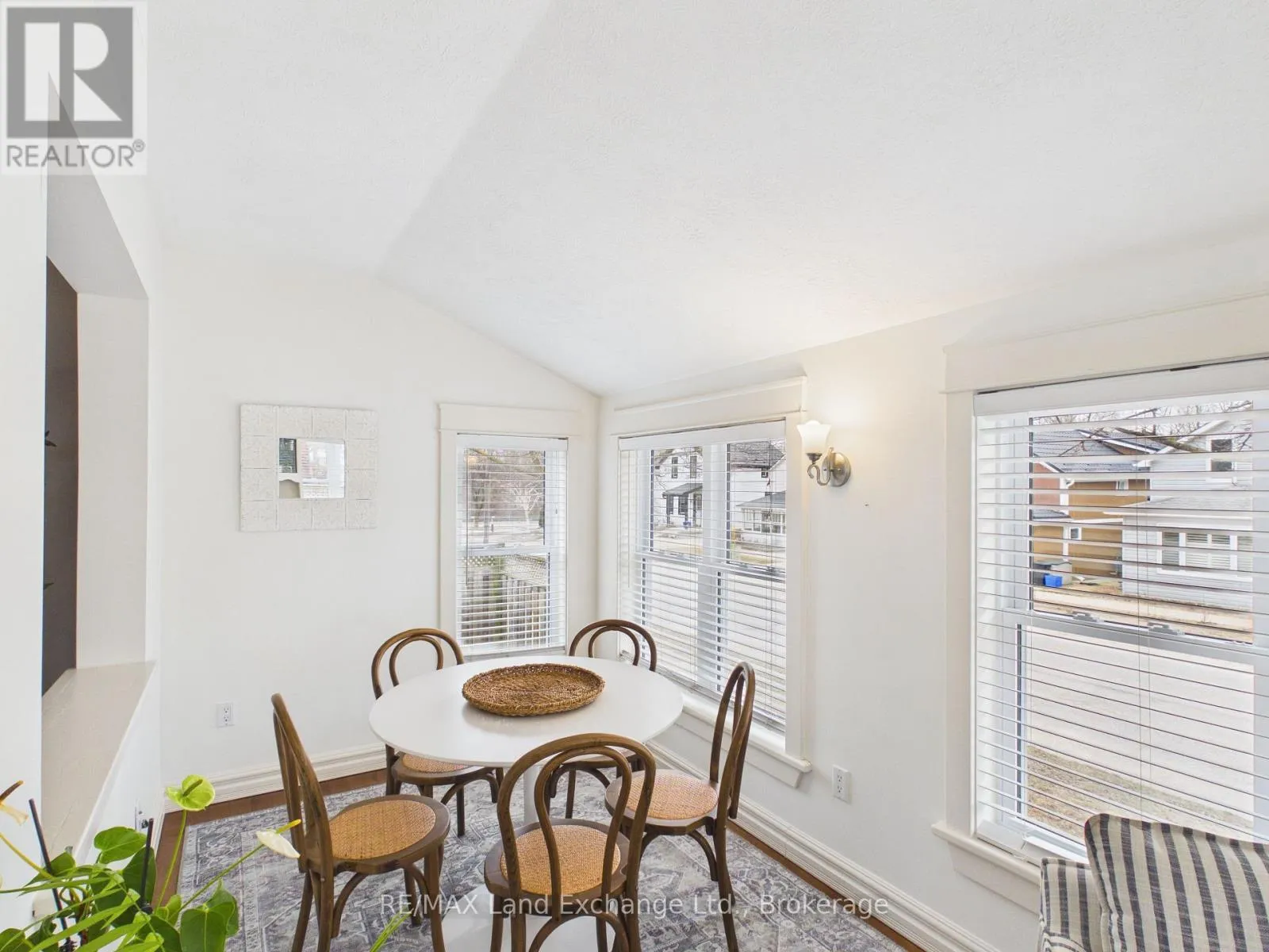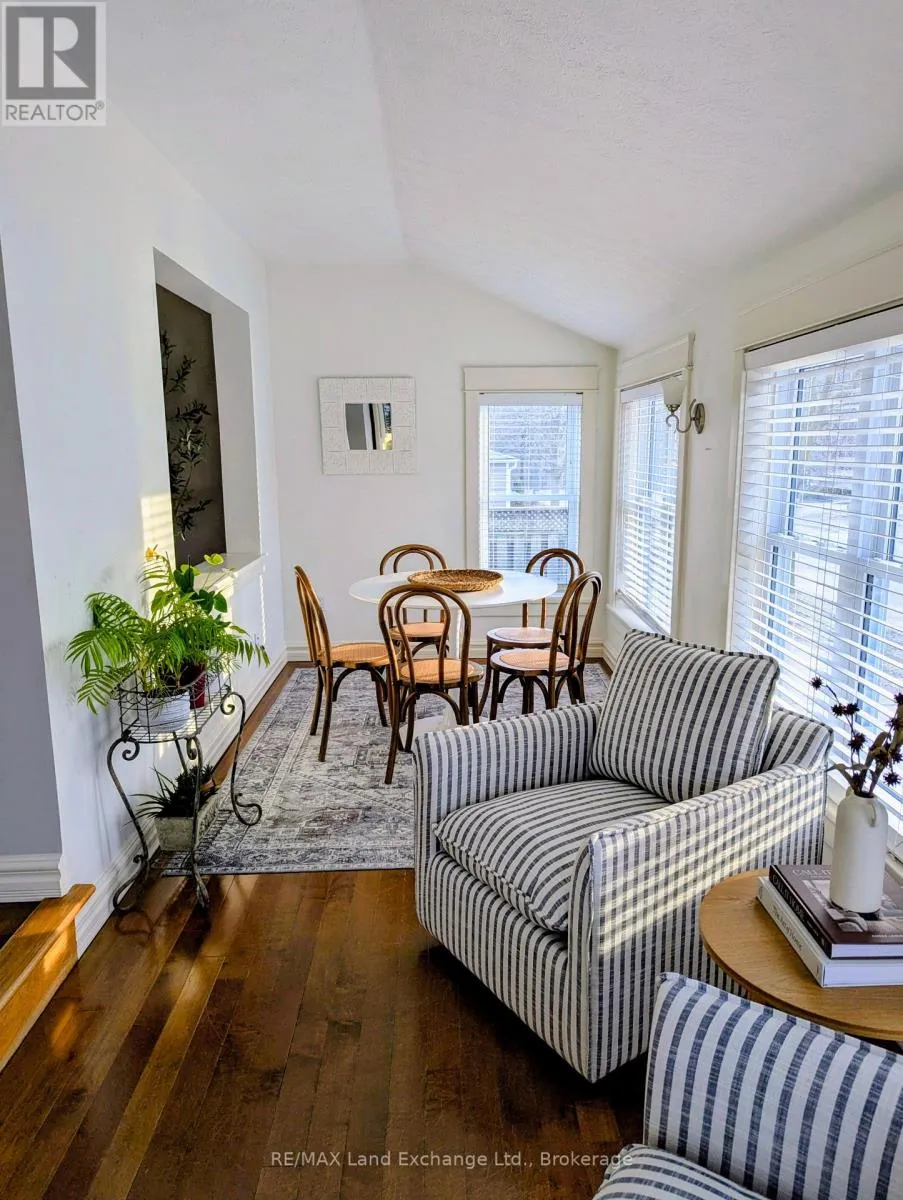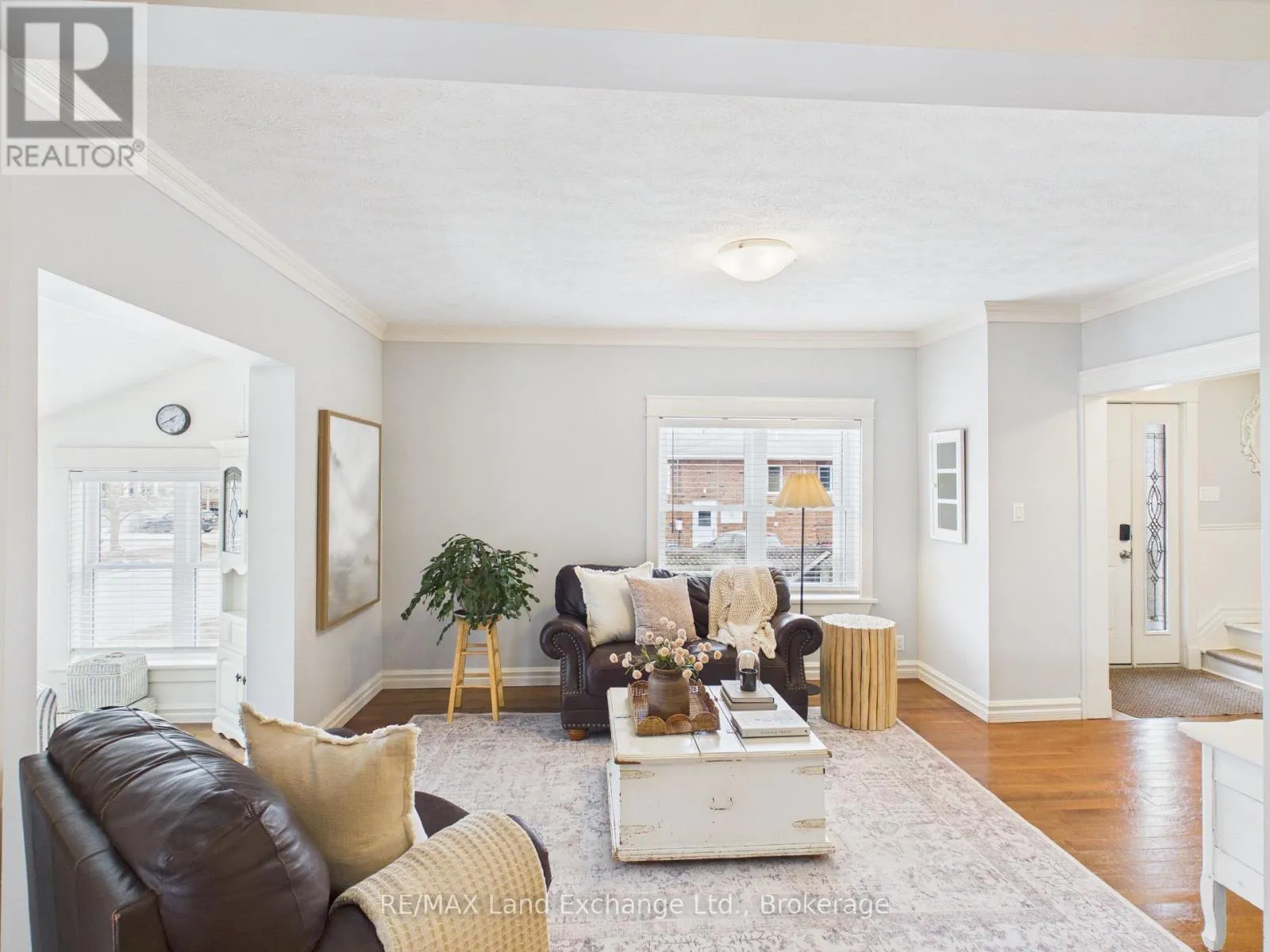 Cross Streets: Durham Street. ** Directions: 842 Olde Victoria. Ideally located in the heart of downtown, this well-maintained home is just a short walk to the harbour, shops, restaurants, and all the amenities that make Kincardine's vibrant downtown so desirable.Pride of ownership is evident throughout, with numerous upgrades completed over the years including windows, insulation and siding, eavestroughs and soffits, shingles, plumbing, and a 200-amp electrical service. The interior features hardwood floors, ceramic tile, detailed trim work, and crown moulding.The bright eat-in kitchen offers convenient access to the rear deck, perfect for outdoor dining or relaxing. The surprisingly private backyard includes mature perennial gardens and an insulated storage shed, providing both beauty and practical storage.This move-in-ready home combines comfort, character, and an unbeatable location close to the harbour and downtown conveniences. (id:27476)
