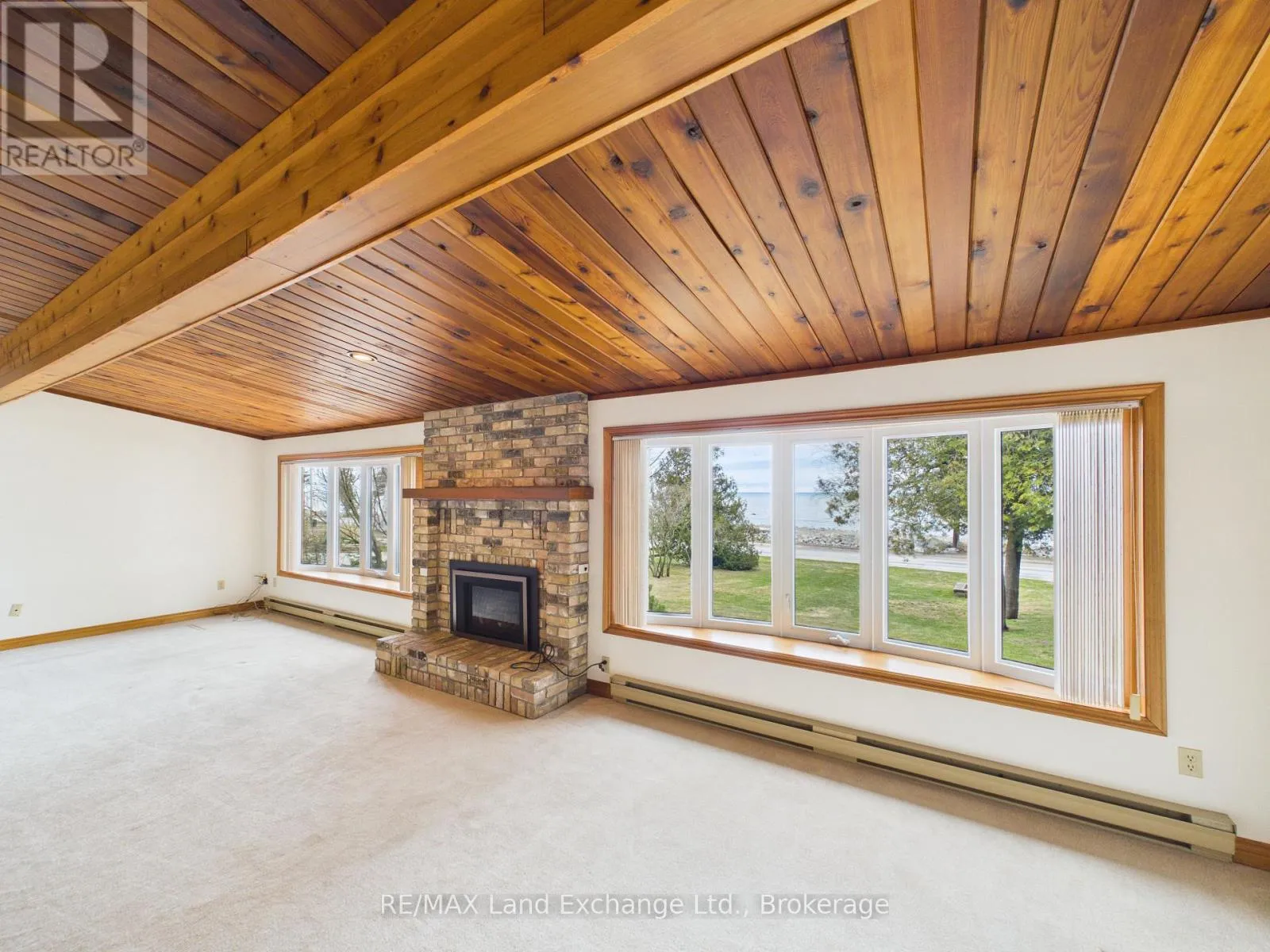 Cross Streets: Boiler Beach, Bruce Avenue. ** Directions: From Bruce Avenue, Take Goderich Street to Sign on your Left(East). Welcome to your dream lakefront retreat! Add your touch to this charming 1.5 storey home offers the perfect blend of comfort, functionality, and breathtaking natural beauty, with uninterrupted views of stunning Lake Huron right from your doorstep. Featuring 3 spacious bedrooms and 2.5 bathrooms, this well-designed home provides ample space for family living or weekend getaways. The bright and inviting main floor showcases large windows that capture incredible lake views and fill the home with natural light. The upper level offers additional privacy with generously sized bedrooms, while the primary suite offers lots of space and a functional ensuite. A total of 2.5 bathrooms ensures convenience for both residents and guests. Enjoy the ease and reliability of full municipal water and sewer services-an added bonus for lakefront living. Step outside to take in the panoramic views, listen to the waves, and experience everything waterfront living has to offer. Whether you're looking for a year-round home or a seasonal escape, this property delivers the ideal combination of location, lifestyle, and comfort-all set against the backdrop of Lake Huron's world-class sunsets. (id:27476)
