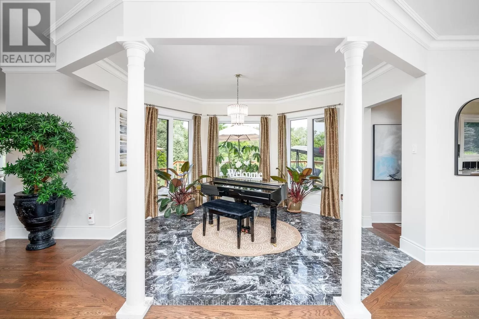 Cross Streets: Jane and King. ** Directions: Jane Street Just North of Downtown King City. Welcome to this spacious and beautifully updated 3+2 bedroom multigenerational opportunity home offering privacy, functionality, and natural serenity just minutes from town. Nestled on a picturesque lot backing onto Humber River Catchment Area and mature forest, this home features a thoughtfully landscaped backyard oasis complete with multi-level decks, a pond, perennial gardens, and fruit trees including apple and cherry. Step into the grand open-concept foyer with ceramic flooring that flows into a front den perfect for a home office with French doors and large windows overlooking the front gardens. The main level boasts freshly stained hardwood floors, pot lights, and fresh paint throughout. The versatile music room/dining room includes a coffered ceiling and rounded windows for a touch of elegance. The chefs kitchen features ceramic floors, centre island with breakfast bar, a large walkthrough pantry, and stainless steel appliances. The breakfast area provides garage access and a walk-out to the expansive deck, overlooking the tranquil backyard. The living room offers a warm and inviting atmosphere, featuring large sun-filled windows, and a classic wood-burning fireplace framed by custom built-in cabinetry perfect for both cozy nights in and elegant entertaining. Its thoughtful layout and timeless finishes provide a comfortable space that seamlessly blends charm and functionality. The primary bedroom impresses with double doors, walk-in closet, and 4-piece ensuite, while secondary bedrooms offer large closets, beautiful garden views and ample natural light. The newly renovated basement features new concrete flooring throughout, pot lights, 3-piece roughed-in kitchen & washroom, laundry room, and two separate entrances ideal for in-laws, rental potential, or extended family use. The basement is ready for your personal touch. Only 5 minutes to King Village, schools, shopping, and restaurants, this home combines true country charmwith urban convenience. (id:27476)