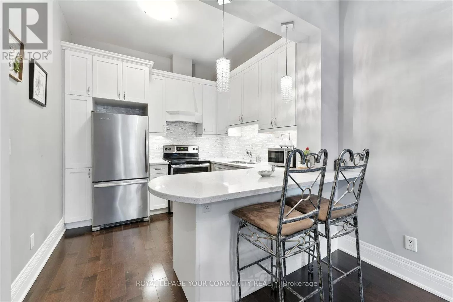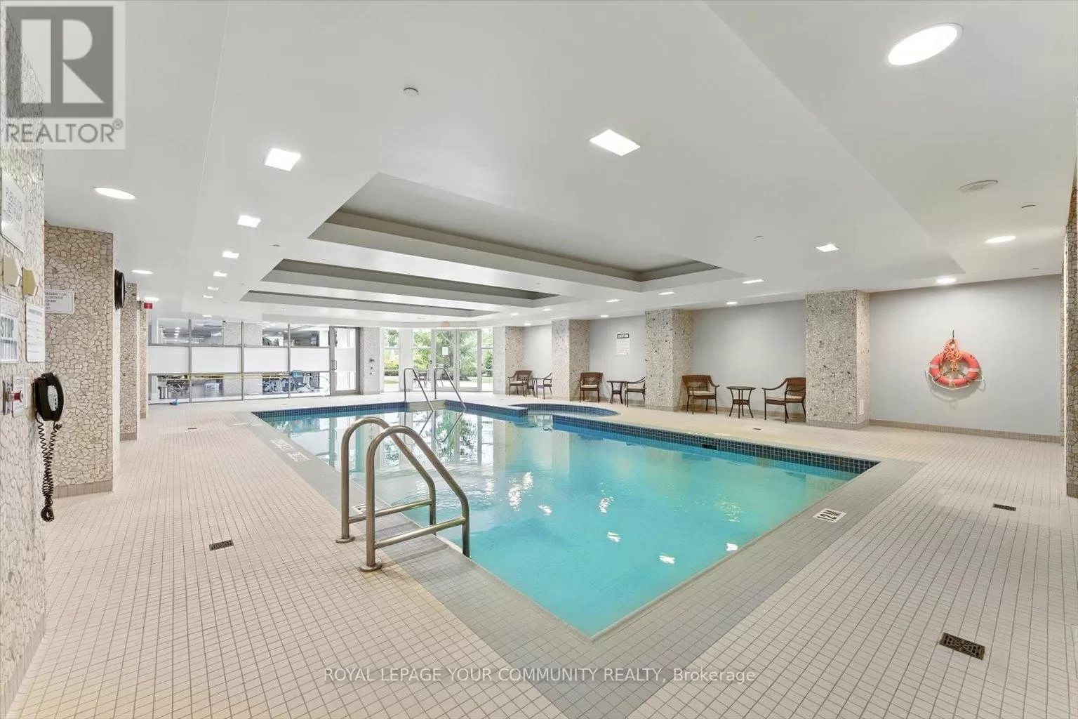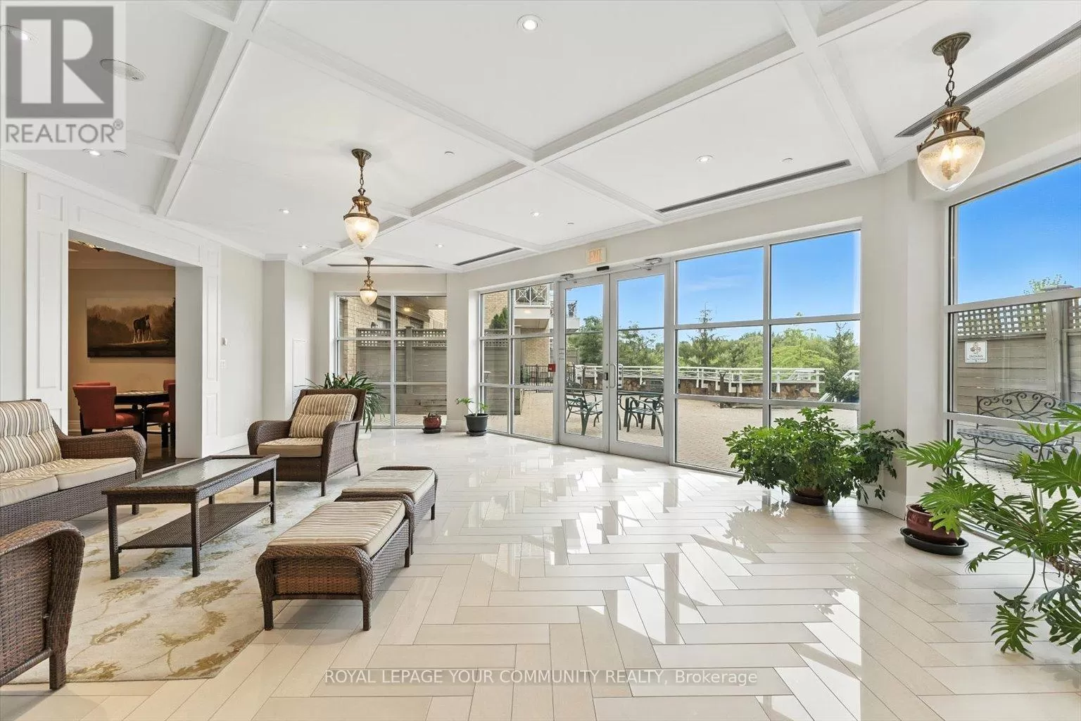 King & Keele Sophisticated 1+1 Ground-Level Condo in a Prestigious Low-Rise Residence. Soaring 10-foot ceilings and oversized windows fill the suite with natural light, creating a refined and airy atmosphere. The open-concept layout highlights a sleek kitchen with quartz countertops, a breakfast bar, stainless steel appliances, and ample pantry space. The living areas opens onto an extraordinary 400 sq. ft private terrace, complete with gas line and water hookup-an entertainer's dream and a true extension of your living space. The versatile den is fitted with custom built-in storage, offering exceptional organization and functionality. The 4-piece bathroom is modern and tastefully finished. In-suite stacked laundry provides everyday convenience. This residence includes one underground parking space plus two lockers-one conveniently located beside the parking spot and another full-sized locker on P2. Enjoy first-class amenities: concierge, elegant party room, indoor pool, guest suite, communal BBQ terrace, and a fully equipped fitness centre. North-facing, Perfectly situated minutes to the GO Station, scenic trails, dog parks, and top dining destinations (id:27476)