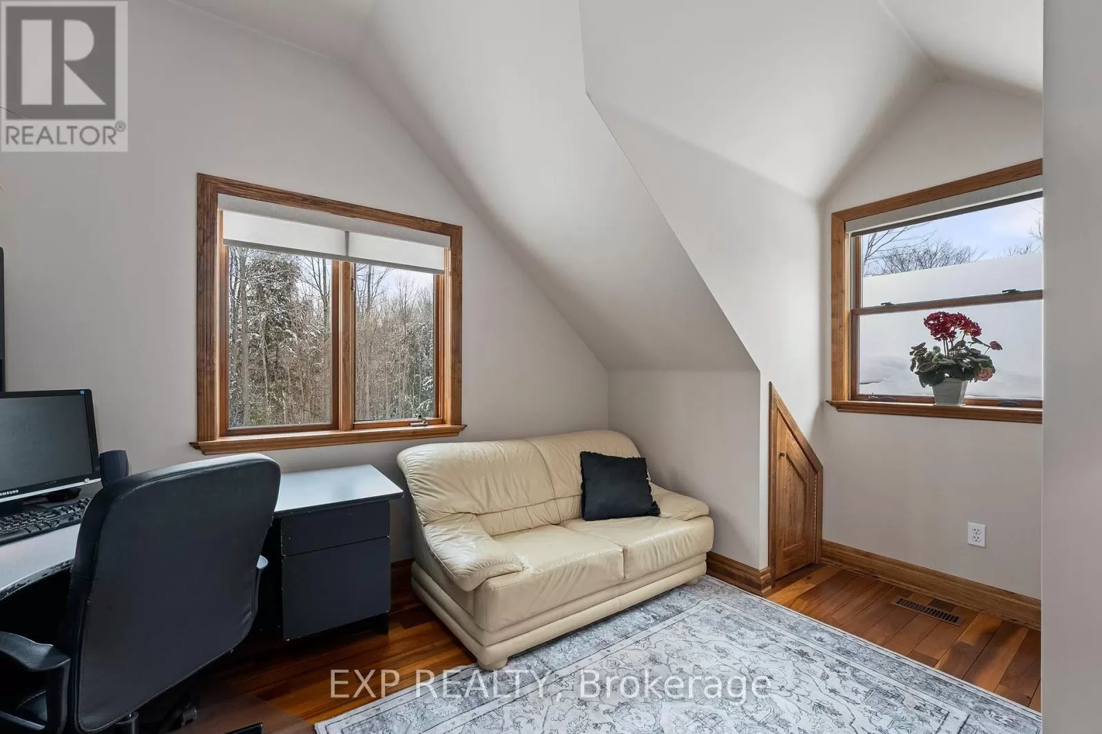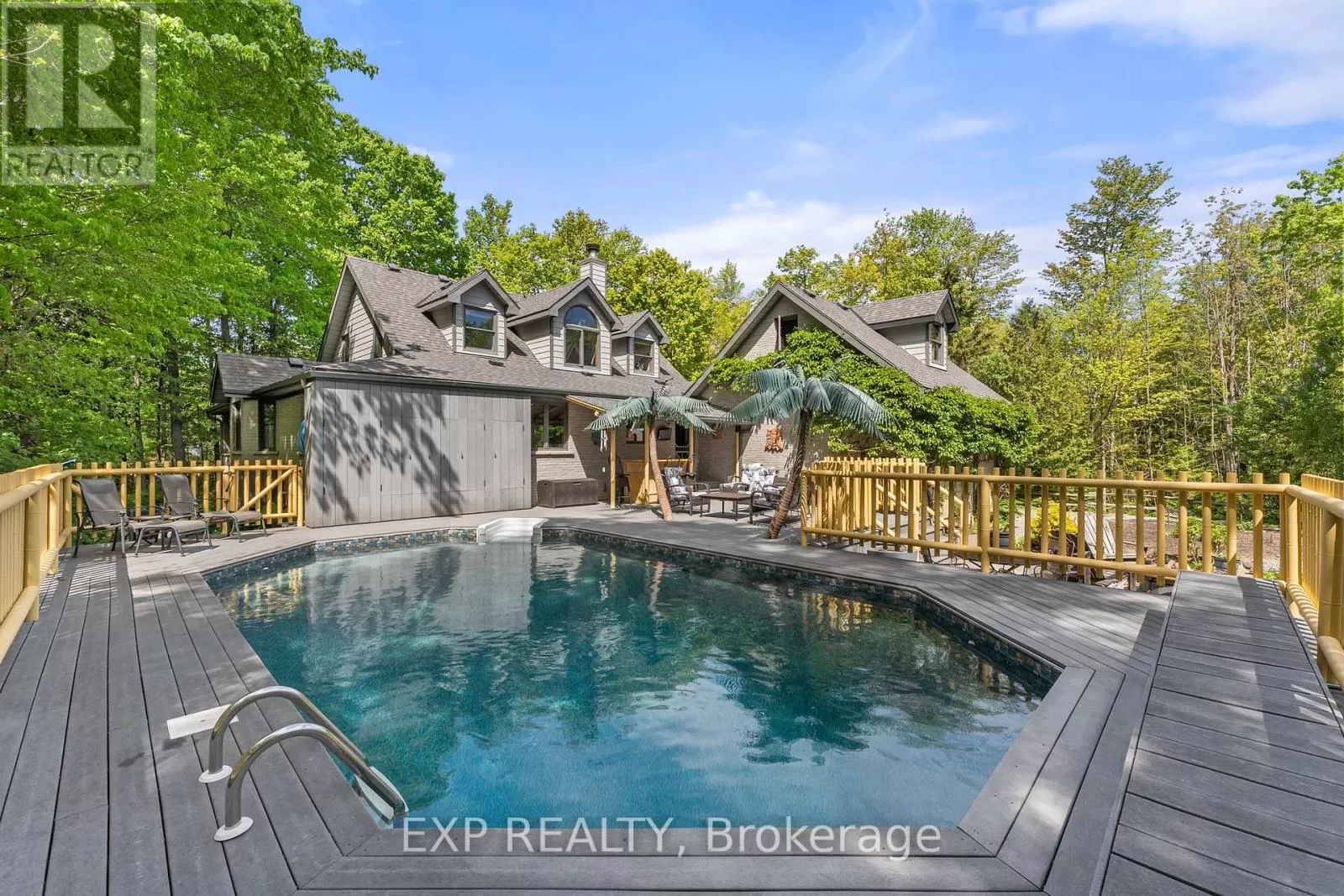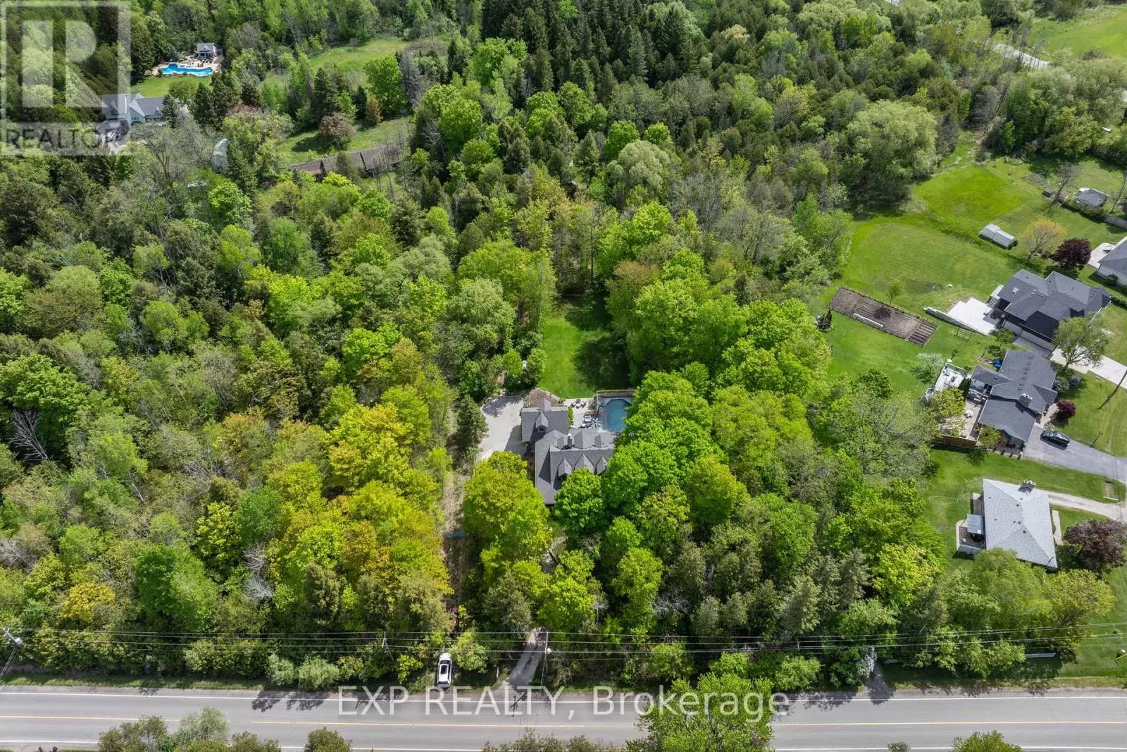Aurora Rd & 7th ConcessionA Step into a world where craftsmanship and nature come together in perfect harmony, where every detail tells a story. Tucked away on nearly 2 acres of enchanted forest, this 4-bedroom, 2-bathroom custom home is more than a place to live its a place to belong. Lovingly handcrafted, the very maple trees that once stood here now shape the wainscoting, trim, and whimsical fairytale doors, each plank milled right on the land. A grand three-sided fireplace casts a warm, flickering glow over the open living space, while the artisan-crafted kitchen invites slow mornings and lively gatherings. The master suite is a true retreat, offering a freestanding soaker tub and a cedar walk-in closet, infused with the grounding scent of the forest. Step outside, and the magic continues. A saltwater pool shimmers in the backyard, inviting you to take a dip beneath the open sky. Beyond the waters edge, a winding path leads to a quiet stream where you can catch crayfish, dip your toes, or simply let the gentle ripple soothe your soul. In the evening, gather around the fire pit in the back forest, sharing stories as fireflies dance in the dusk .Despite its fairytale setting, this home is just 3km from Highway 400, offering seamless access to city conveniences while preserving the peace of country living. With ample parking for guests, this home is ready to host every chapter of your story. Come, step into something extraordinary. (id:27476)