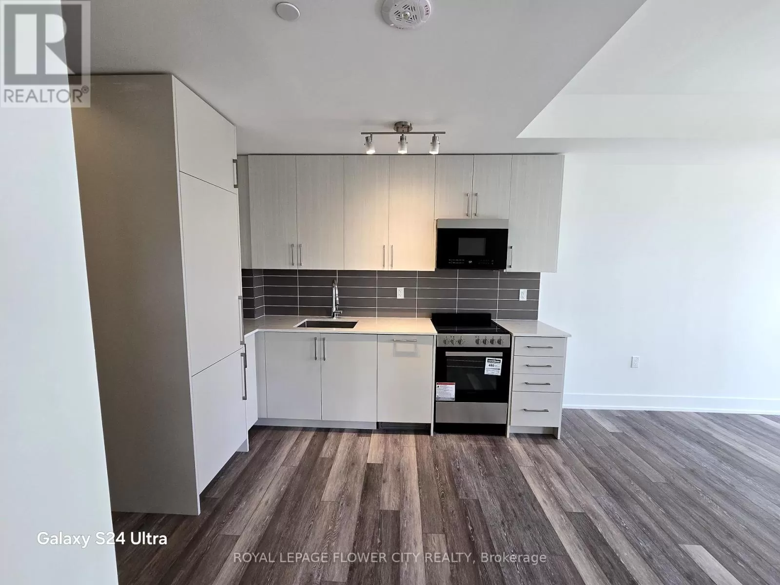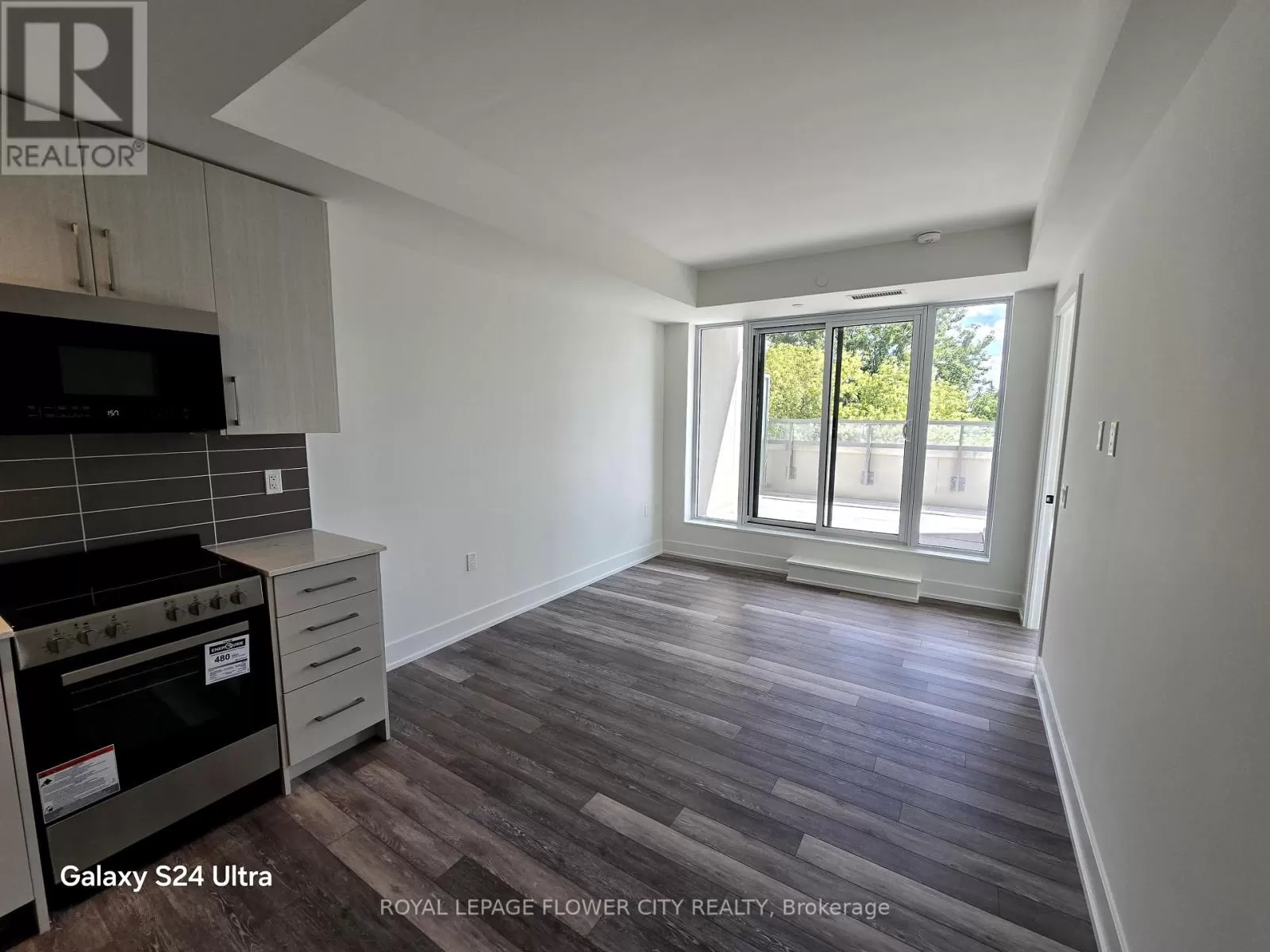 King Rd and Keele st Welcome to Suite 351 at King Terraces a rare offering that blends luxury, light, and lifestyle. This southeast-facing corner suite has over 750sf of interior and 150sf private terrace, perfect for effortless indoor-outdoor living. This 2-bedroom, 2-bathroom suite features a split-bedroom layout for optimal privacy, 9-foot ceilings, and vinyl flooring throughout. Natural light pours in through oversized windows, creating a warm and sophisticated ambiance in every room. The modern chef's kitchen with integrated appliances and sleek quartz countertops. The open-concept living and dining areas seamlessly extend to the terrace. (id:27476)