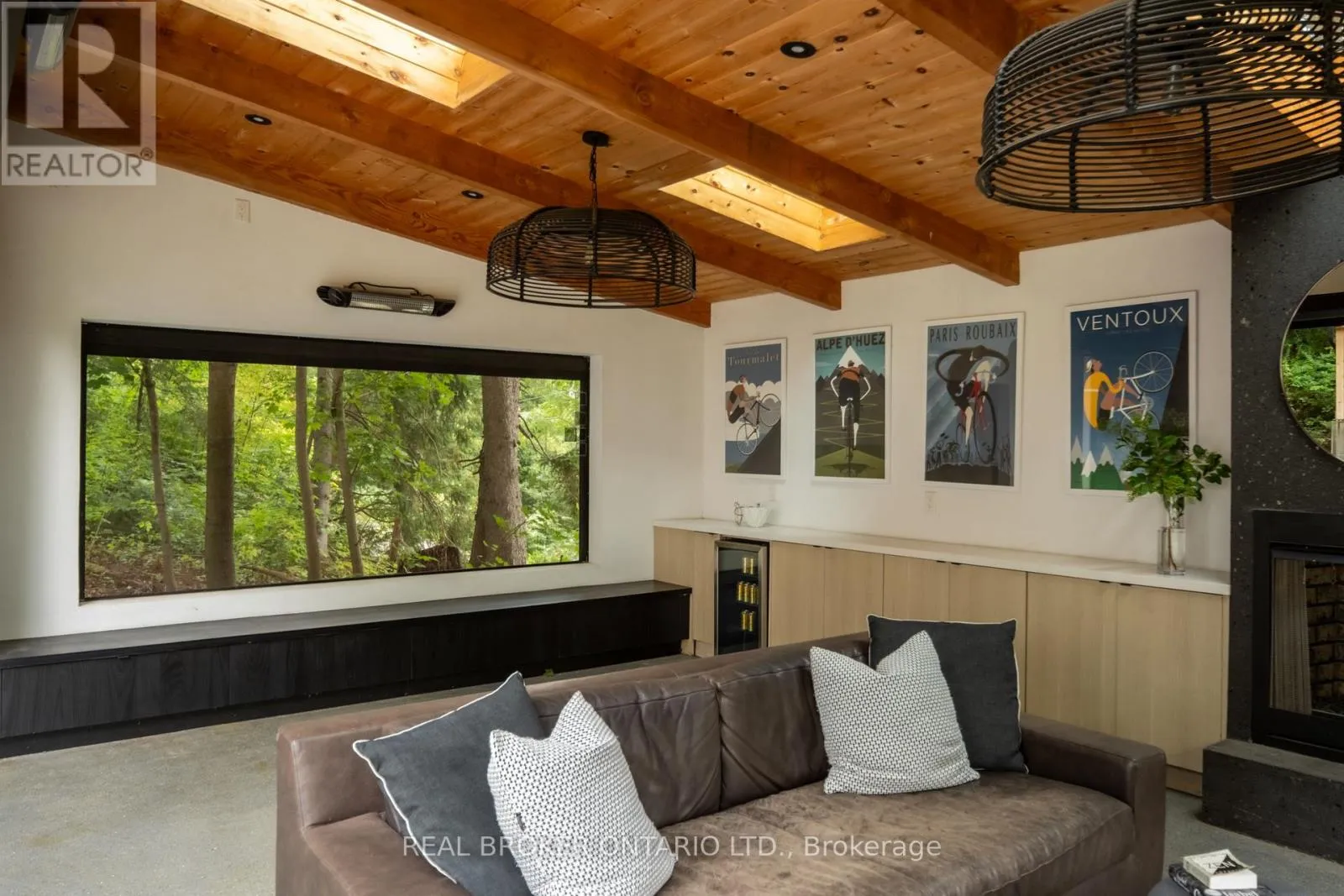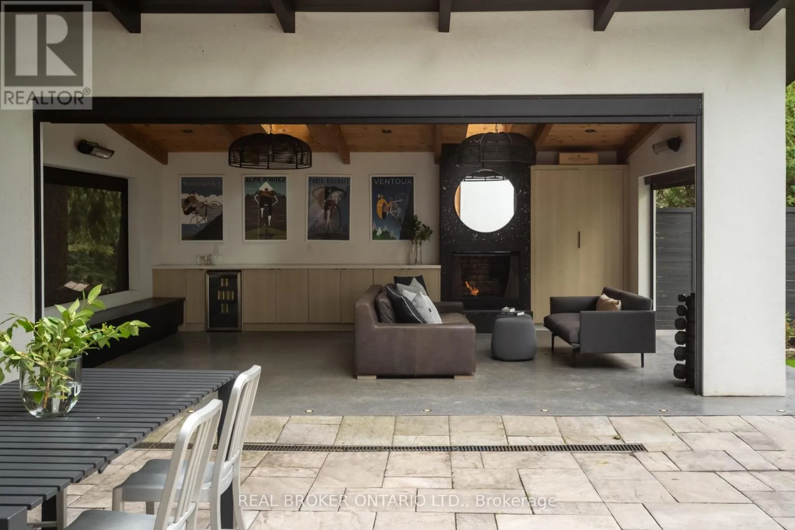 Cross Streets: King and Weston. ** Directions: *. This architectural modern farmhouse estate is a rare offering an exquisite blend of refined luxury and timeless country charm on one acre, surrounded rolling greenery, mature trees, and serene forest views. Perfectly positioned steps from the Oak Ridges Moraine trail system, yet moments from Summerhill Market, shopping, dining, and even UberEats, it offers the tranquility of nature without compromising on convenience.Upon entry, you are welcomed by Moncer European White Oak hardwood floors and bespoke finishes at every turn. The reimagined chefs kitchen is a showpiece in both design and function, featuring top-of-the-line JennAir appliances, sleek custom cabinetry, and a layout crafted for effortless entertaining. The sophisticated dining room flows seamlessly into a sunlit living room, anchored by an elegant fireplace for cozy evenings.The primary suite is a true retreat, with tranquil views, a generous walk-in closet, and a spa-inspired ensuite adorned with heated floors and marble finishes. Two additional well-appointed bedrooms provide ample space for family or guests, all designed with comfort and style in mind.The crown jewel of this residence is the spectacular backyard oasis. At its heart lies a fully outfitted cabana, thoughtfully designed for year-round entertaining with floor-to-ceiling electric screens, a bar fridge, and a gas fireplace. Manicured lawns, a sprawling stone patio, and a built-in BBQ complete the entertainers dream setting.With close proximity to top-rated schools(Country Day School, Villanova), school bus pick-up and easy access to the GO Train or HWY 400 for a quick commute to the city, this estate is the perfect sanctuary for discerning families and city dwellers seeking a luxurious lifestyle surrounded by natures beauty. (id:27476)