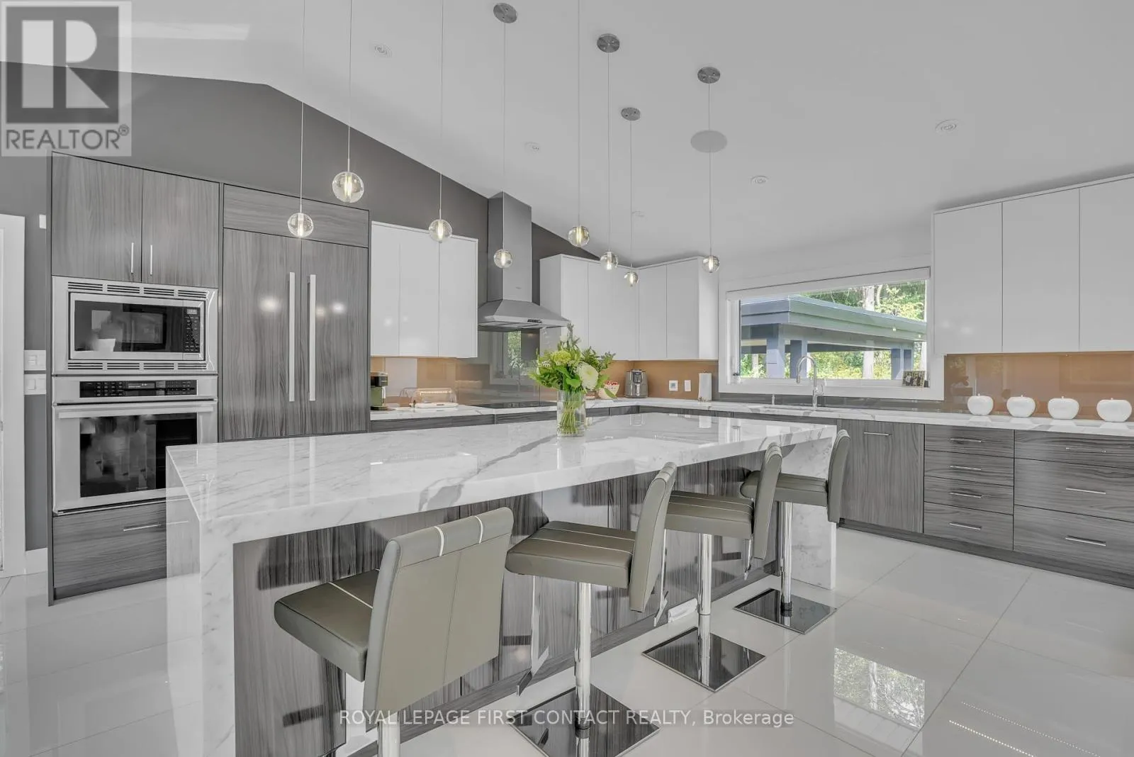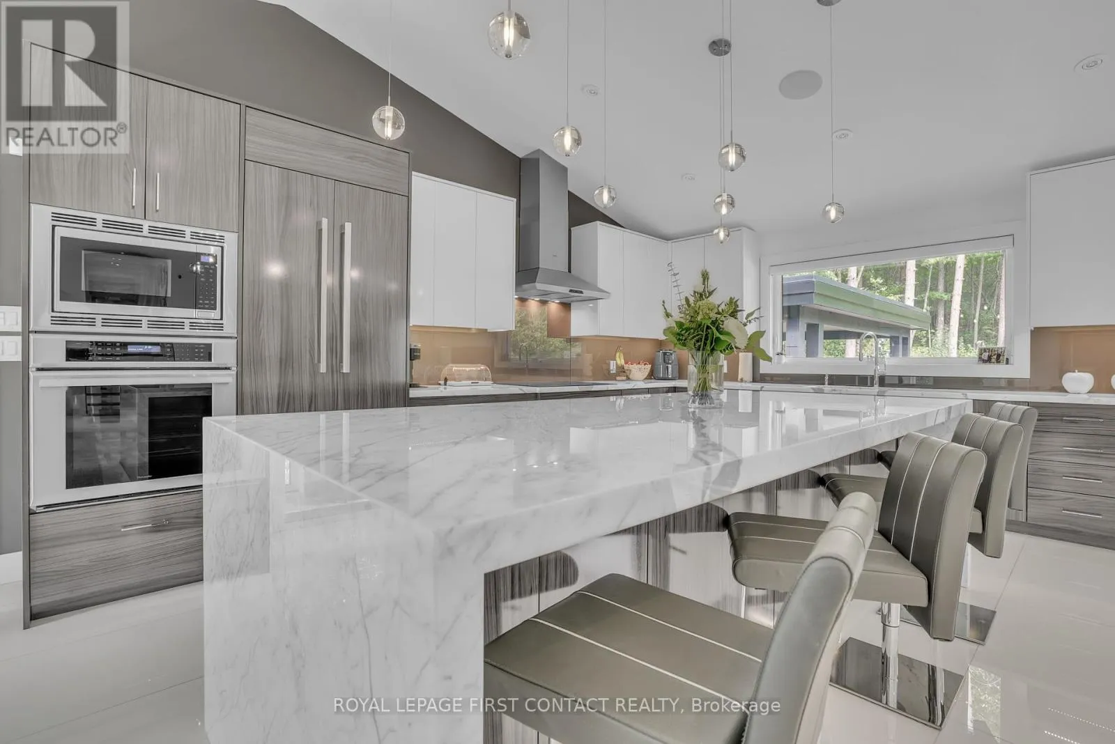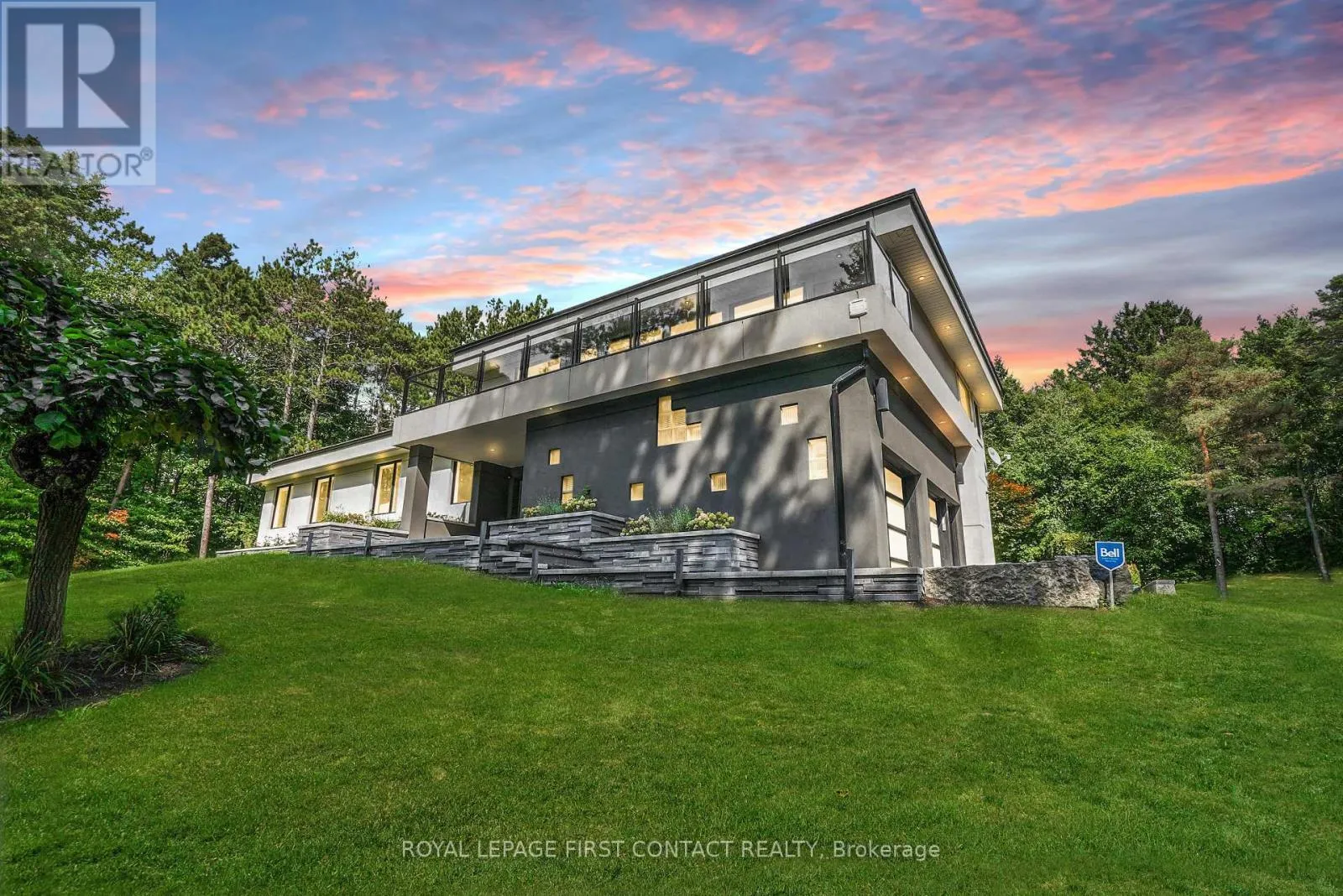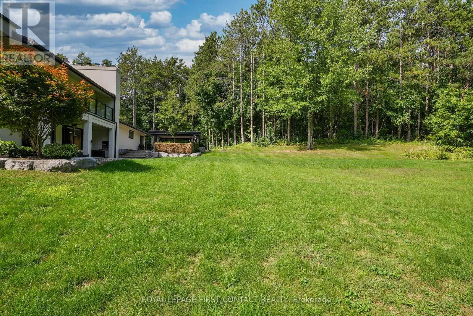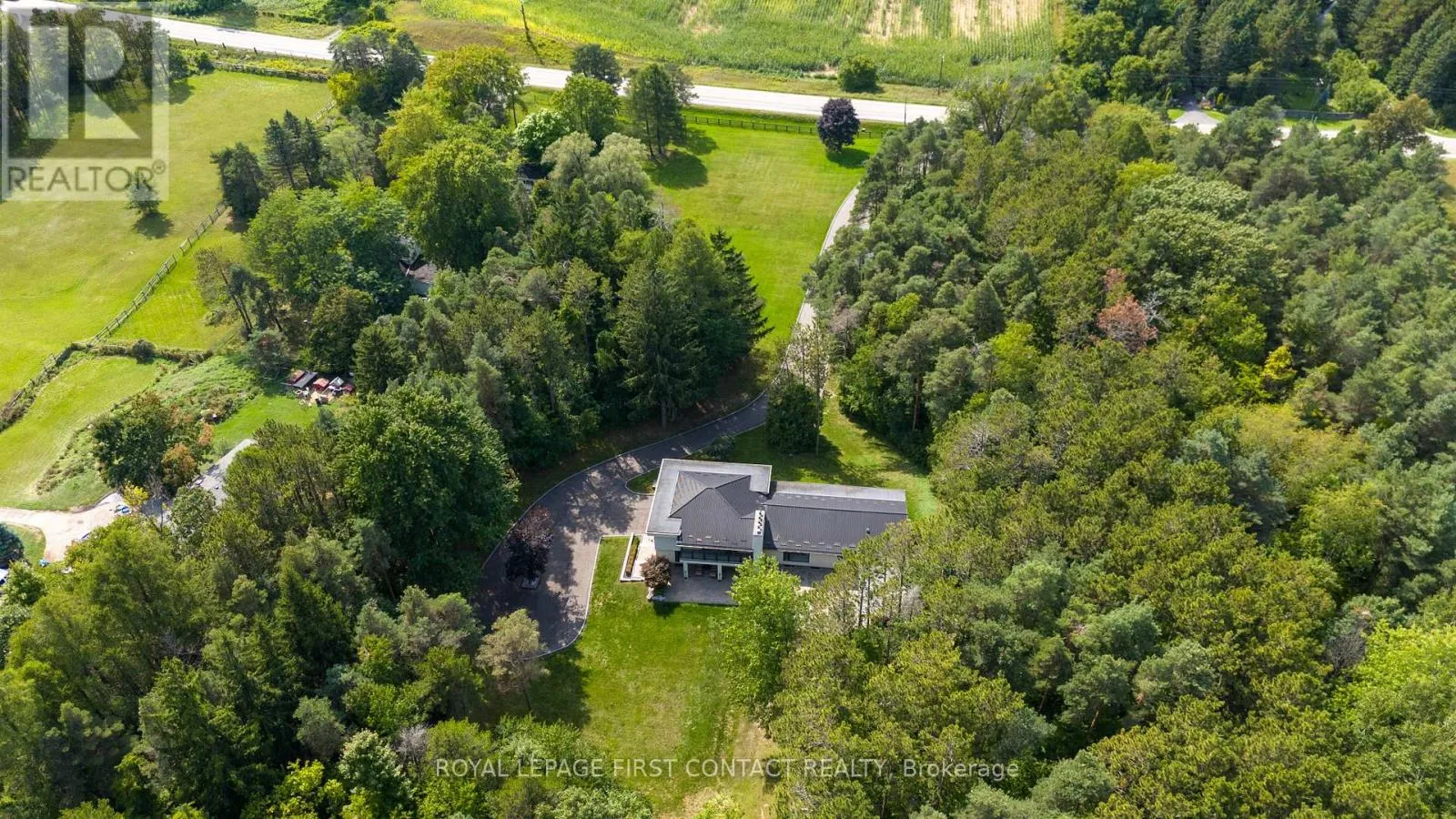 Jane Street South of 17th Side Road on east side A rare jewel in Kings crown, this extraordinary residence combines luxury, privacy, and sophistication in one of Ontarios most prestigious communities. Set on a massive, beautifully landscaped lot (approx. 4.28 acres) and embraced by mature trees, the property offers an unparalleled opportunity to enjoy refined living in a setting celebrated for its rolling hills, equestrian estates, golf courses, and timeless natural beauty. From the moment you arrive, the scale and presence of this estate make a lasting impression. The expansive driveway accommodates 25 plus vehicles, perfect for grand entertaining, while an additional detached double garage adds both practicality and convenience. Striking modern architecture is elevated by stucco, sleek lines, and lush landscaping, creating a true statement of elegance. Inside, the home reveals high-end craftsmanship and superior finishes throughout. With 3+1 bedrooms and expansive living spaces, every detail has been thoughtfully designed for comfort and style. Floor-to-ceiling windows frame serene views of the private grounds, while premium flooring, cabinetry, and fixtures enhance the luxurious feel. The principal rooms flow effortlessly, striking the perfect balance between open-concept living and warm, intimate spaces. Multiple walkouts extend the living experience outdoors, connecting to patios and decks ideal for relaxation or gatherings against the backdrop of a private, treed landscape. Living in King is more than owning a home, it is embracing a lifestyle. Known for its charming villages, top-tier schools, boutique shops, and gourmet dining, King offers the perfect harmony of country tranquility and urban convenience. With easy access to major highways and Toronto, you can enjoy the peace of countryside living without sacrificing proximity to the city. This is not just a property, it is a private estate, a true retreat, and a rare opportunity to own in one of Kings most coveted addresses. (id:27476)