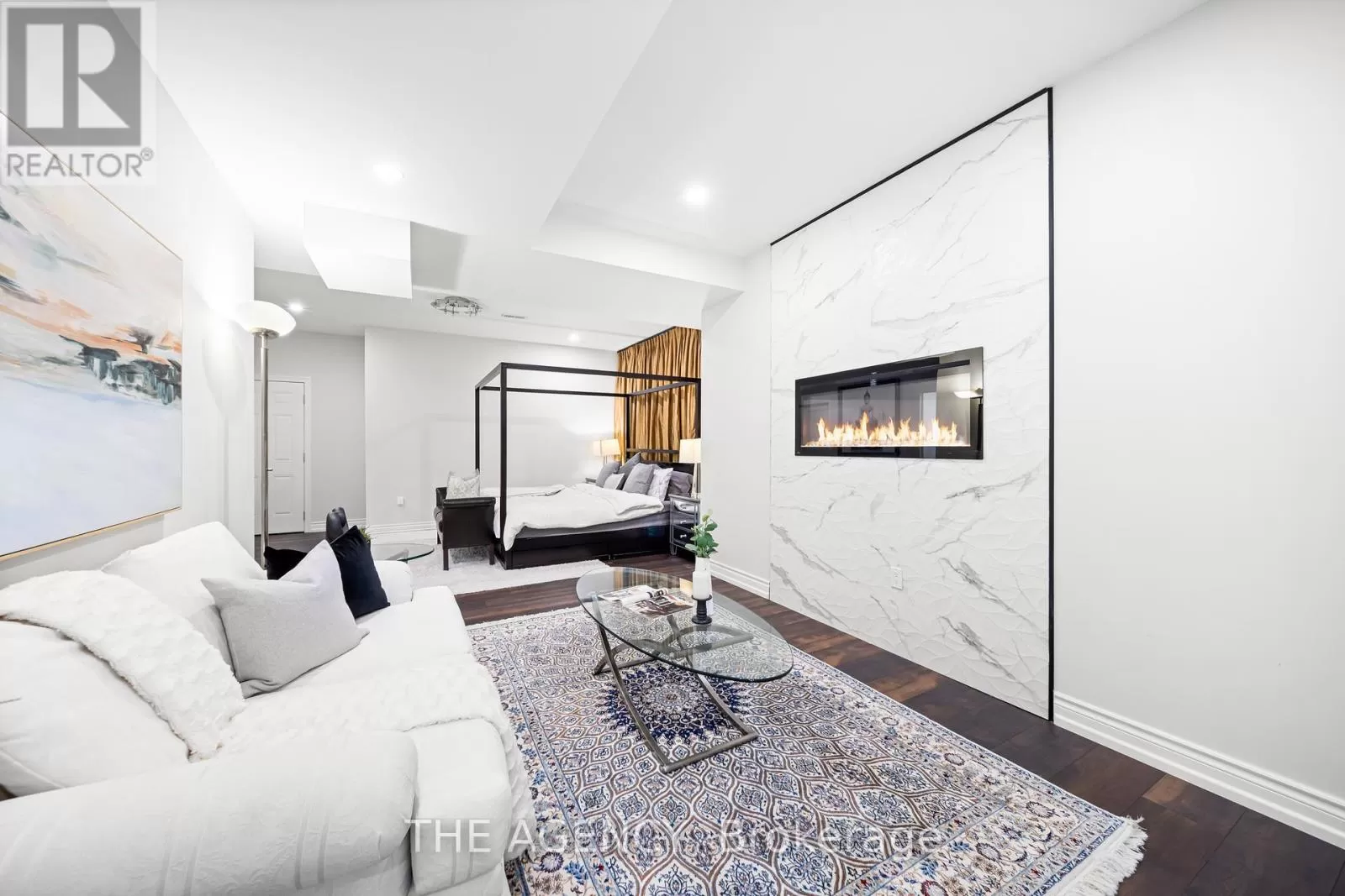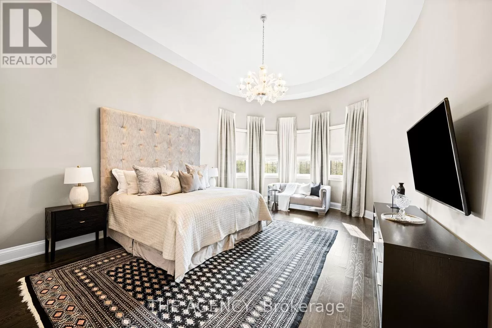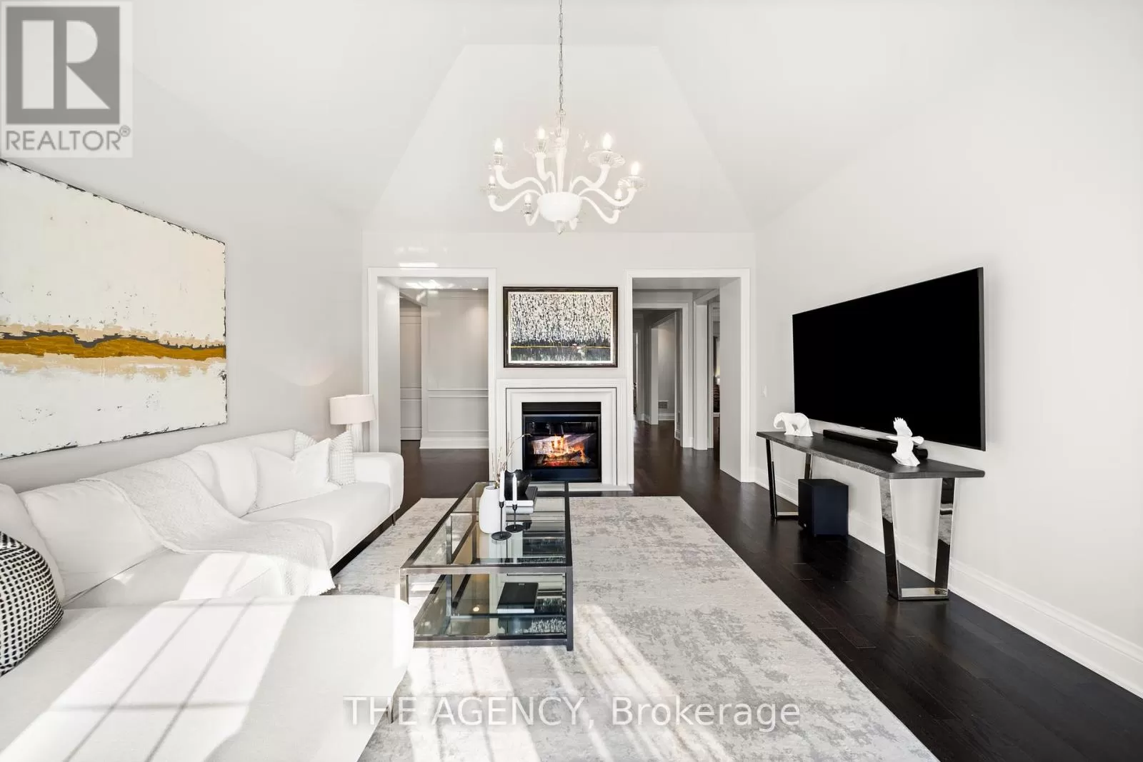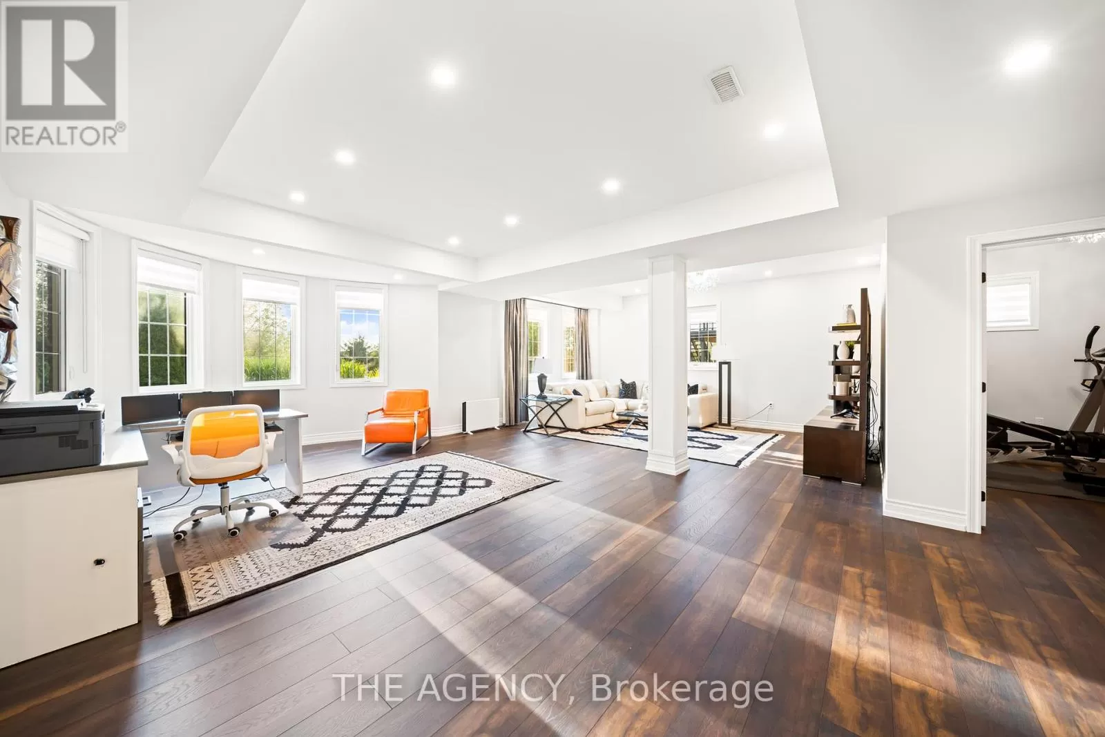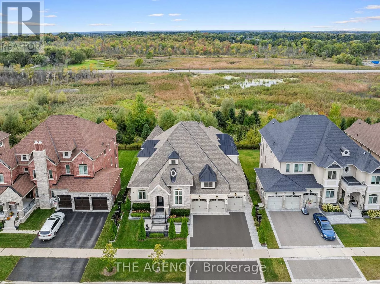King Vaughan Rd./Keele St. Located in the heart of King City, this beautiful bungaloft offers more than 6,900 square feet of finished living space in a community prized for its parks, trails, excellent schools, and quick access to the King City GO station. The home is introduced by a stone-and-stucco façade, a three-car garage, and landscaped grounds with a terrace and rear patio overlooking the ravine. Inside, soaring ceilings, hardwood floors, and detailed millwork set an elegant tone. The front foyer rises two storeys, leading to a series of principal rooms defined by coffered ceilings: a paneled office, a formal living and dining room, and a family room anchored by a gas fireplace. At the centre of the main level, the kitchen is fitted with dark-stained cabinetry, quartz counters, and a full suite of Wolf and Sub-Zero appliances. The adjoining breakfast area opens directly to the terrace. A main-floor primary suite with a spa-like ensuite and walk-in closet provides a private retreat, while a second bedroom with its own ensuite adds flexibility for family or guests. An elevator connects all three levels. The upper floor includes two additional bedrooms, a full bath, and a den well suited for children, extended family, or a separate study. The fully finished lower level is above grade, with oversized windows and French doors leading to the rear patio. This home includes total of 4 + 2 bed and 4 + 2 bath. Designed as a complete secondary living area, it includes a full kitchen with quartz counters and Samsung appliances, a dining area, a large recreation room with fireplaces, two bedrooms, and additional baths. This thoughtful layout makes the property especially accommodating for multi-generational living. Every detail of this residence reflects quality and enduring design, offering a rare opportunity in one of King City's most desirable settings. (id:27476)