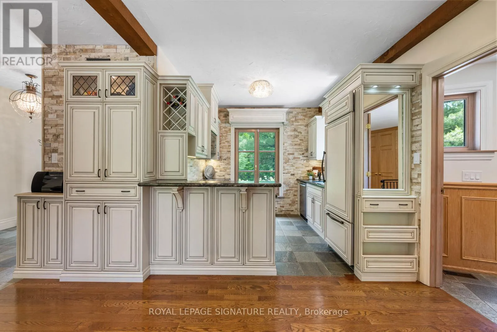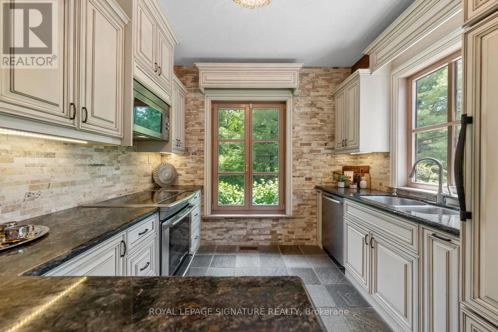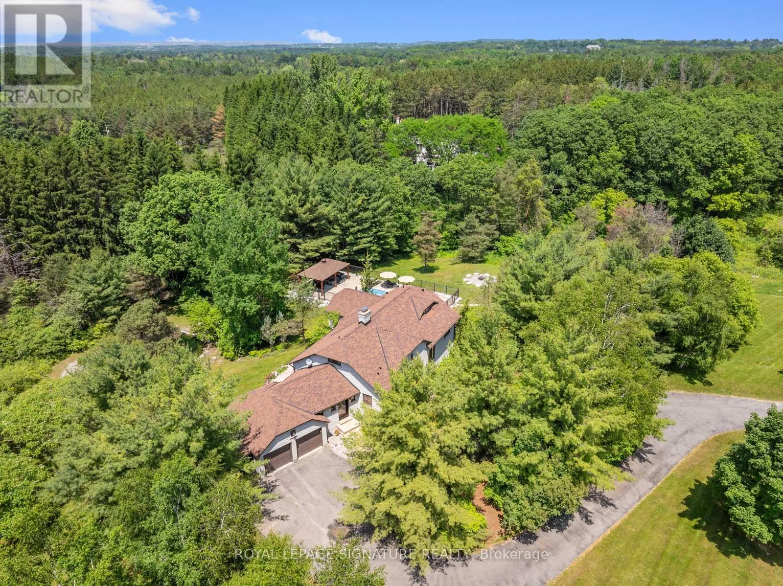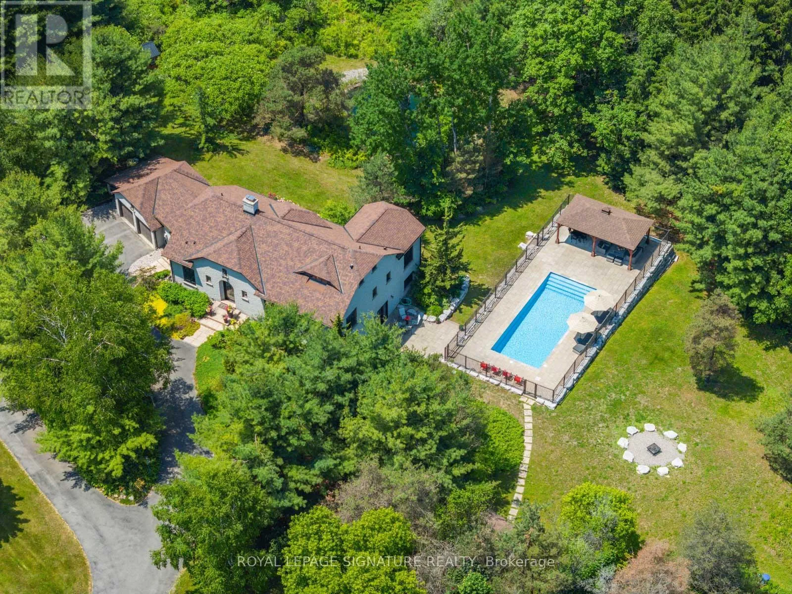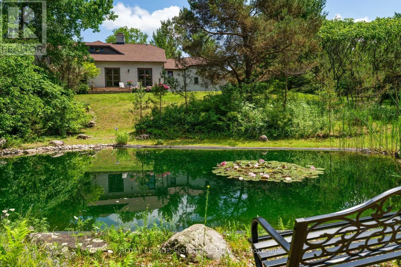 Jane & 16th Sideroad Welcome to 30 Kingswood Drive A European-Inspired Bungalow on a Lush 2-Acre Estate This stunning executive home on a beautifully landscaped 2-acre lot offers the perfect blend of luxury, space, and functionality.Nestled behind a long, circular driveway, this European-style bungalow combines timeless elegance with modern comfort.Featuring over 5000 sq ft of Finished Living Space with 3+1 bedrooms, a bright above-ground lower level, two full kitchens, and a luxurious sauna with steam shower. The home's curb appeal is undeniable, with manicured gardens and a custom arched front door that lends the façade a touch of Old World sophistication. A double-car garage with an attached carport or boat port ensures both functionality and flair.Inside, the home exudes warmth and character, featuring hardwood floors, slate tile, pot lighting, and design elements like exposed wood beams and brick accent walls. The open-concept layout is bathed in natural light thanks to oversized windows, allframing serene views of the private grounds.Outdoors, this home becomes a true retreat. A sparkling, gated inground pool with a covered sitting area invites relaxation and recreation. Meanwhile, a tranquil pond and a stone fire pit with natural seating complete the picture of an idyllic countryside escape.Whether you're entertaining guests or enjoying peaceful moments surrounded by nature, 30 Kingswood Drive is a rare find a private oasis that offers the best of refined living just minutes from town. (id:27476)