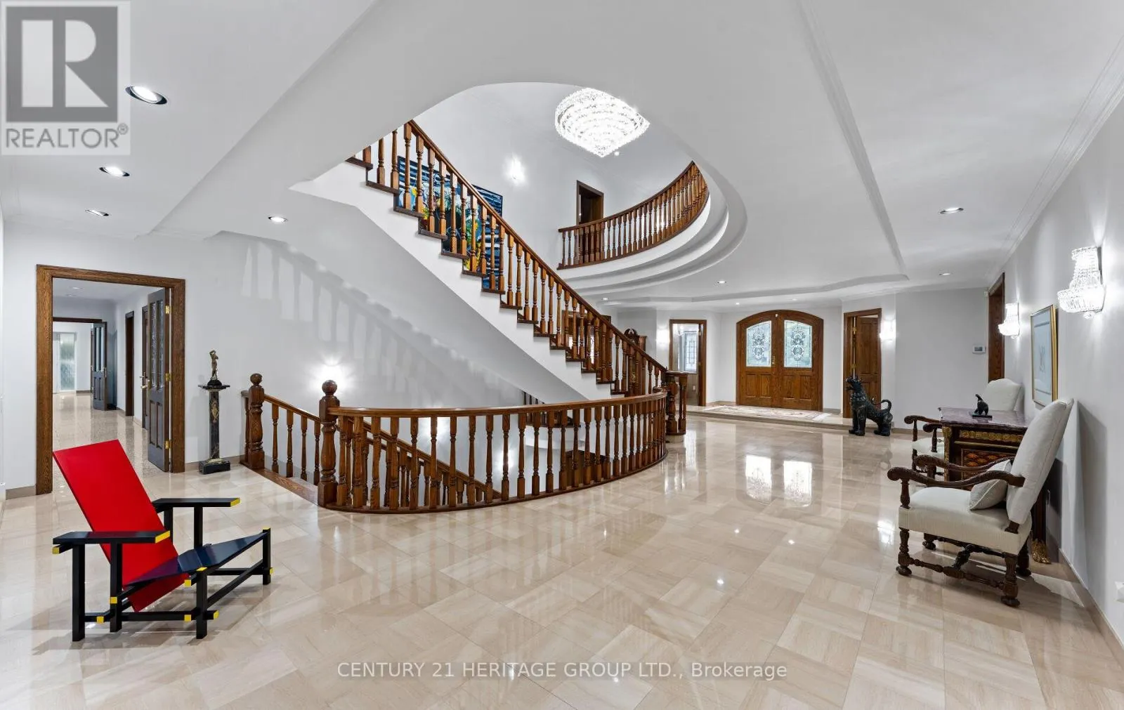 Cross Streets: King Road/ Burns Blvd. ** Directions: King Rd/York to Burns Blvd south to Collard Drive. A Rare Architectural Gem! Step into a world where artistry, craftsmanship, and architectural vision meet. This one-of-a-kind estate spans over 22,000 square feet of living space and is built to stand the test of time. Constructed with solid concrete and fronted by a pure limestone façade, the residence offers unmatched enduring strength and permanence, reminiscent of a private castle.From the moment you arrive, the homes presence is undeniable. Expansive manicured gardens, a professional sized tennis court with LED lighting, and a four-car garage set the tone for an estate designed with both elegance and functionality in mind. Inside, the amenities continue with a large indoor bromine pool and hot tub with a walk-out to the terrace, while the lower level offers a kitchen, bar area, and recreation room with its own walk-out to the grounds. Spaces flow effortlessly. Inside, the home reveals layer upon layer of unique detail and artistry:A striking floating staircase anchors the main foyer with architectural flair Handcrafted stained glass windows transform light through gentle refraction, filling each room with soft elegant hues. Solid wood doors, intricate trim work, and custom millwork speak to the caliber of craftsmanship rarely seen today. A curated art collection and Arts & Crafts-inspired elements add depth, character, and artistic soul throughout. The estate offers an exceptionally flexible layout designed to adapt to many lifestyles with 5 bedrooms in total. Four bedrooms each offer their own luxurious 5-piece ensuite, complete with elegant vanities, generous built-in cabinetry, and/or spacious walk-in closets. The Primary Suite is a private retreat, featuring a cozy sitting area with a private wet bar, walk-out access to a balcony, a lavish 7-piece bathroom, a custom built-in armoire, and an expansive walk-in closet. All walk-in closets throughout are equipped with closet organizers. (id:27476)