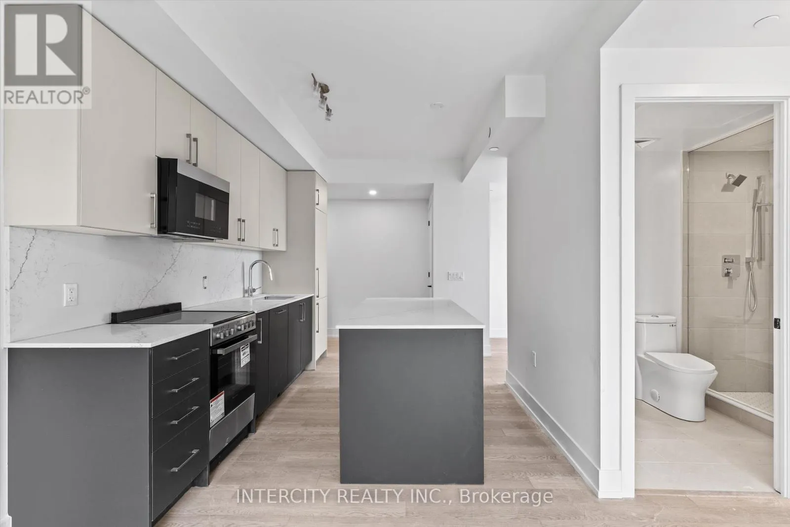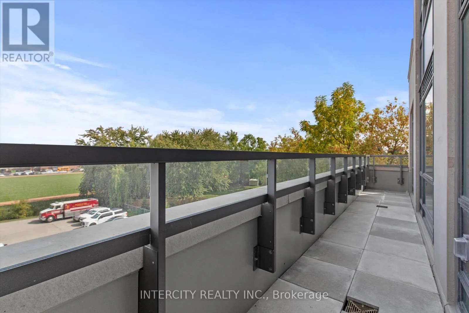 Cross Streets: King Rd & Keele St. ** Directions: East of Keele St, On King Rd. Welcome to Suite 345, a one-of-a-kind corner residence offering modern comfort and the rare luxury of two private outdoor spaces. This thoughtfully designed 1 bedroom + den, 1 bathroom suite is filled with natural light, making every space feel bright and inviting.The primary bedroom, is bathed in sunlight throughout the day, creating a warm and relaxing retreat. The versatile den opens directly onto an east-facing terrace, ideal for a morning coffee or a private work-from-home nook. The living area extends to a covered balcony, perfect for entertaining or unwinding in any season.Inside, the open-concept kitchen features quartz countertops, integrated appliances, and sleek Kitchen Island and finishes, seamlessly flowing into the airy living space.As a resident of King Terraces, you'll enjoy resort-inspired amenities, including an pool, rooftop terrace, fitness centre, stylish party lounge, and 24-hour concierge.With top-rated schools, parks, shopping, and dining just minutes away, everything you need is right at your doorstep. King Terraces is a welcoming community, ideal for families, young professionals, or anyone seeking a peaceful yet vibrant atmosphere. This is where you can create memories, build your future, and truly live your best life.Suite 345 is a rare gem where natural light, modern design, and dual outdoor living come together. (id:27476)