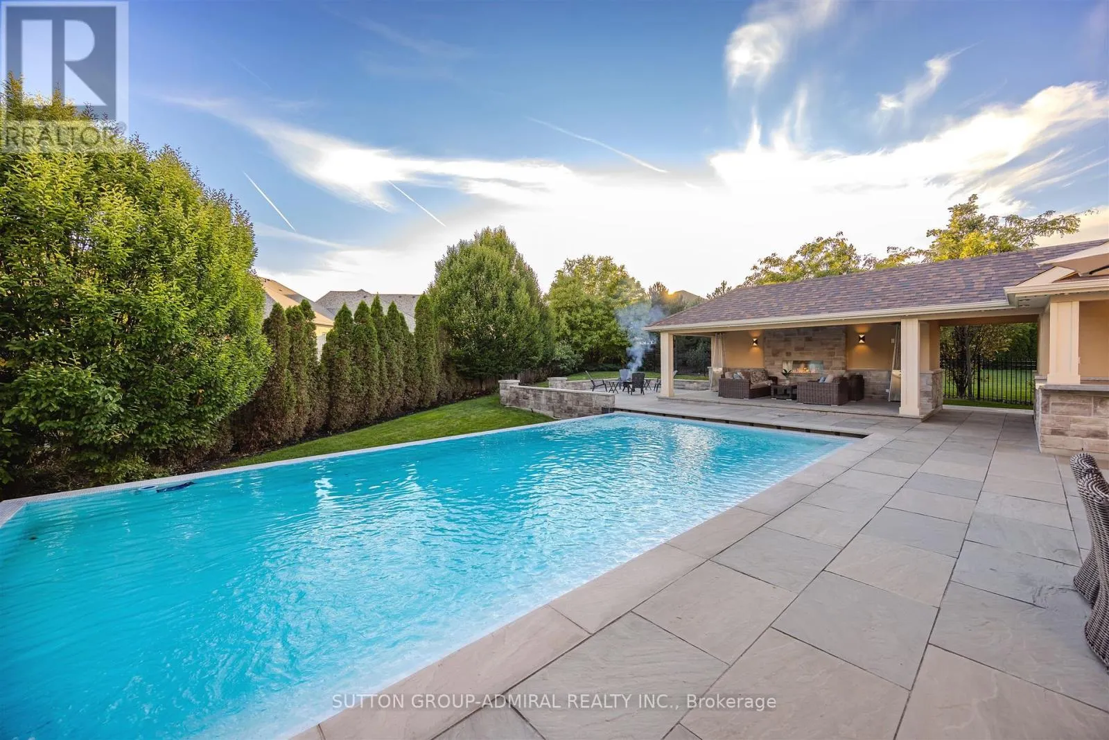 King Rd/Hwy 27 Luxury Resort-Style Living At Home! Welcome to your private oasis- where every day feels like vacation! This stunning property is designed for ultimate entertaining and relaxation, featuring a 20' x 36' inground concrete pool with a two-sided spillover infinity edge, glass mosaic waterline tiles and a custom full-length (36') solid concrete entry steps. Enjoy resort-style amenities in the approx. 650 sq.ft. custom cabana, complete with a stone gas fireplace, cedar ceilings, 2-piece outdoor bathroom, rough-in for outdoor shower, cedar change room, and an outdoor kitchen equipped with a large concrete counter-top, bar fridge, Napoleon grill & burner, and built-in sink. The professionally landscaped yard includes approx. 1500 sq.ft of natural stone patio and pool decking, architectural stone walls, raised planter beds, stone walkways, and landscape lighting throughout. Mature trees ensure privacy, while a large irrigated lawn area offers the perfect play space for kids. Step inside to a beautifully designed home featuring a main floor office w/ cathedral ceilings& a large window overlooking the front yard, a formal living room w/ gas fireplace and an extended laundry/mudroom with access door into tandem garage, plus a variance for an added tandem garage that can be built (as per seller's).The Gourmet kitchen is equipped with high-end Viking Appliances and the family room showcases cathedral ceilings and a large upgraded window overlooking the pool, creating a stunning focal point. The basement has been professionally finished and offers a spacious recreational/games room, a3-piece ensuite with steam shower & infrared sauna, a R/I for bar and two additional rooms that can be used as a bedroom and office or as additional storage areas. Perfectly situated on a premium large lot in a quiet exclusive court, this property has great curb appeal illuminated by exterior pot lighting, it combines luxury, privacy and convenience-a true entertainer's paradise and family retreat! (id:27476)