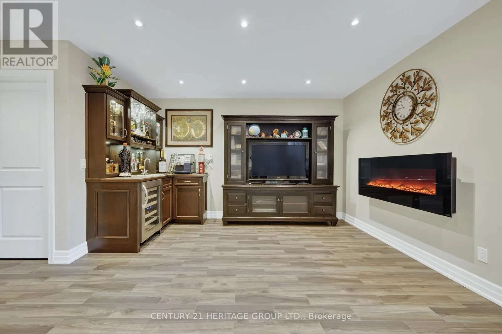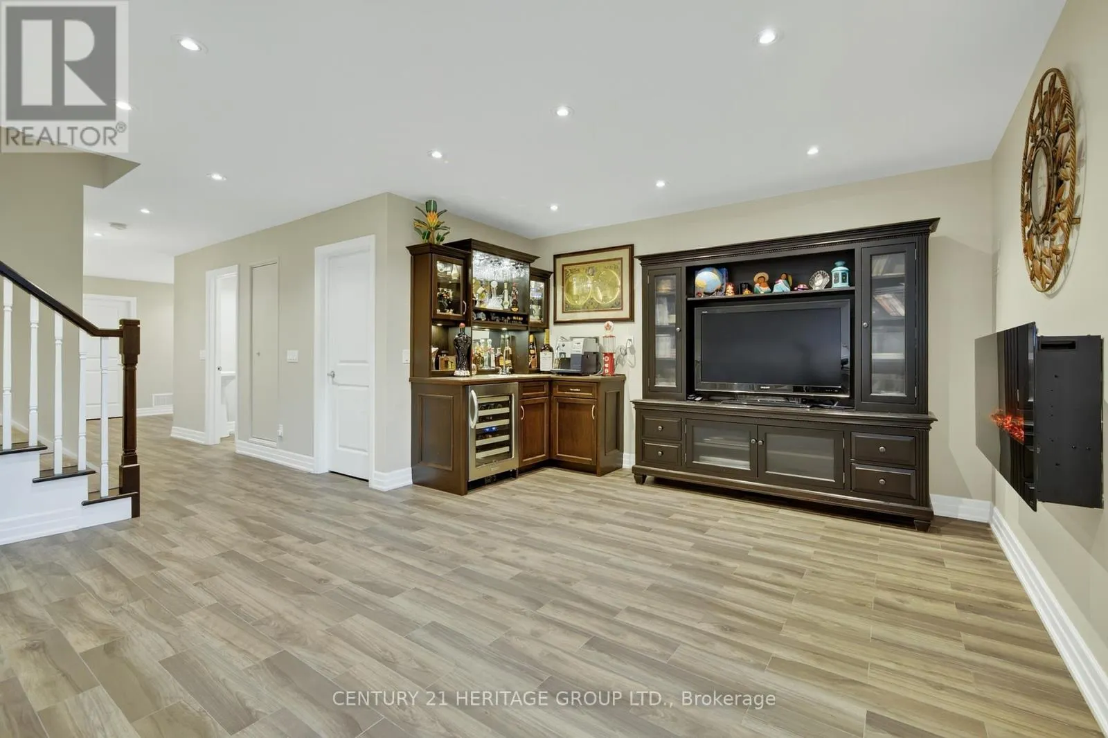 King Rd and Bruns Blvd Stunning 3-bedroom, 4-bath home linked only at the garage, offering privacy and curb appeal in one of King City's most sought-after communities. The main floor features 9 foot ceiling, hardwood throughout and a modern kitchen with stainless steel appliances, gas stove, granite countertops, and a large center island. Upstairs, the primary suite includes a tray ceiling, walk-in closet, and a 6-piece ensuite. The second bedroom features custom built-ins and a window bench, while the third bedroom includes a Murphy bed and desk-ideal for guests or a home office. Convenient second- floor laundry with extra cabinetry. The professionally finished walkout basement offers 8' ceilings, Ceramic wood-look tile flooring, a bright rec room with an electric fireplace, built-in bar with bar fridge, large cantina, soundproof ceilings, and plenty of storage. Enjoy a private backyard oasis with a composite deck, interlock patio, gazebo, and shed. Additional highlights include a heated garage with backyard access, 200-amp electrical service, backflow valve, Hunter Douglas blinds, central vac, and smart home features. This exceptional home combines quality finishes, functional design, and modern upgrades-an absolute must-see! (id:27476)