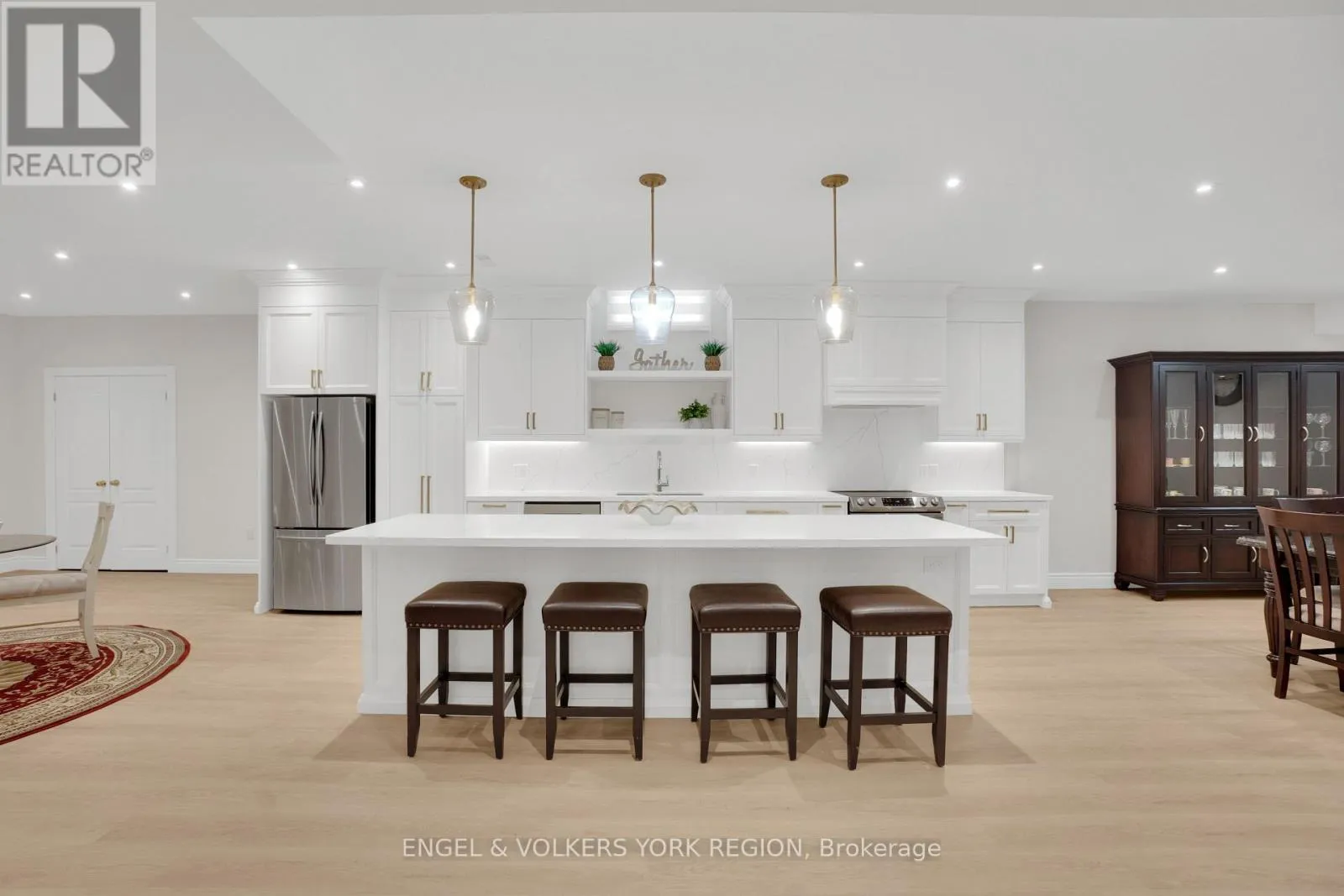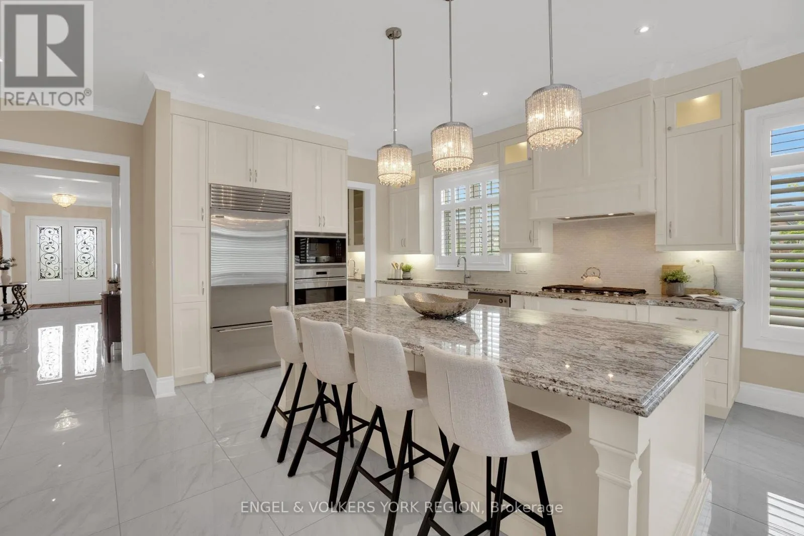 King Rd & Jane St Elegant Bungalow in King City. Step into timeless elegance with this exceptional 3+2 bedroom bungalow, offering over 6,000 sq. ft. of meticulously finished living space in one of King City's most prestigious and sought-after enclaves. Featuring porcelain tiles and hardwood flooring throughout, complemented by detailed crown moulding in every room. The heart of the home is a custom-designed kitchen. It showcases an oversized kitchen island, a Sub-Zero built-in fridge, Sub-Zero built-in wall oven, built-in microwave, built-in dishwasher, a Wolf gas range top, and a convenient mini fridge. The kitchen opens to a grand, oversized family room ideal for entertaining or cozy evenings at home. The spacious primary suite offers a private oasis with a luxurious 6-piece ensuite and a walk-in closet and Two additional main-floor bedrooms and a den. The fully finished lower level doubles your living space, complete with two full bedrooms, a full kitchen, expansive living and dining areas, and ample storage perfect for multigenerational living or in law suite. Professionally landscaped front and back gardens, offering privacy and a picturesque setting for outdoor living.This is more than just a home its a rare opportunity to experience refined, turn-key living in the heart of King City's most exclusive neighbourhood. A must-see for those seeking space, style, and sophistication. (id:27476)