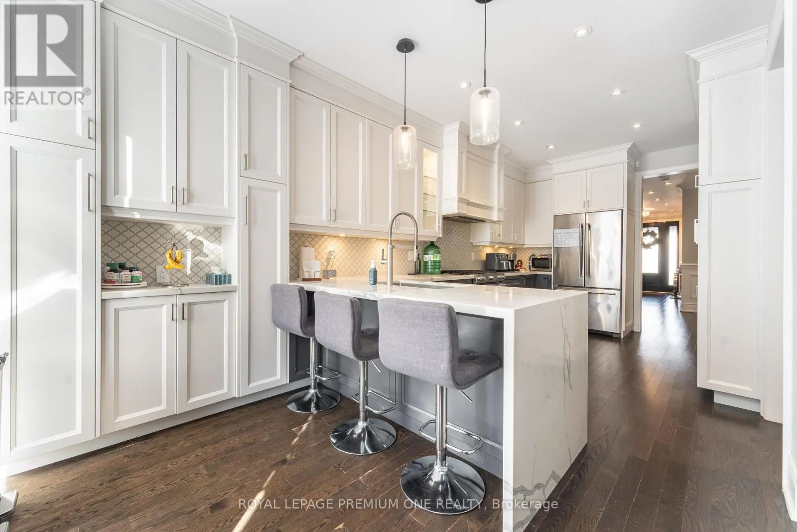 King Road/Hwy 27 Located in Nobleton's prestigious "King Country Estates," this absolutely stunning link home-attached only at the garage-offers luxury living on a premium pie-shaped lot that widens to 44' at the rear. Beautifully upgraded throughout, it features hardwood flooring, a custom two-tone kitchen with quartz counters and built-in stainless-steel appliances, and an impressive custom front entry door. The professionally finished basement includes a wet bar, fireplace, and ample space for entertaining. All bedrooms offer private ensuite baths, complemented by elegant wall paneling and detailed mouldings. Additional highlights include three fireplaces, a spacious two-car garage, and flagstone accents at the entrance. A rare blend of style, function, and craftsmanship in one of Nobleton's most desirable communities. (id:27476)