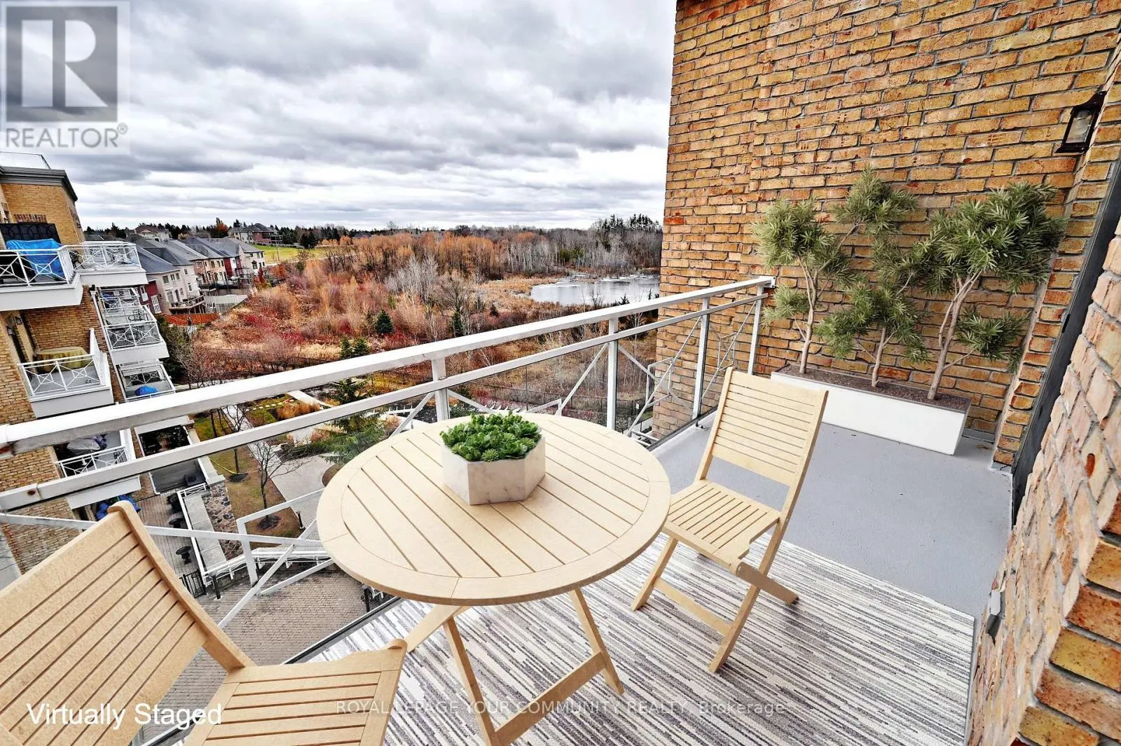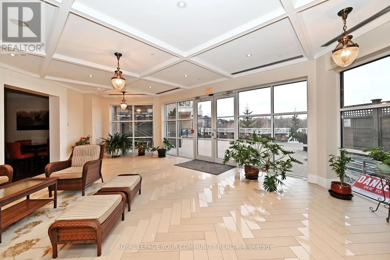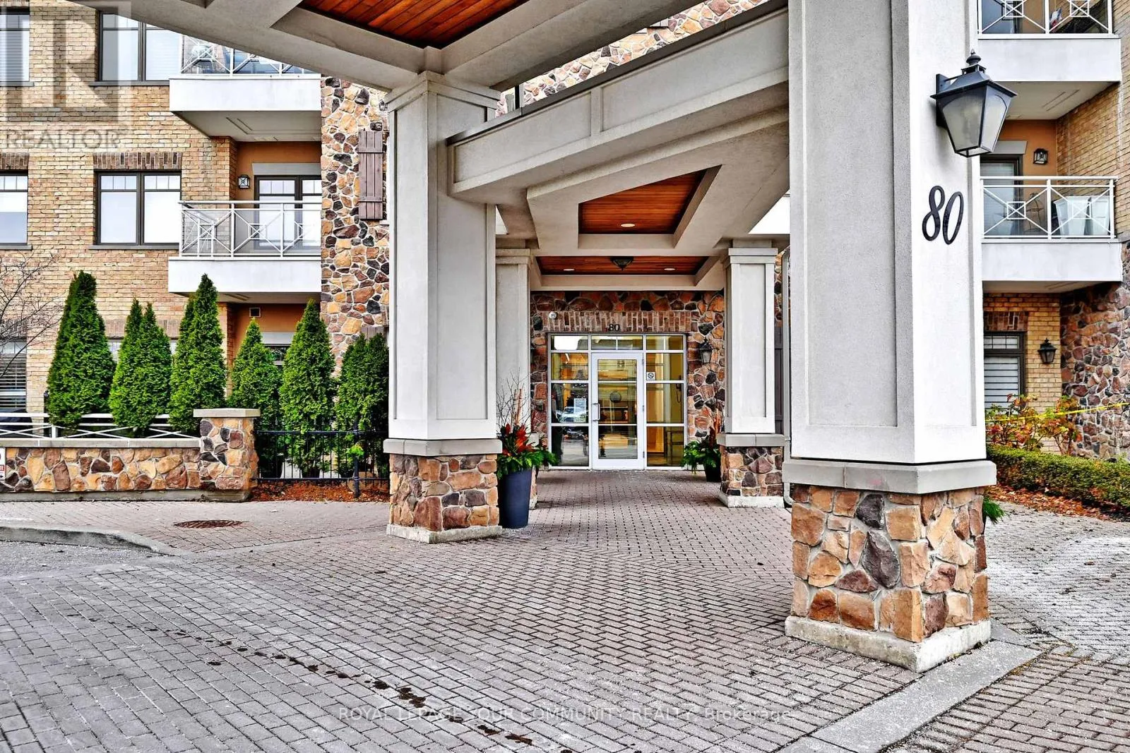 Cross Streets: King Rd / Keele St. ** Directions: King Rd to Burns Blvd. Welcome to the prestigious Residence of Springhill at 80 Burns Boulevard in the heart of King City. This 1000 plus square foot unit has been beautifully maintained featuring two bedrooms, two bathrooms and offers a bright south-facing exposure and directly backs onto serene conservation land, providing peaceful, natural views.Featuring high ceilings and an open-concept layout, the spacious kitchen flows seamlessly into the living and dining areas-perfect for everyday living or entertaining. The second bedroom is currently used as a den / home office and can easily be converted back to a private bedroom with the installation of a door. Located in one of King City's most sought-after buildings, this suite combines luxury, convenience, and a tranquil natural setting-an exceptional opportunity in a truly desirable community.The unit includes one parking space along with two lockers, a rare and valuable feature. One locker is a large enclosed storage room located directly in front of the parking spot, and the second is a cage locker, offering ample storage options. Residences of Springhill has a very active social community, including daily espresso gatherings, celebrations of birthdays and special holiday events amongst others. Property is unfurnished, photos have been virtually staged. (id:27476)