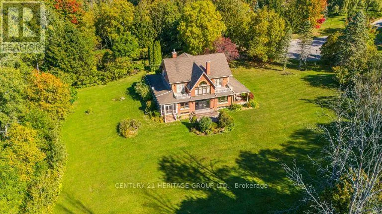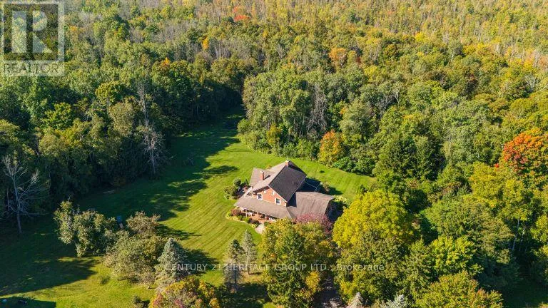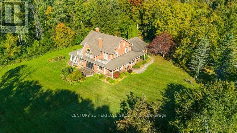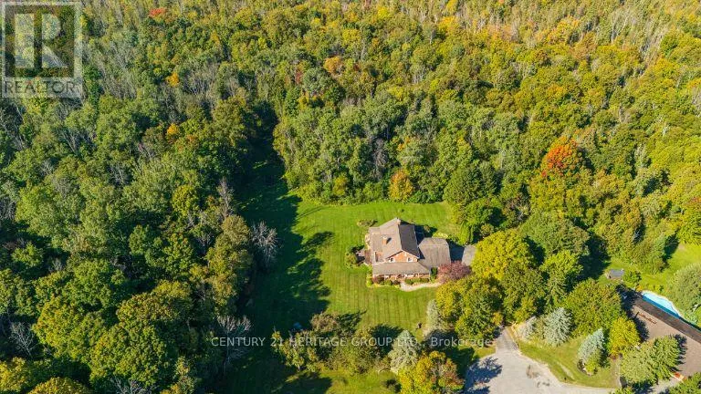 Weston Rd and Brule Trail Exquisite 3.6-acre estate in prestigious Carrying Place Estates, privately tucked at the end of a quiet court. Surrounded by breathtaking four-season forest with a perfect blend of flat and rolling terrain. Showcasing French-inspired architecture, this residence offers multiple wraparound verandas and timeless elegance throughout. The modern designer kitchen features quartz countertops, a breakfast island, and refined finishes. A double-sided fireplace enhances both warmth and sophistication. Step onto the grand veranda spanning the back of the home perfect for morning coffee or evening entertaining. The primary suite is a private retreat with a walk-in closet, spa-inspired ensuite, and balcony with serene forest views. Two additional bedrooms provide comfort and style. The finished lower level boasts custom built-ins, a fireplace, sauna, and a sleek three-piece bath. A rare opportunity to own an exclusive residence offering unmatched privacy, elegance, and natural beauty in one of the areas most coveted communities. Mins to Highway 400, Hwy 9,Go Transit, Kings Finest Schools CDS, Villa Nova, Amenities Newmarket and Schomberg. (id:27476)
