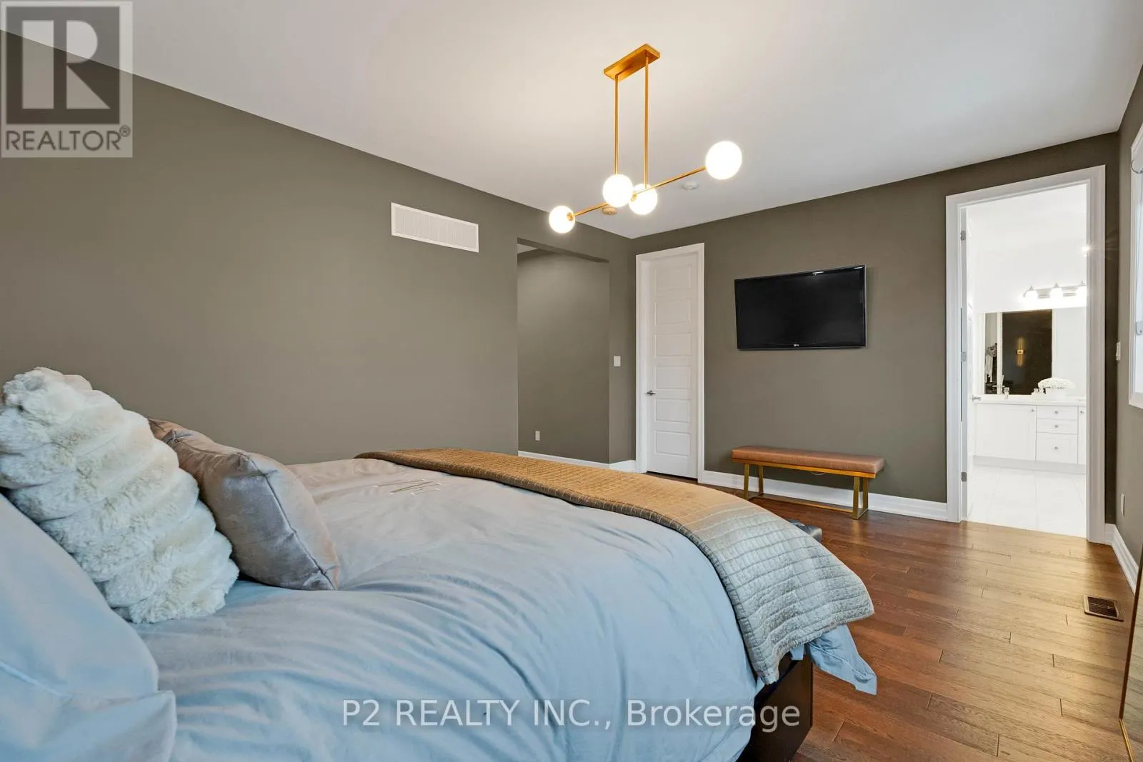 Cross Streets: Keele Street and King Road. ** Directions: North of King Road, East of Keele Street. Stunning stone & brick home in the heart of King City offering over 4,000 sq ft of finished luxury living space. Over $250,000 in upgrades Featuring 5 bedrooms, 6 bathrooms, 10 ft ceilings on the main, 9 ft on the second and basement, 8 ft interior doors, 24 x 24 porcelain tiles on main, 5" wire-brushed hardwood flooring on main and second, crown moulding, wainscoting, and designer lighting throughout. Modern custom kitchen with extended uppers, farmers sink, and premium Thermador appliances. Spacious living area with floor-to-ceiling marble gas fireplace. Main floor office with double french glass doors. All bedrooms include their own upgraded bathrooms with quartz counters, 12x24 tiles, and frameless glass doors. Primary suite features a freestanding tub, double vanity, and frameless glass shower. Professionally landscaped front & back yard with gas BBQ hookup, outdoor landscape lighting, and 2 EV plugs in garage. Finished basement includes a fitness room, large recreation area, Great room with electric fireplace, storage rooms, cantina, and 3-pc bath. Additional features include custom closet organizers, upgraded window coverings, second-floor laundry, solid 3-lock fiberglass main door, and 200-amp electrical panel. Premium lot with unobstructed east views-luxury living in a prime King City location. (id:27476)