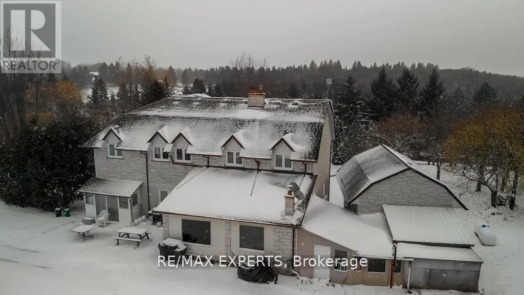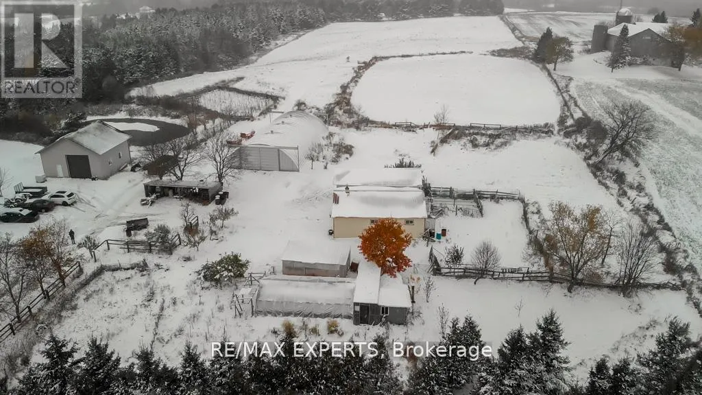 Between Hwy 27 and Caledon King TLine Set along sought-after 17th Sideroad in King Township, this exceptional 10-acre property offers the rare combination of peaceful country living and strong long-term upside. Surrounded by rolling countryside and mature trees, the setting provides privacy, scale, and flexibility in one of Schomberg's most desirable rural pockets.The 3,000+ sq. ft. home features two separate living areas, including a full three-bedroom upper-level apartment and three additional bedrooms on the main floor. The layout lends itself to multi-generational living, rental income, or future renovation and customization. A finished basement adds additional living space and storage. Out buildings include a barn, quonset structure, greenhouse, and multiple sheds - well suited for hobby farming, equestrian use, workshop space, or versatile storage.The upper-level apartment is currently tenanted, with flexibility on possession.Solid structure, prime acreage, and endless potential - enjoy as-is, generate income, renovate to modern standards, or reimagine the property into a custom country estate in the heart of Schomberg. (id:27476)