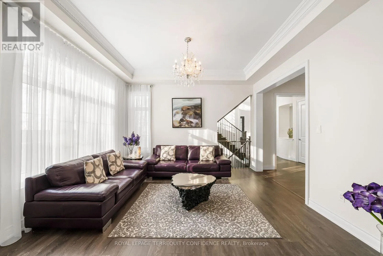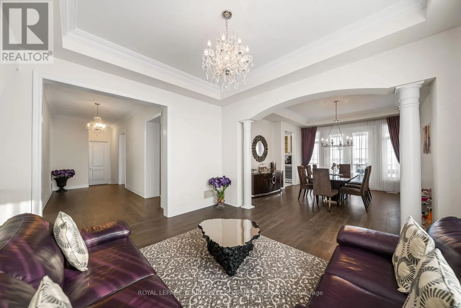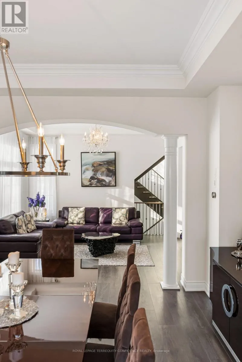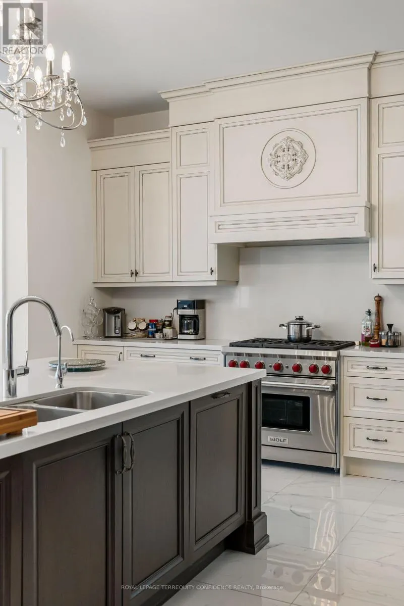 Cross Streets: Hwy 27 / King Rd. ** Directions: South on King Rd & Hwy 27, turn right onto Oliver Emmerson Ave, left onto Larkin Ave, left on Wilkie Ave, right on Macmurchy Ave. Welcome to this timeless and sophisticated standout property, in one of Nobleton's most prestigious & sought-after neighborhoods. Located at the end of a quiet cul-de-sac, backing onto open green space with only one neighbor to the east (providing utmost privacy), this meticulously maintained home also boasts an exceptional 75' frontage, on a rare pie-shaped lot, with south exposure, 4900+ sqft of above grade living space, large principal rooms, & a 3 car garage! Enter to be greeted by the dramatic foyer with soaring double-height ceilings and double closets, an exclusive main floor office with high ceilings & floor-to-ceiling windows, formal living & dining rooms with architectural columns, elegant chef's kitchen with an oversized island, quartz counters, 72" Sub-Zero fridge/freezer, Wolf gas cooktop, & dedicated servery with built-ins, a bright breakfast area overlooking the backyard, and a spacious family room complete with a fireplace & walk-out to the porch. Upstairs, discover 4 spacious bedrooms, each with their own ensuite; and a versatile den. The primary suite is a private sanctuary, with two walk-in his & hers closets, a sitting area, fireplace, and a 5-piece spa-inspired ensuite, with an oversized glass shower. Downstairs, the partially finished basement includes a luxurious state-of-the-art sauna, gym/yoga space, lounge area/recreation room, and rough-ins for additional bathroom and kitchen/bar. Additional features throughout the home include: a mudroom with access from the garage, custom cabinetry, custom jacuzzi (backyard), 10' high ceilings on main, crown moulding, French doors, and generous storage (including space under rear porch). In the peaceful backyard, enjoy the south-facing, private view from the balustrade porch, or in the relaxing jacuzzi. From the front porch, the location provides views of the CN Tower, and forest trail directly across the street. Only minutes to nearby amenities. Live in the perfect blend of seclusion and accessibility. (id:27476)