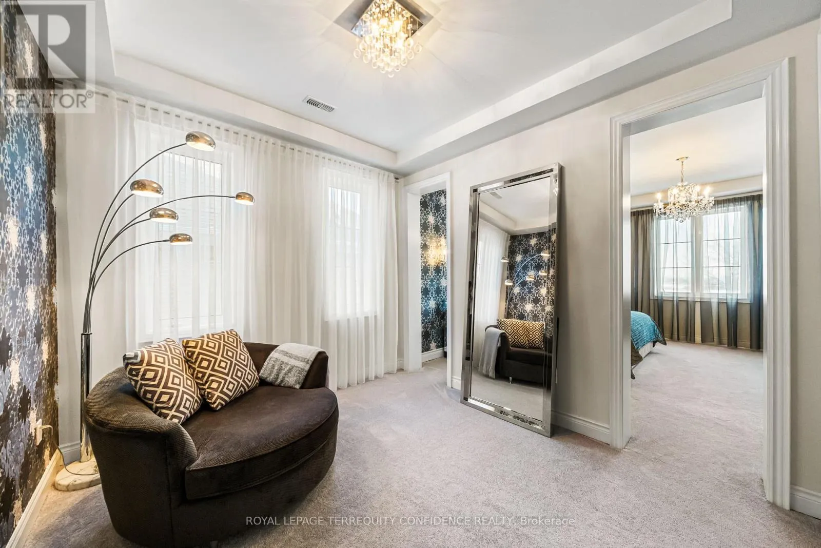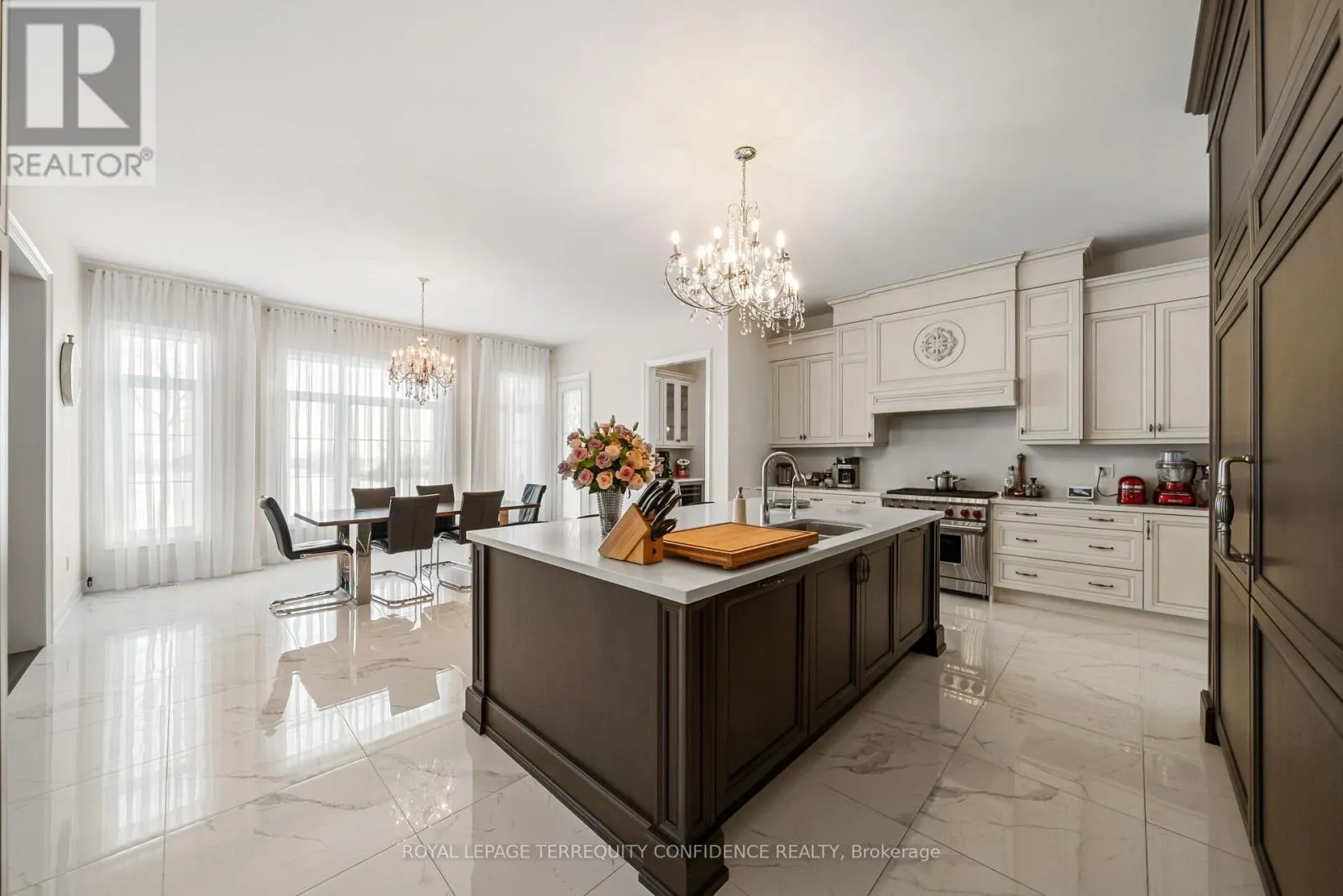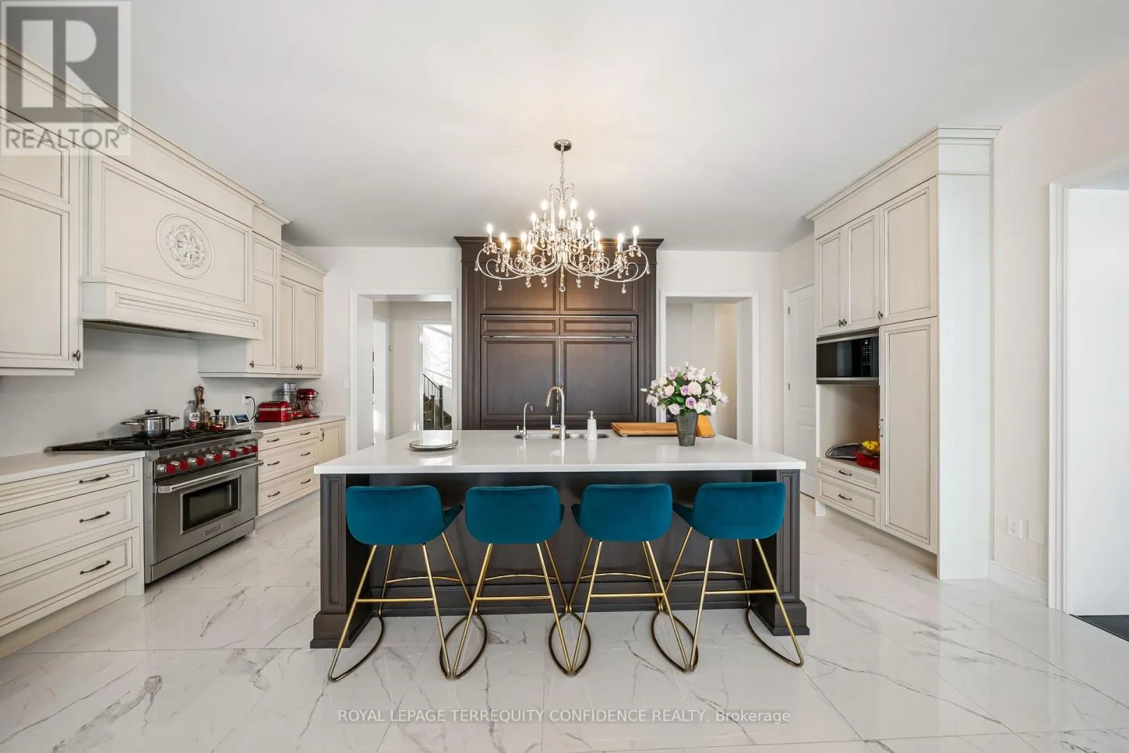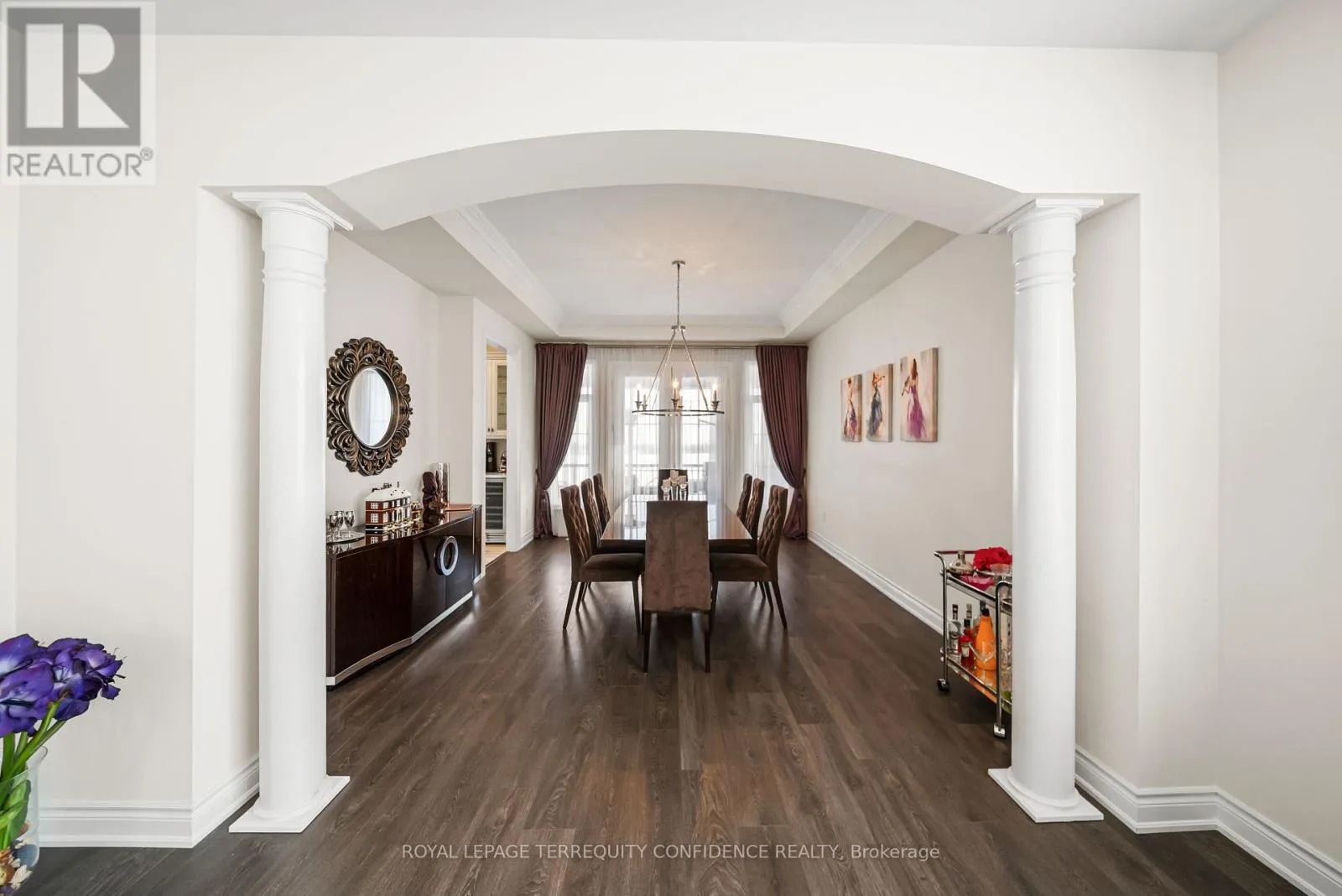 Cross Streets: Hwy 27 / King Rd. ** Directions: South on King Rd & Hwy 27, turn right onto Oliver Emmerson Ave, left onto Larkin Ave, left on Wilkie Ave, right on Macmurchy Ave. Welcome to this timeless and sophisticated standout property, in one of Nobleton's most prestigious & sought-after neighborhoods. Located at the end of a quiet cul-de-sac, backing onto open green space with only one neighbor to the east (providing utmost privacy), this meticulously maintained home also boasts an exceptional 75' frontage, on a rare pie-shaped lot, with south exposure, 4900+ sqft of above grade living space, large principal rooms, & a 3 car garage! Enter to be greeted by the dramatic foyer with soaring double-height ceilings and double closets, an exclusive main floor office with high ceilings & floor-to-ceiling windows, formal living & dining rooms with architectural columns, elegant chef's kitchen with an oversized island, quartz counters, 72" Sub-Zero fridge/freezer, Wolf gas cooktop, & dedicated servery with built-ins, a bright breakfast area overlooking the backyard, and a spacious family room complete with a fireplace & walk-out to the porch. Upstairs, discover 4 spacious bedrooms, each with their own ensuite; and a versatile den. The primary suite is a private sanctuary, with two walk-in his & hers closets, a sitting area, fireplace, and a 5-piece spa-inspired ensuite, with an oversized glass shower. Downstairs, the partially finished basement includes a luxurious state-of-the-art sauna, gym/yoga space, lounge area/recreation room, and rough-ins for additional bathroom and kitchen/bar. Additional features throughout the home include: a mudroom with access from the garage, custom cabinetry, custom jacuzzi (backyard), 10' high ceilings on main, crown moulding, French doors, and generous storage (including space under rear porch). In the peaceful backyard, enjoy the south-facing, private view from the balustrade porch, or in the relaxing jacuzzi. From the front porch, the location provides views of the CN Tower, and forest trail directly across the street. Only minutes to nearby amenities. Live in the perfect blend of seclusion and accessibility. (id:27476)