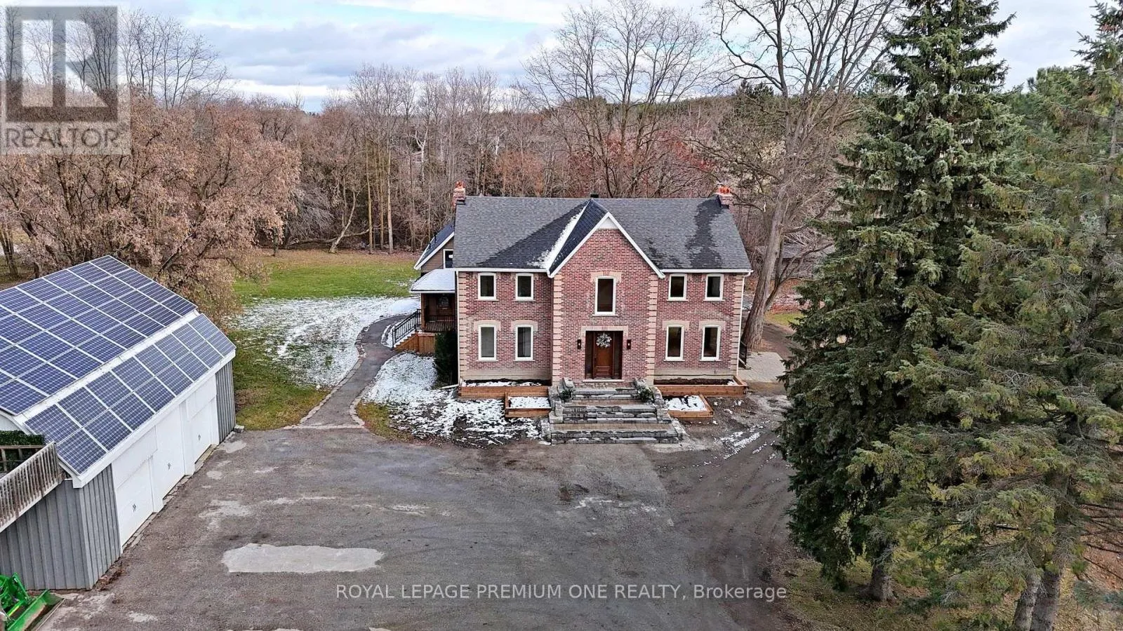 19th Sideroad & 11th Concession Century farmhouse charm meets modern luxury - enter through a private, winding tree-lined driveway loading to this breathtaking 12-acre property of rolling hills and tranquil ponds, minutes from Highways 400 and 27 in prestigious King Township. Offering over 7,000 sqft of finished living space, this fully renovated home was taken to the studs and rebuilt with exceptional craftsmanship. Soaring ceilings and expansive windows frame picturesque views, while the open-concept layout delivers bright, functional living without compromising comfort. The chef's kitchen showcases premium Thermador appliances, custom cabinetry by Povey Custom Woodworking, and a large island made for gathering. Thoughtfully upgraded throughout with imported European tile, designer finishes, new plumbing, electrical, HVAC, geothermal-ready systems, and solar power income for added efficiency and value. Leathered granite fireplaces, smart lighting, high-end fixtures, and a restored sauna elevate the experience. Outdoors, enjoy a new covered deck and professionally landscaped grounds. A carriage house offers parking for 3+ vehicles with a private 2-bedroom apartment above, complemented by an original 1800s barn. A separate home office with bedroom and ensuite ideal as an in-law or nanny suite includes additional lower-level walkout space. Crafted by award-winning Gatti Brother Renovations, this is more than a renovation it's a legacy home, reimagined. See attached full list of renos and features. A carriage house includes second floor living quarters. Private trails lead to the meandering Schomberg Creek and across a charming bridge to a serene pond - perfect for summer swims or winter hockey games. This is a property for those in search of something truly special. (id:27476)