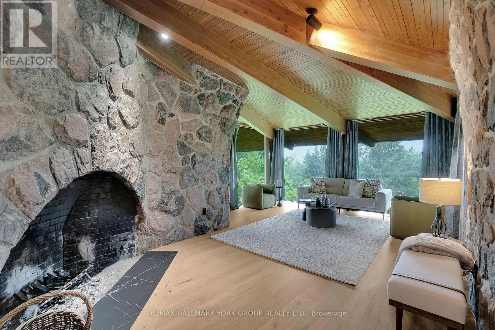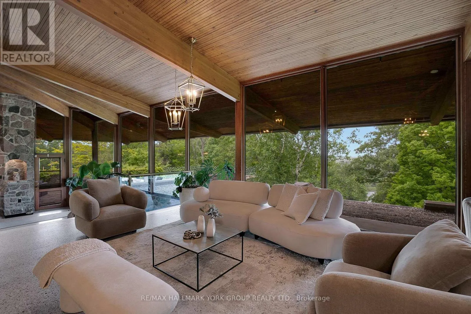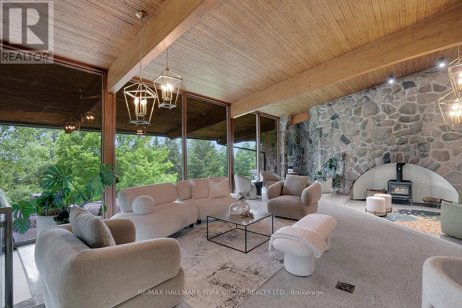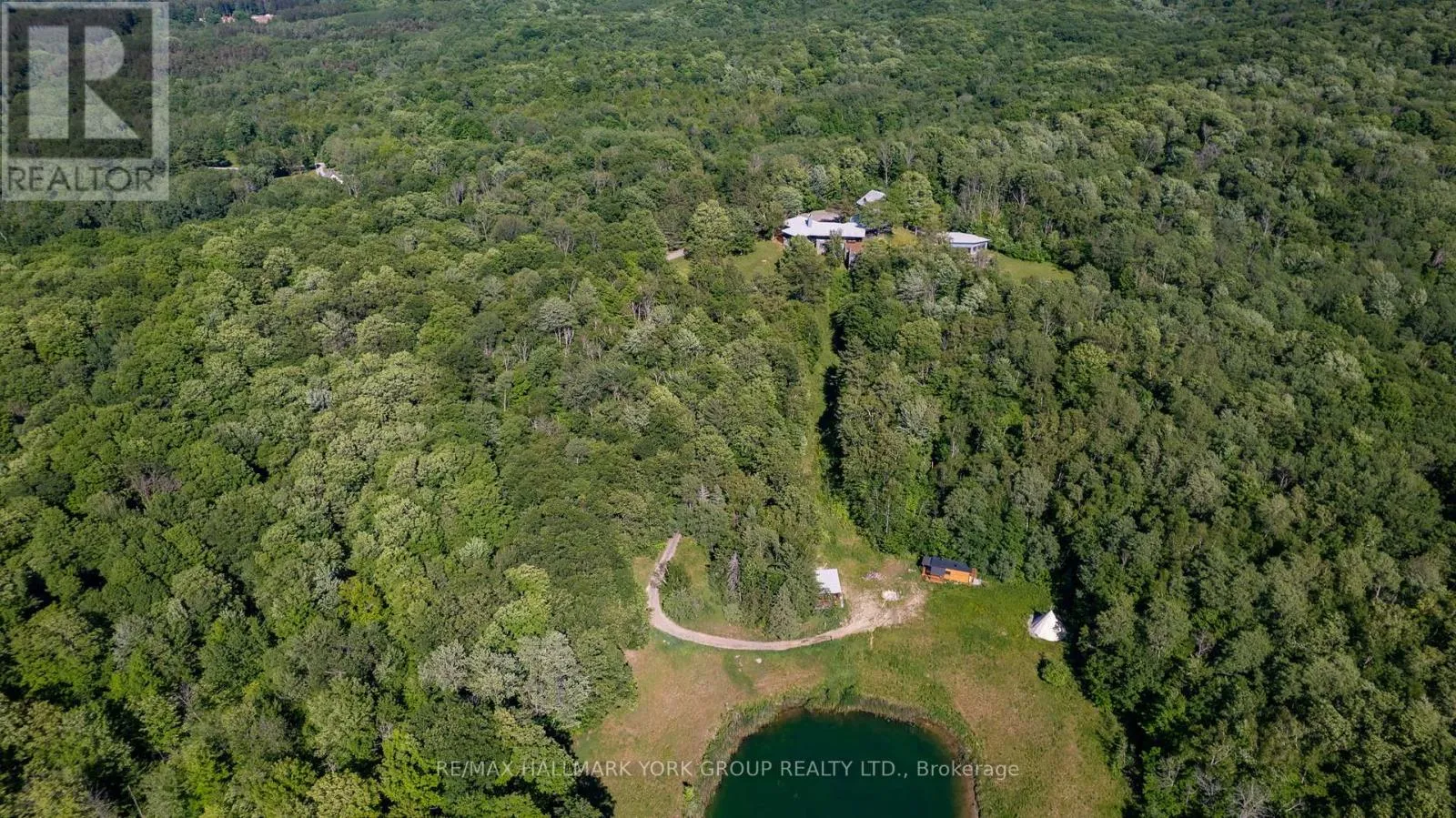 Cross Streets: Western Rd and 17th Sideroead. ** Directions: 17th Sideroad. Welcome to an extraordinary estate tucked away behind welcoming stone pillars and a winding forested driveway! This is a work of art designed by the legendary Grant Whatmough and Gardiner Cowan, with distinctive Frank Lloyd Wright style of Architecture. This iconic Mid-Century Modern residence is gracefully integrated into 32 acres of majestic land, where nature and architecture exist in perfect harmony. From the moment you approach the stunning entry door, you're drawn into a world of timeless design and serene beauty. This home is lovingly maintained with extensive renovations, while preserving the character and soul of this home, Including Floor-to-ceiling windows bring the outdoors in, Stone fireplaces indoor and out, original stone walls and impressive wood beams throughout. Spanning approximately 5,000 sq ft, the main residence features 6 bedrooms, 7 bathrooms, an office, a meditation room, and a separate nanny suite. Multiple terraces and decks surround the home, offering breathtaking views of the land, and a tranquil lake creating the feel of a private luxury retreat. This property features a rare second home- fully renovated and approximately 3,500 sq ft-offering 3 bedrooms, 4 bathrooms, and a massive loft space! This second home is ideal for an extended family! There is an additional Yoga studio with an outdoor shower! a Detached garage/ workshop, a charming cedar Cabin with Sauna and Cold plunge, a Covered cabana for entertaining or relaxing on the property. This is a once-in-a-lifetime opportunity to own an architecturally significant estate in the prestigious King Township. With unmatched privacy, lush surroundings, and two beautifully appointed homes, this property is truly a timeless work of art. Don't Miss it! (id:27476)
