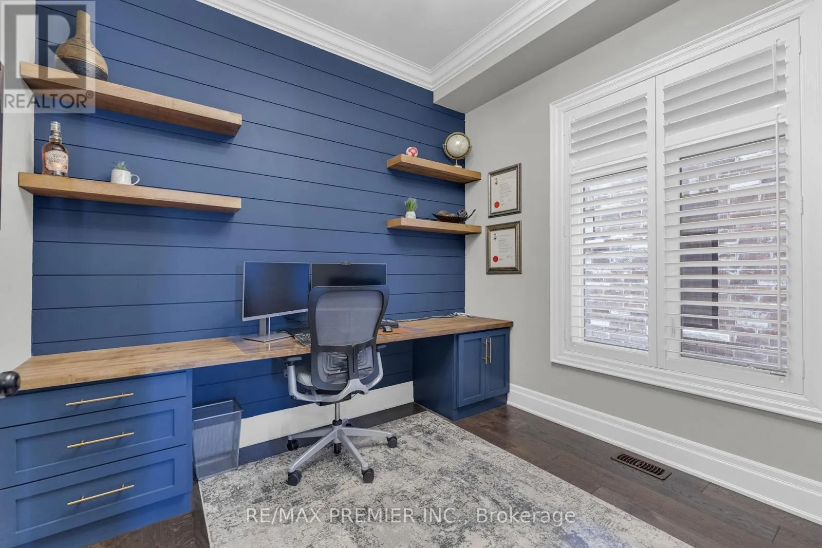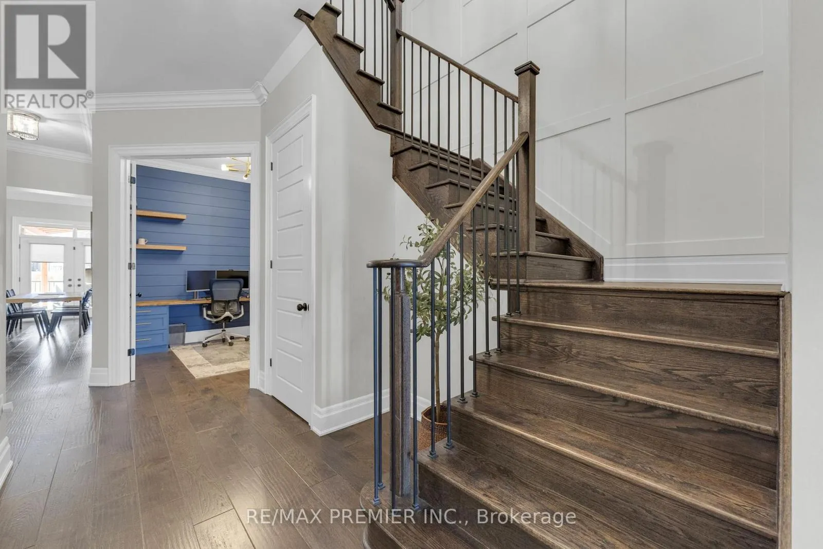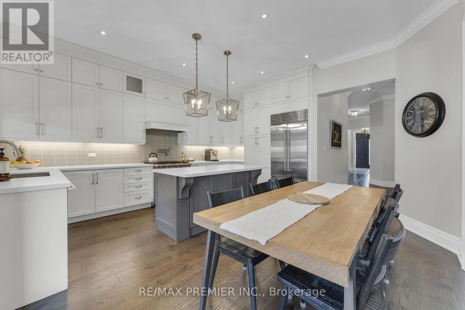 Cross Streets: Keele Street and King Road. ** Directions: King Rd/King Blvd. Welcome to 14 King Blvd in the heart of King City. This exceptional 4+1 bedroom home blends space, function, and refined craftsmanship throughout. The main floor showcases 10-foot ceilings, hand-scraped engineered hardwood flooring, formal living and dining rooms, and a dedicated office retreat perfect for working from home. The spacious eat-in kitchen is designed for both everyday living and entertaining, while custom accent walls and detailed finishes elevate the overall design. Complete with high end appliances and a centre island and quartz countertops, the kitchen is an entertainer's dream. Each oversized bedroom features its own custom walk-in closet. The thoughtfully designed second level offers a luxurious primary retreat with heated floors in the primary ensuite, a Jack & Jill bathroom connecting two bedrooms, and a private ensuite for the fourth bedroom - ideal for growing families. The fully finished basement extends the living space with an additional bedroom, full bathroom, office area, and a generous recreation room - ideal for guests or multi-generational living.The landscaped backyard features premium turf, a cedar pergola, walk-in gas line for BBQ, and stonework along both sides with convenient access. No sidewalk allows for additional parking and enhanced curb appeal.Minutes to the GO Station and Highway 400, this turnkey home offers the perfect balance of luxury, comfort, and convenience. (id:27476)