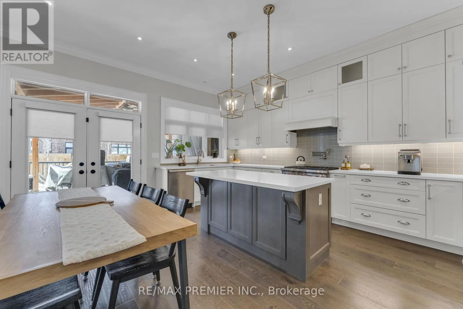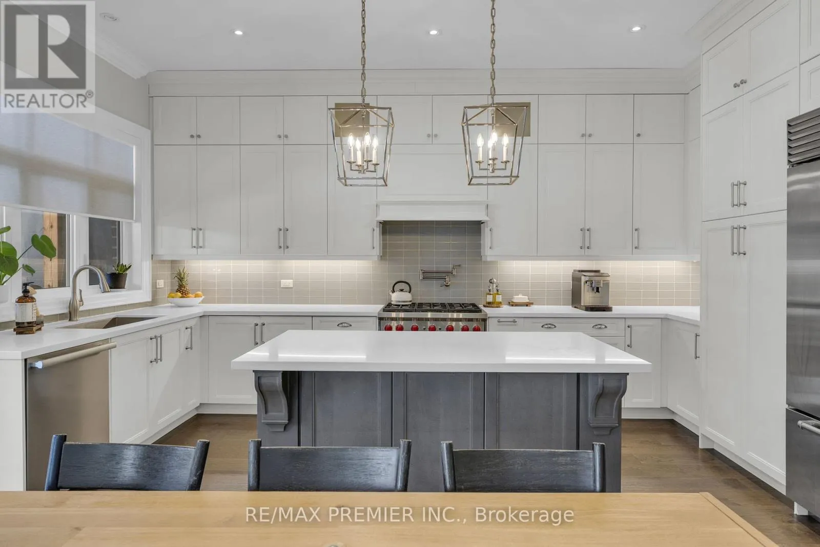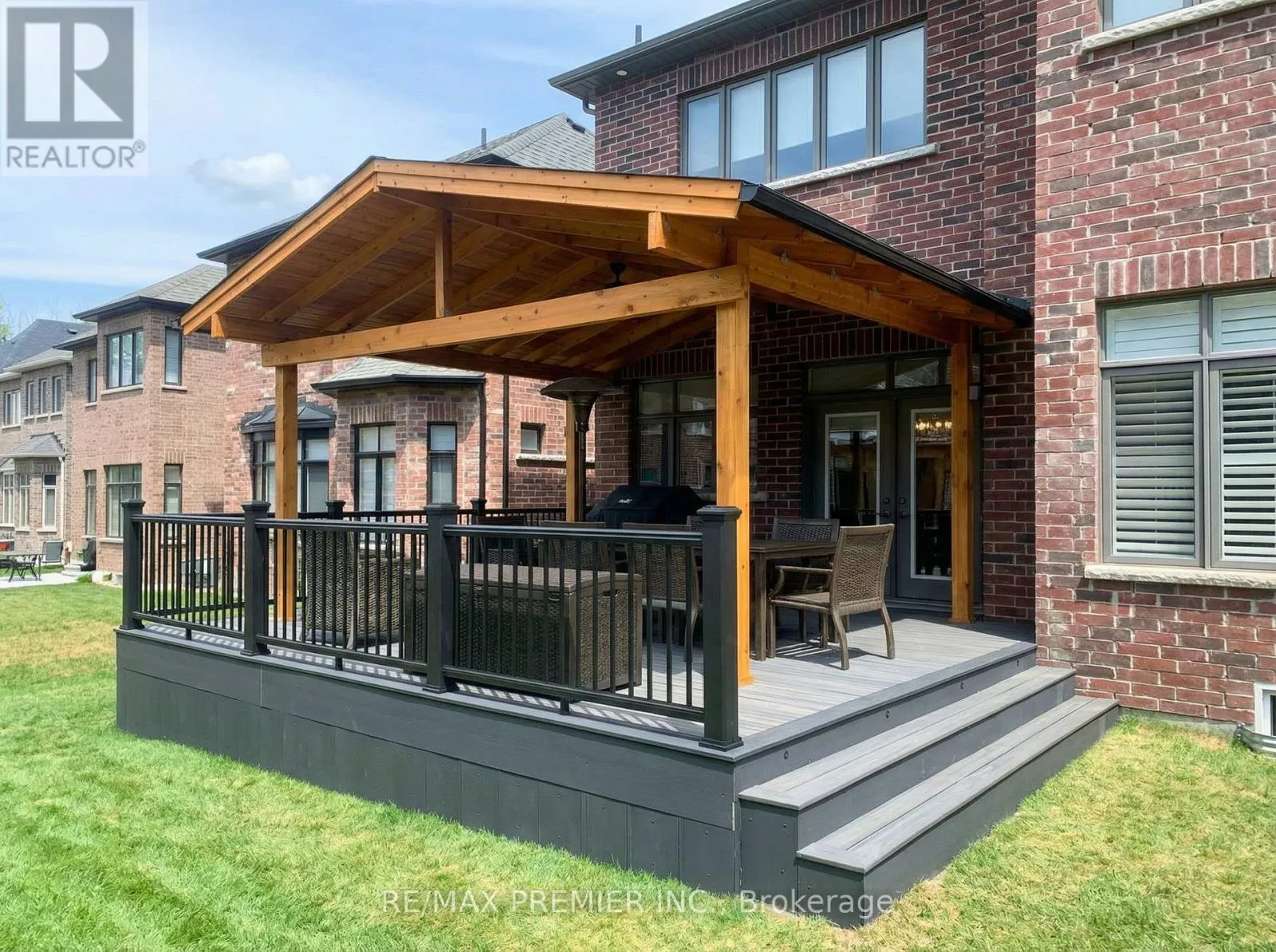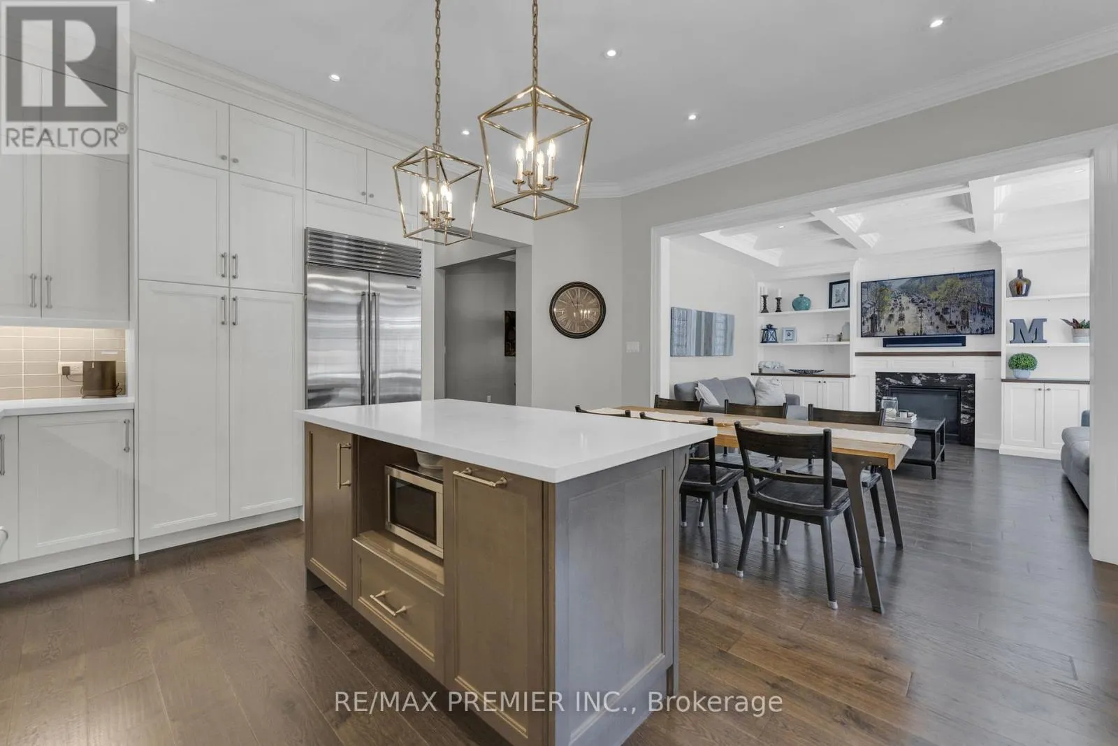 Cross Streets: Keele Street and King Road. ** Directions: King Rd/King Blvd. Welcome to 14 King Blvd in the heart of King City. This exceptional 4+1 bedroom home blends space, function, and refined craftsmanship throughout. The main floor showcases 10-foot ceilings, hand-scraped engineered hardwood flooring, formal living and dining rooms, and a dedicated office retreat perfect for working from home. The spacious eat-in kitchen is designed for both everyday living and entertaining, while custom accent walls and detailed finishes elevate the overall design. Complete with high end appliances and a centre island and quartz countertops, the kitchen is an entertainer's dream. Each oversized bedroom features its own custom walk-in closet. The thoughtfully designed second level offers a luxurious primary retreat with heated floors in the primary ensuite, a Jack & Jill bathroom connecting two bedrooms, and a private ensuite for the fourth bedroom - ideal for growing families. The fully finished basement extends the living space with an additional bedroom, full bathroom, office area, and a generous recreation room - ideal for guests or multi-generational living.The landscaped backyard features premium turf, a cedar pergola, walk-in gas line for BBQ, and stonework along both sides with convenient access. No sidewalk allows for additional parking and enhanced curb appeal.Minutes to the GO Station and Highway 400, this turnkey home offers the perfect balance of luxury, comfort, and convenience. (id:27476)
