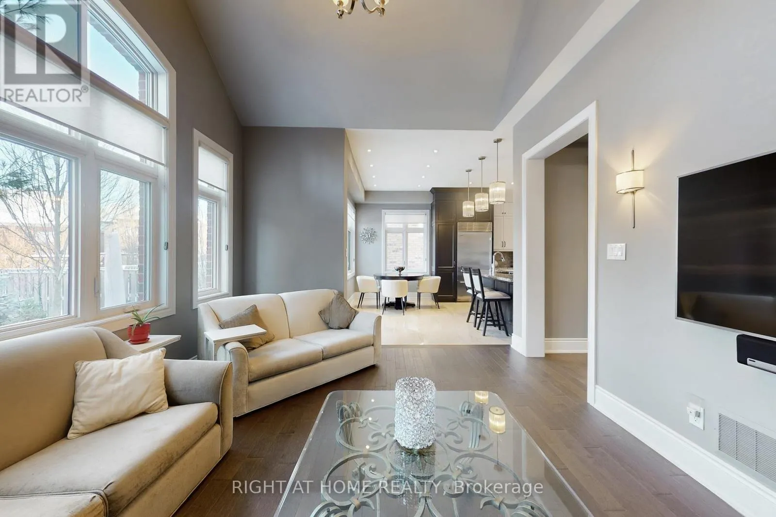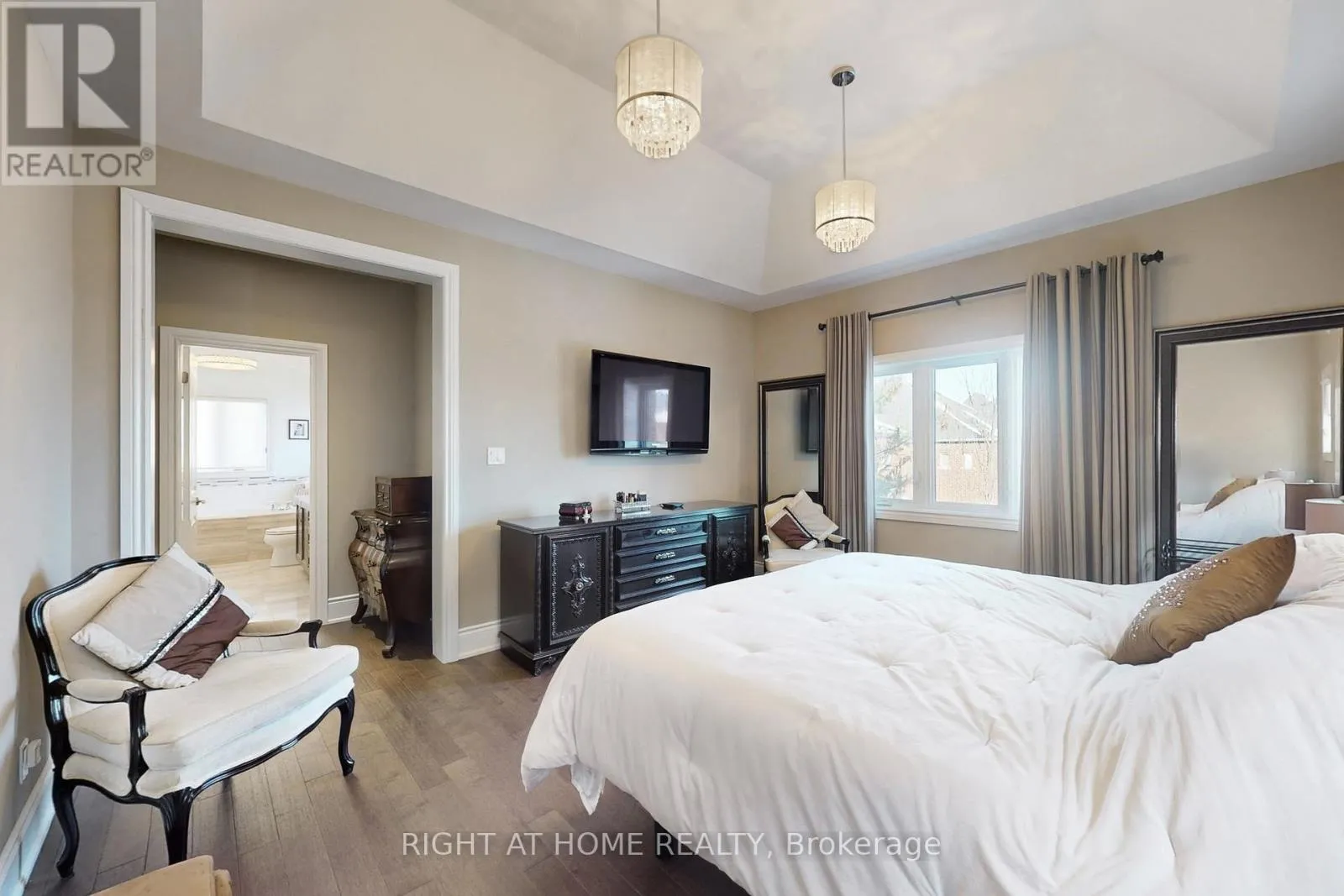 Keele Street & King Road Welcome to an exceptional luxury home located on a quiet crescent in prestigious King City. This beautifully maintained 3-bedroom, 5-bathroom detached two-storey residence offers rare complete privacy with no homes directly in front or behind and a south-facing exposure that fills the home with natural light.Featuring large windows, hardwood flooring throughout, crown moulding, and a carpet-free interior, the home showcases quality craftsmanship and thoughtful customization at every turn. The main level offers a spacious formal dining room and a bright eat-in kitchen with high-end stainless steel appliances.The upper level features a primary retreat with a large walk-in closet and private ensuite, while each additional bedroom has its own ensuite bathroom, offering exceptional comfort with no shared bathrooms.The professionally finished basement includes custom kitchen cabinetry, a full stainless steel appliance package, and a wine fridge, ideal for entertaining or extended living. Additional highlights include custom-built storage, electric fireplaces, and an integrated home entertainment system with in-wall speakers throughout.Step outside to a private, professionally landscaped backyard surrounded by mature trees and lush greenery. Enjoy elegant stonework, a custom brick shed, and a charming backyard swing, creating a peaceful outdoor retreat. Added features include wrought iron pickets, exterior security cameras, and meticulous attention to detail throughout.A rare opportunity to own a move-in-ready luxury home in one of King City's most desirable neighbourhoods. (id:27476)
