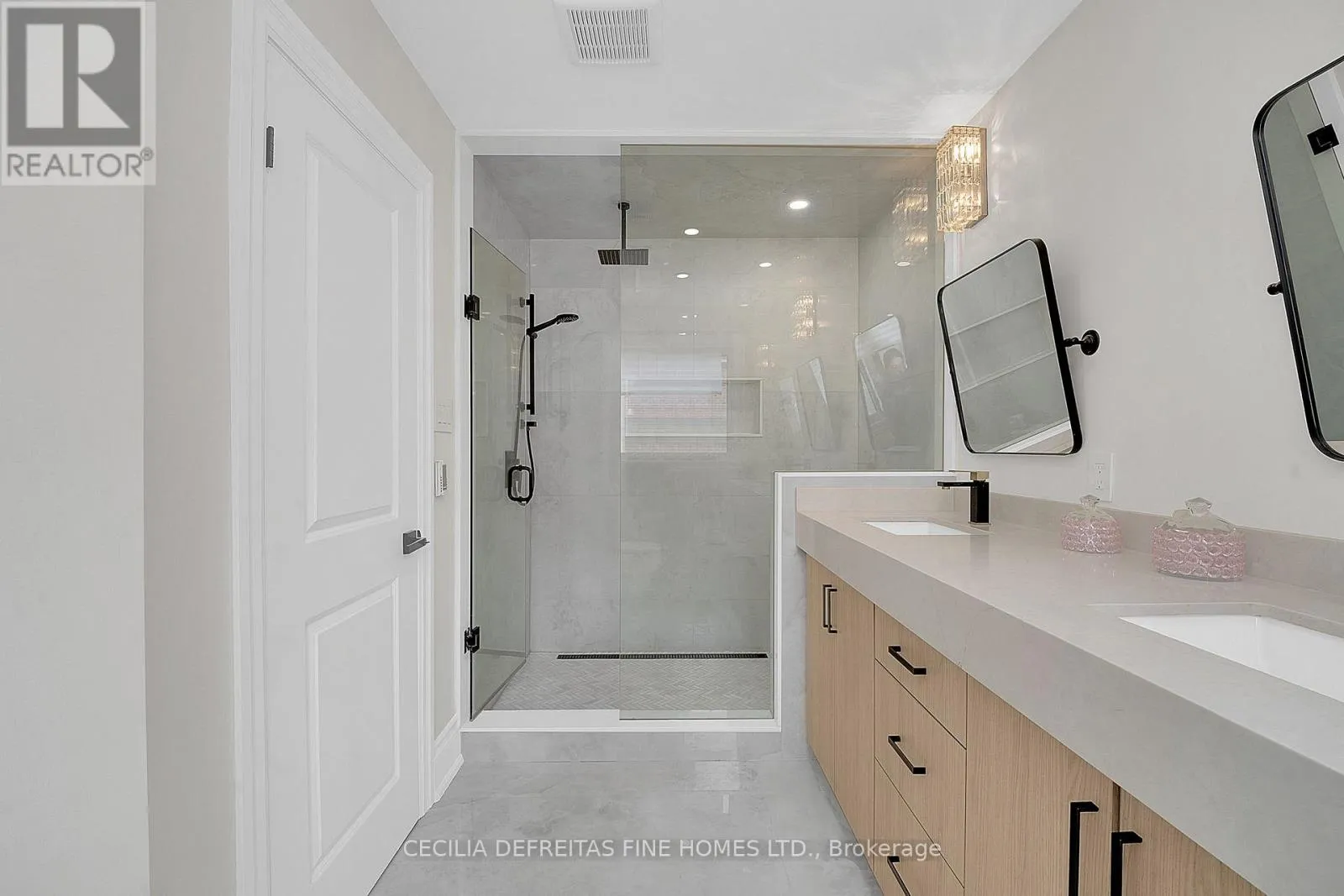 Cross Streets: King Rd & Dufferin St. ** Directions: King Rd West of Dufferin St. Stunning fully renovated townhouse offering approximately 2,158 sq ft plus a professionally finished 1,000 sq ft lower level. Featuring 4 spacious bedrooms and 5 beautifully appointed bathrooms, including a spa-inspired primary ensuite with heated floors. Primary bedroom has 11 ft vaulted ceiling. Soaring 9 ft smooth ceilings on the main level create a bright, elegant atmosphere. Expansive eat-in kitchen overlooking the family room with walk-out to a brand new Trex deck with integrated lighting. Impeccably landscaped and completely turnkey - a rare opportunity for refined, move-in-ready living. Very bright home and attached only by the garage. (id:27476)