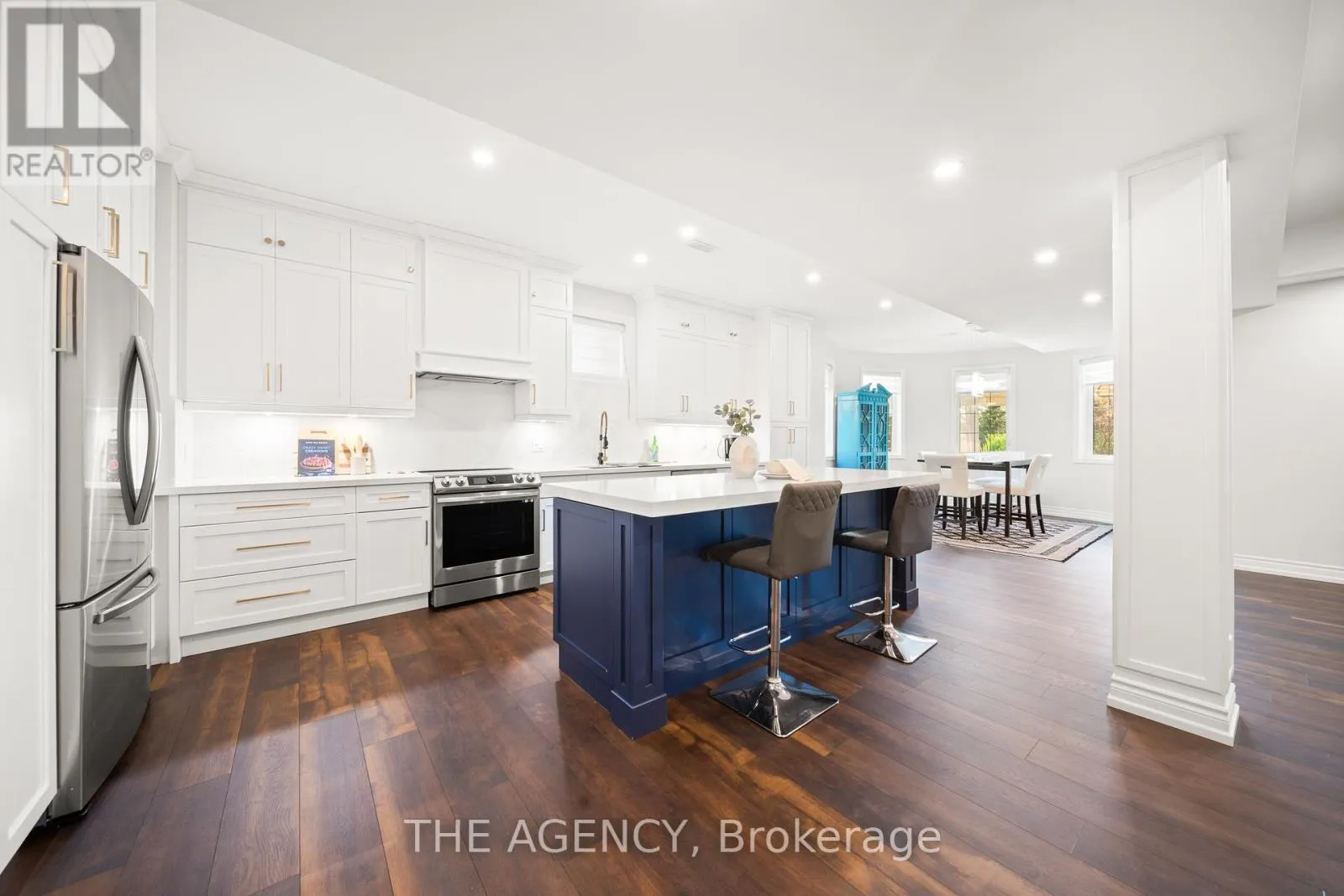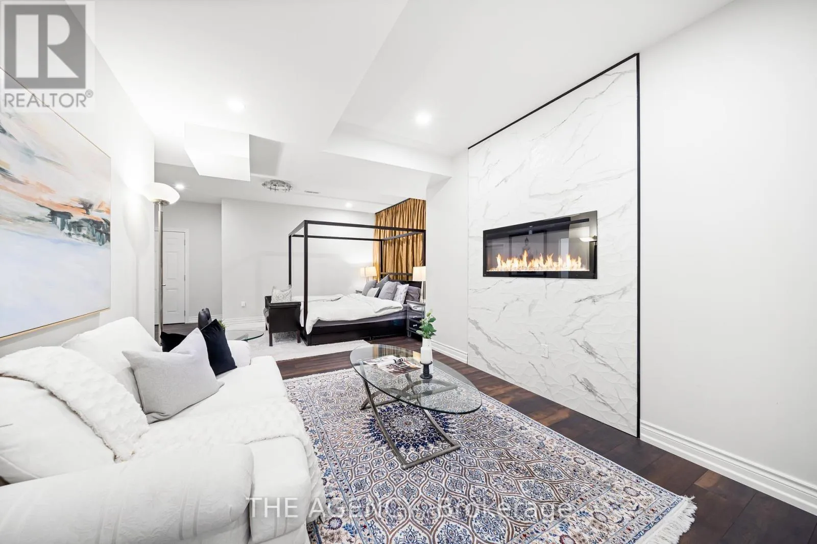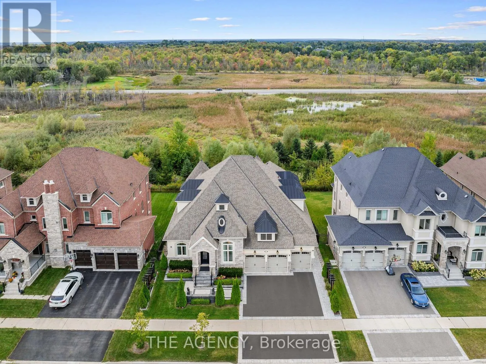 King Vaughan Rd./Keele St. Located in the heart of King City, this beautiful bungaloft offers more than 6,900 square feet of finished living space in a community prized for its parks, trails, excellent schools, and quick access to the King City GO station. The home is introduced by a stone-and-stucco facade, a three-car garage, and landscaped grounds with a terrace and rear patio overlooking the ravine. Inside, soaring ceilings, hardwood floors, and detailed millwork set an elegant tone. The front foyer rises two storeys, leading to a series of principal rooms defined by coffered ceilings: a paneled office, a formal living and dining room, and a family room anchored by a gas fireplace. At the centre of the main level, the kitchen is fitted with dark-stained cabinetry, quartz counters, and a full suite of Wolf and Sub-Zero appliances. The adjoining breakfast area opens directly to the terrace. A main-floor primary suite with a spa-like ensuite and walk-in closet provides a private retreat, while a second bedroom with its own ensuite adds flexibility for family or guests. An elevator connects all three levels. The upper floor includes two additional bedrooms, a full bath, and a den well suited for children, extended family, or a separate study. The fully finished lower level is above grade, with oversized windows and French doors leading to the rear patio. This home includes total of 4 + 2 bed and 4 + 2 bath. Designed as a complete secondary living area, it includes a full kitchen with quartz counters and Samsung appliances, a dining area, a large recreation room with fireplaces, two bedrooms, and additional baths. This thoughtful layout makes the property especially accommodating for multi-generational living. Every detail of this residence reflects quality and enduring design, offering a rare opportunity in one of King City's most desirable settings. (id:27476)