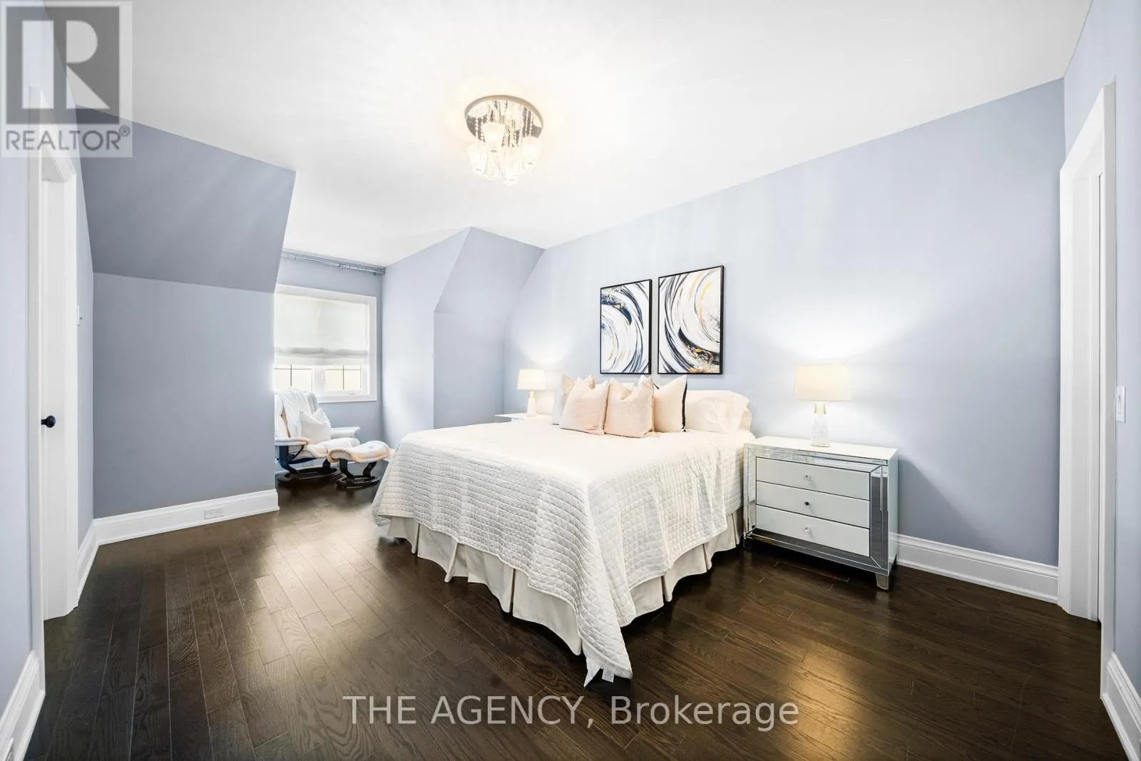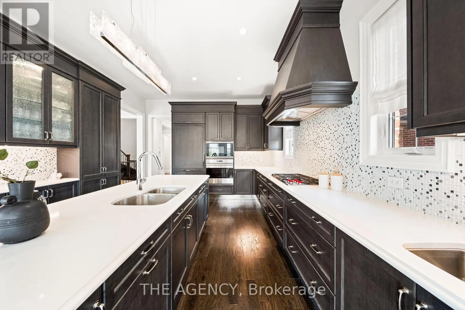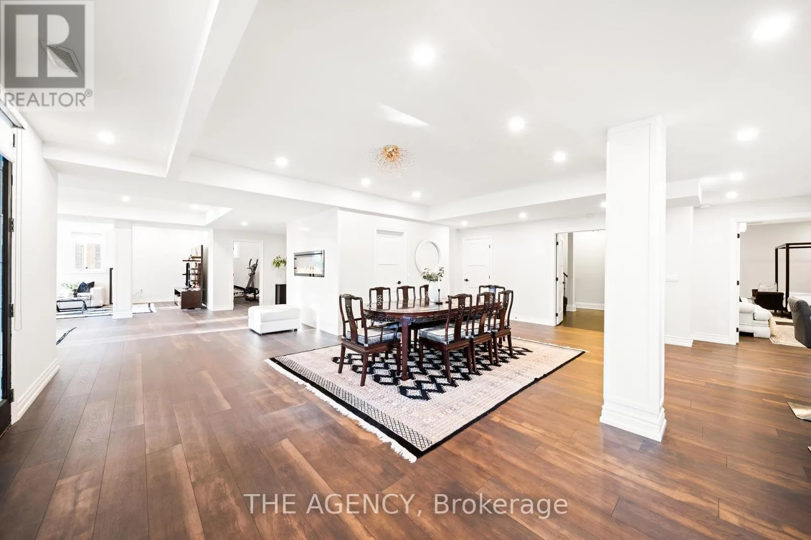 King Vaughan Rd./Keele St. Located in the heart of King City, this beautiful bungaloft offers more than 6,900 square feet of finished living space in a community prized for its parks, trails, excellent schools, and quick access to the King City GO station. The home is introduced by a stone-and-stucco facade, a three-car garage, and landscaped grounds with a terrace and rear patio overlooking the ravine. Inside, soaring ceilings, hardwood floors, and detailed millwork set an elegant tone. The front foyer rises two storeys, leading to a series of principal rooms defined by coffered ceilings: a paneled office, a formal living and dining room, and a family room anchored by a gas fireplace. At the centre of the main level, the kitchen is fitted with dark-stained cabinetry, quartz counters, and a full suite of Wolf and Sub-Zero appliances. The adjoining breakfast area opens directly to the terrace. A main-floor primary suite with a spa-like ensuite and walk-in closet provides a private retreat, while a second bedroom with its own ensuite adds flexibility for family or guests. An elevator connects all three levels. The upper floor includes two additional bedrooms, a full bath, and a den well suited for children, extended family, or a separate study. The fully finished lower level is above grade, with oversized windows and French doors leading to the rear patio. This home includes total of 4 + 2 bed and 4 + 2 bath. Designed as a complete secondary living area, it includes a full kitchen with quartz counters and Samsung appliances, a dining area, a large recreation room with fireplaces, two bedrooms, and additional baths. This thoughtful layout makes the property especially accommodating for multi-generational living. Every detail of this residence reflects quality and enduring design, offering a rare opportunity in one of King City's most desirable settings. (id:27476)