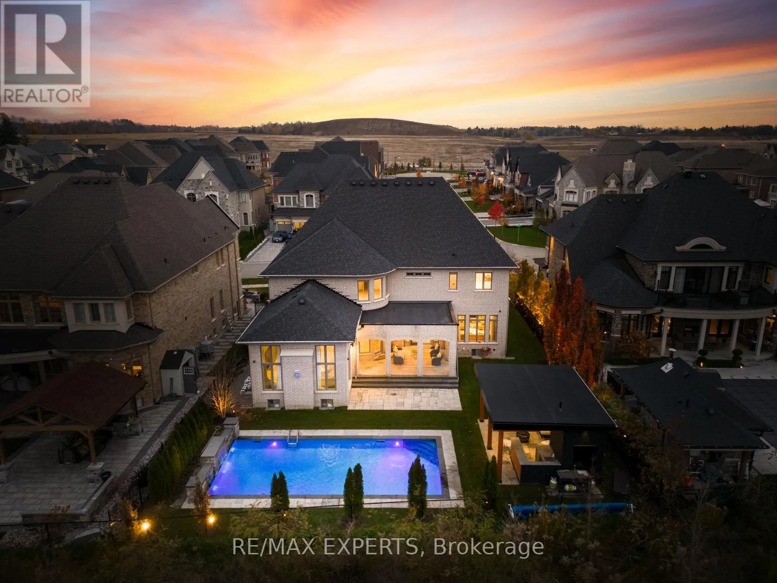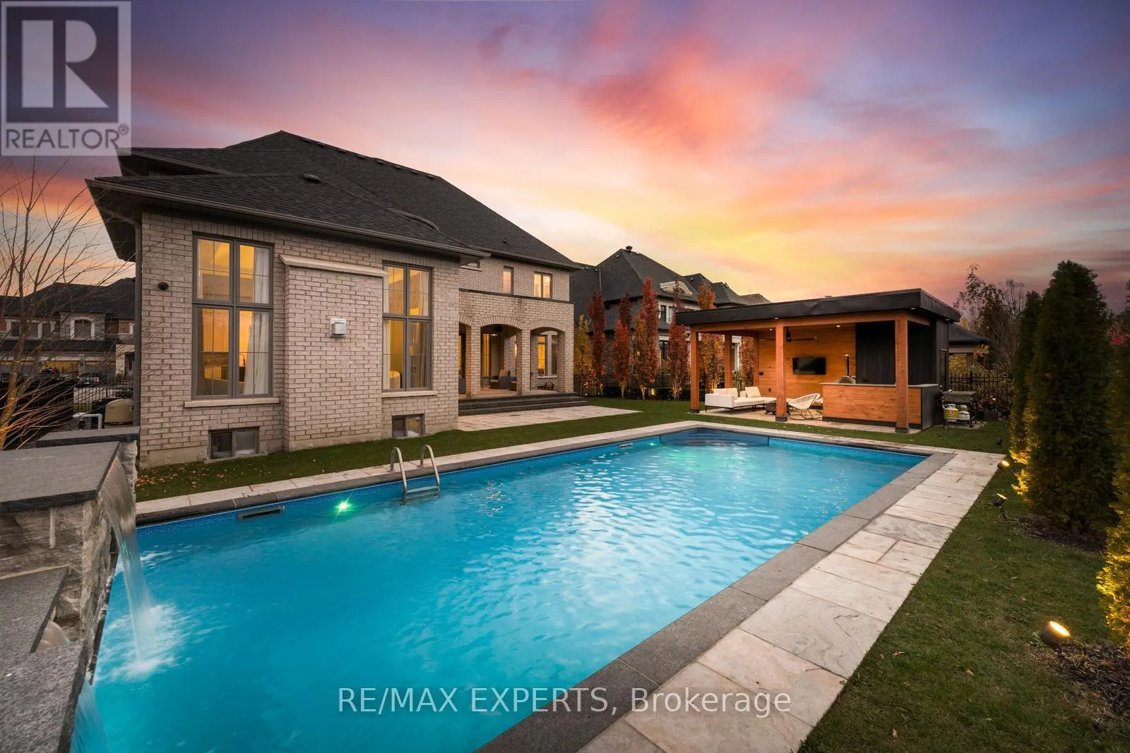 Cross Streets: King And Jane. ** Directions: south. Absolute Showstopper - Custom Luxurious Home on a Ravine Lot. Welcome to 32 James Stokes Court in the prestigious community of King City! This luxurious custom-finished home offers 8000 sq. ft. of living space and shows better than a model home. Featuring 4 bedrooms and 8baths, this designer home boasts an excellent layout and gorgeous modern finishes. Lots of custom finishings: hardwood with herringbone inlays in the kitchen area, porcelain tiles, 10 ft ceilings, 8 ft doors, stunning custom feature walls in the living, dining, and family rooms, coffered ceilings throughout, backlit marble, Centre Island, crown molding, custom bathrooms, and chandeliers throughout. The modern dream kitchen is equipped with custom cabinetry, a large Centre Island, onyx stone countertops, built-in appliances, a surround speaker system with Sonos, a camera system, valance lighting, and a walk-in pantry. The main floor office and second-floor laundry add convenience, while the large bedrooms each feature private ensuites. The primary bedroom retreat includes a massive custom walk-in closet and a spa-like 5-piece ensuite. This home is fully loaded and move-in ready, with a 3-car garage plus a lift, a heated saltwater pool (2020) with a waterfall feature, a beautiful pool side cabana with 11 ft ceilings, an outdoor washroom, and a bar. The property is fully landscaped with a sprinkler system. The custom-finished basement includes a steam sauna with marble, a movie theatre, and a gym. This home has everything you have been looking for and more! **EXTRAS** Full Home Monitoring System, Security Cameras. Wolf & Subzero Appliances. Washer/Dryer. A/C. All Appliances In Basement. Roughed In Space For Elevator/Lift, Easy 400 Access & Go Train Access. (id:27476)