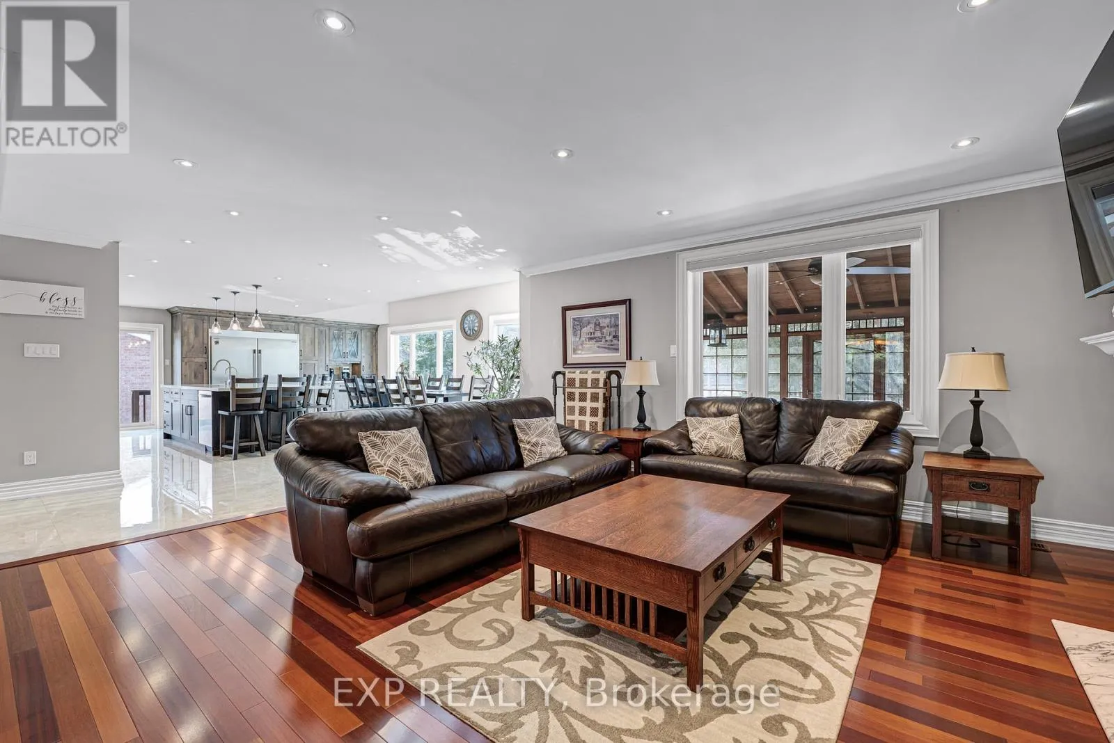 Cross Streets: Bathurst & Bloomington Rd. ** Directions: Bathurst to 15th SR, west to 15th. This exceptionally maintained and tastefully renovated home is perfectly suited for a growing or multi-generational family. Thoughtfully designed with both comfort and entertaining in mind, the expansive chef's kitchen showcases custom cabinetry, integrated, high end appliances, and an oversized island, seamlessly opening to a warm and inviting family room centered around a cozy fireplace-ideal for both everyday living and grand gatherings.The stunning three-season Muskoka room offers serene views of the resort-style backyard, complete with a saltwater swimming pool and waterfall. A large stone patio with a built-in pizza oven enhances the outdoor experience, creating the perfect setting for entertaining or relaxing in your private retreat.The main floor also features a formal dining room and a private office, ideal for working from home or use as another bedroom. Upstairs, you'll find three generously sized bedrooms along with the convenience of second-floor laundry.The fully finished lower level includes a spacious in-law suite with a walkout to the beautifully landscaped grounds, offering flexibility and comfort for extended family or guests.Completing this exceptional property is ample parking for up to six vehicles, along with a rare three-car tandem garage-perfect for car enthusiasts, hobbyists, or additional storage-enhanced by the added convenience of a built-in air compressor system and backup generator for peace of mind. Enjoy the tranquility of country-style living just minutes from all the amenities of Aurora and Newmarket. (id:27476)