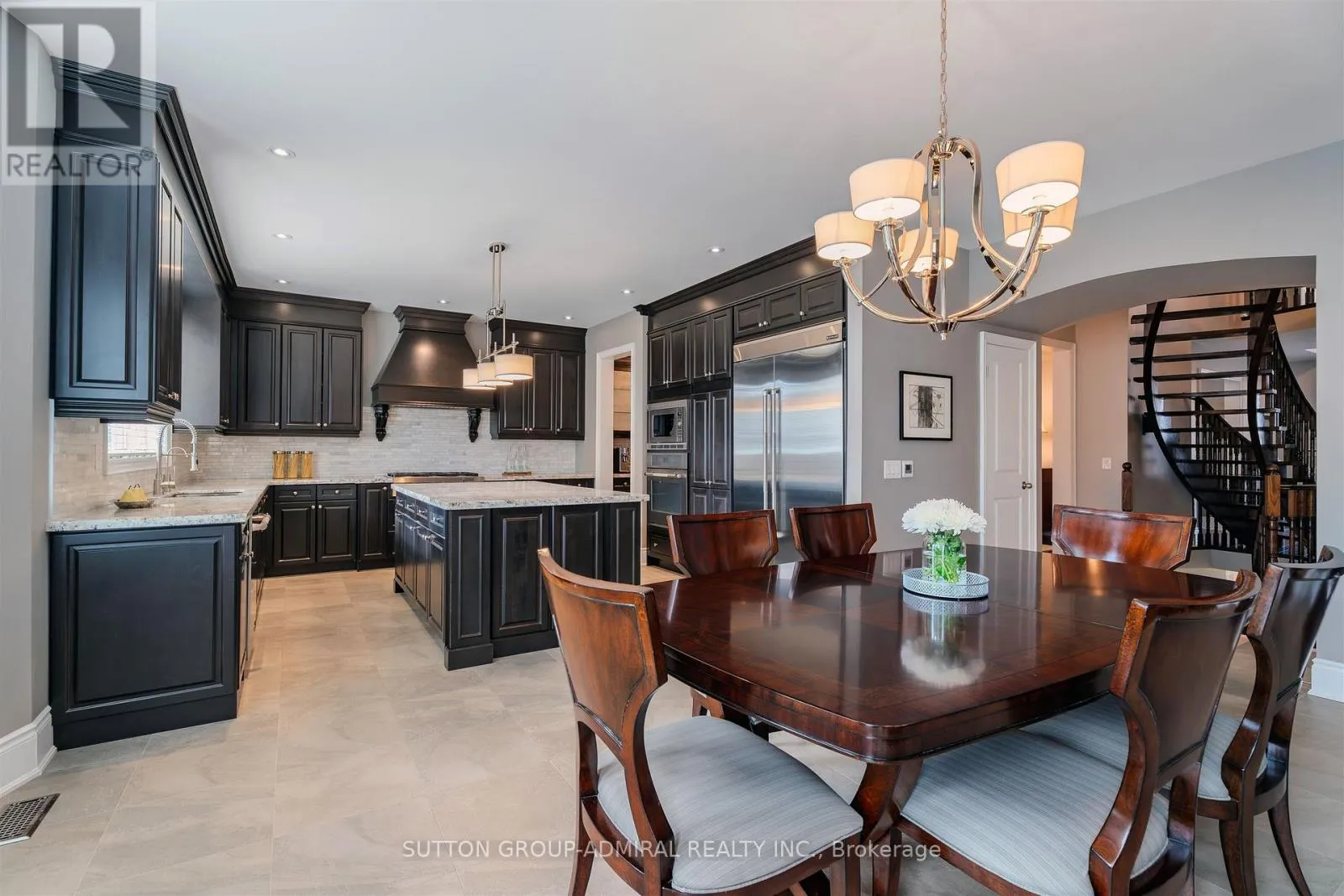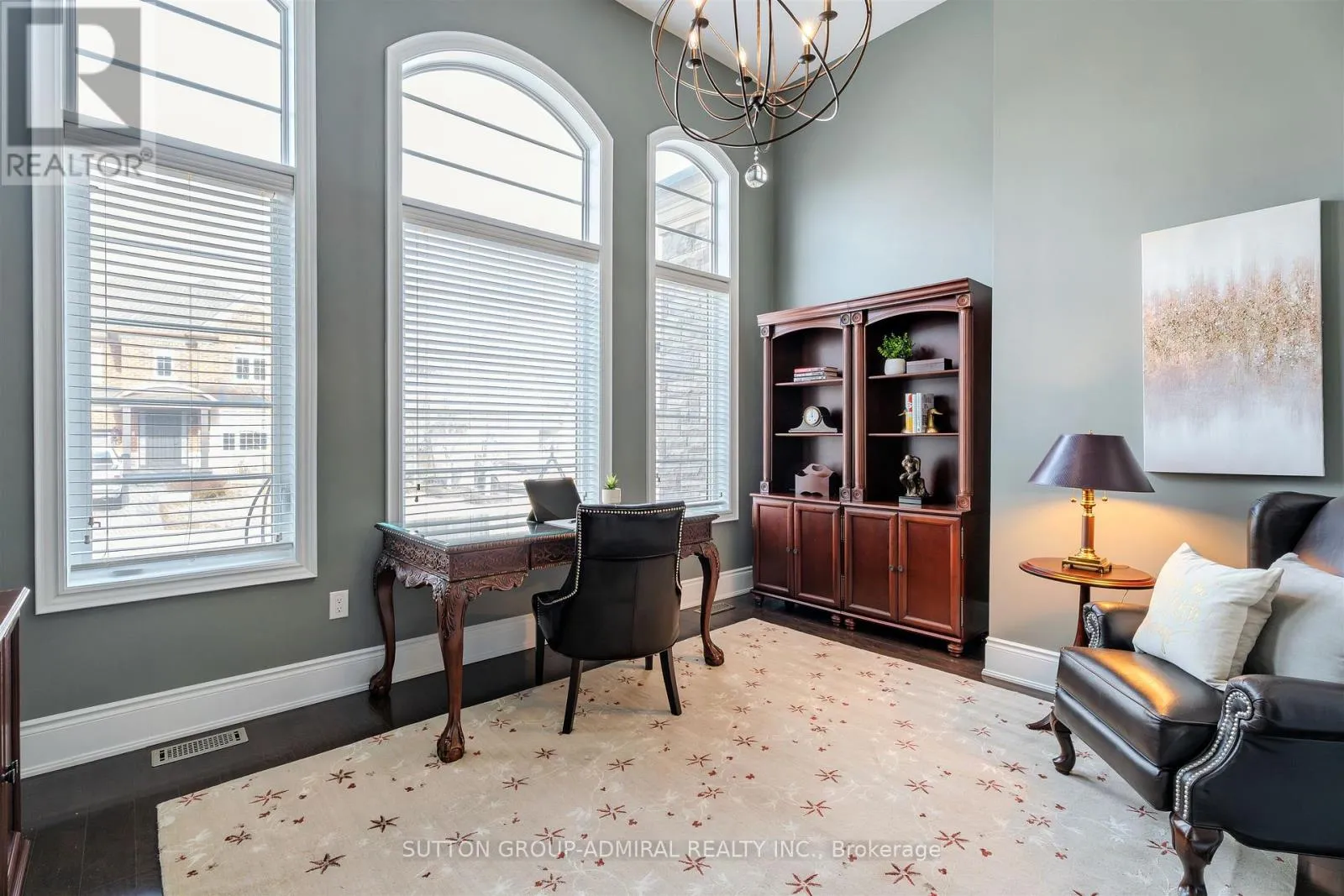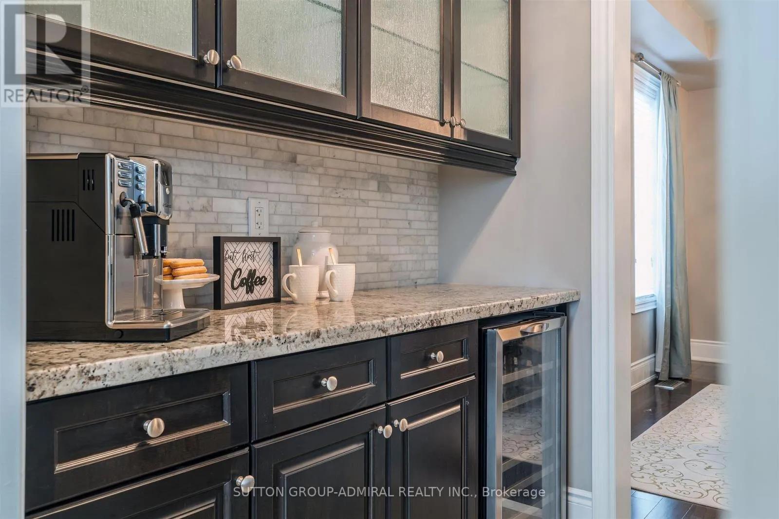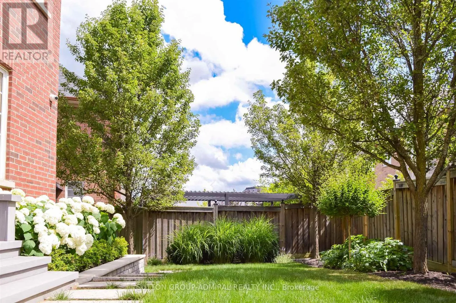 HWY 27/KING RD This executive home is a masterclass in elegance, offering over 4,000 sq. ft. of meticulously maintained living space. Situated on a premium lot on quiet street, the property is a nature lover's dream, bordered by conservation land and walking trails. The striking stone and brick exterior front, a long pavers-landscaped driveway (no sidewalk) for ample parking & a characteristic front porch with an outdoor chandelier creates a lasting first impression. A custom 8' arched door with sidelights welcomes you into a sophisticated floor plan. The main level offers a unique sunken library combined w/ a flexible living space- perfect for a piano room, home office or business waiting area. At the heart of the home is the upgraded Selba kitchen, boasting extended Maple cabinetry, a large centre island, granite counters, & Carrara marble backsplash. A convenient servery with bar fridge & a walk-in pantry connect the kitchen to a quaint formal dining room- the perfect setting for hosting intimate dinner parties. The open concept eating area of the kitchen features 18 x 18 Italian porcelain tiles and walks-out to a fully fenced yard with interlocked patio. Relax in the adjoining open concept design grand family room, highlighted by a tray ceiling & a cozy gas fireplace. For ultimate convenience, the main floor laundry provides direct access to the tandem garage. The upper level is designed for comfort, featuring a massive primary bedroom w/ 9' coffered ceilings, two large his/hers walk-in closets w/ organizers & a luxurious 5pc ensuite w/ a frameless shower. Three additional bedrooms each enjoy ensuite access & plenty of closet space, making this the quintessential home for a growing family. (id:27476)