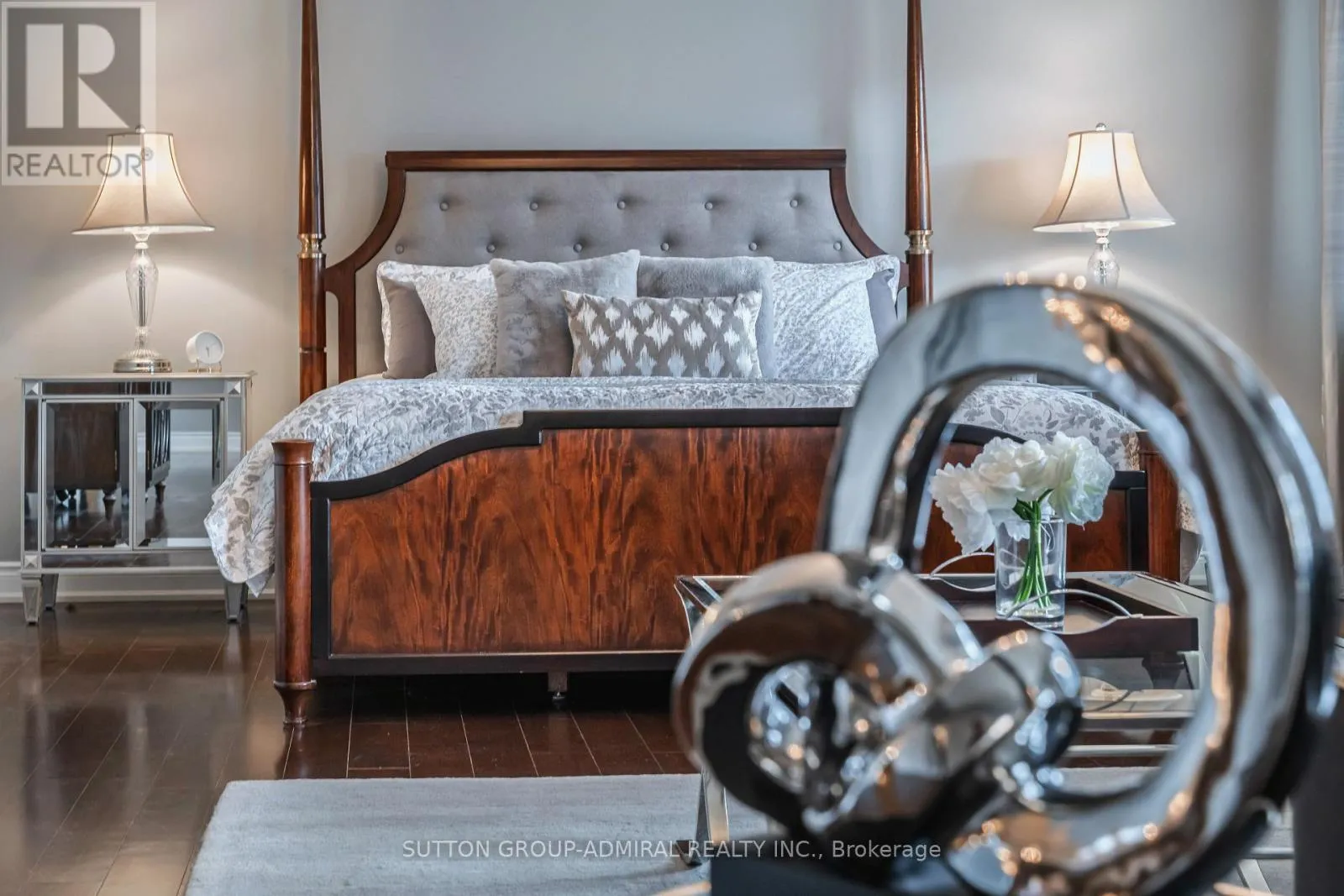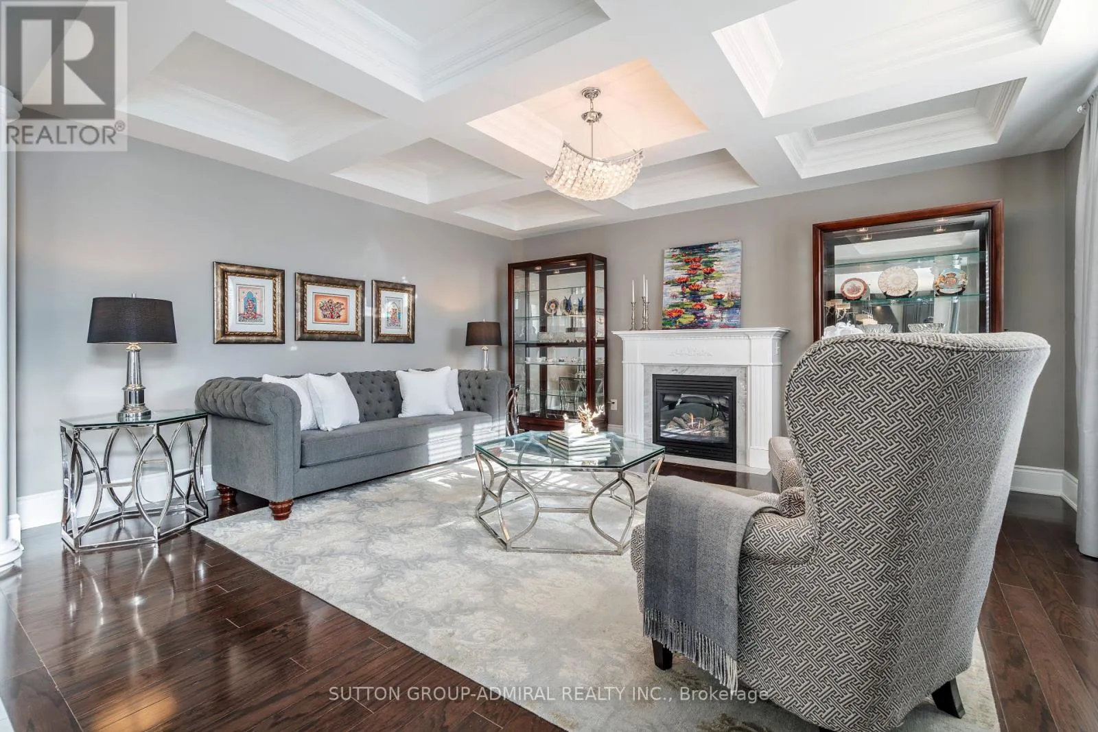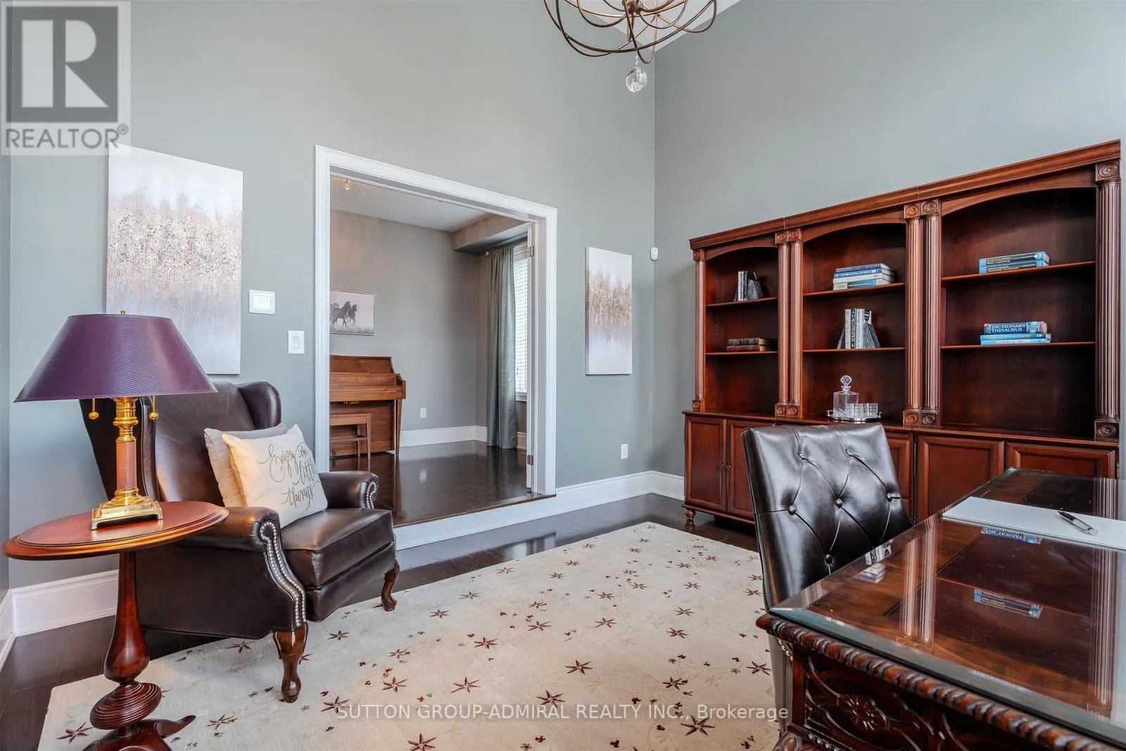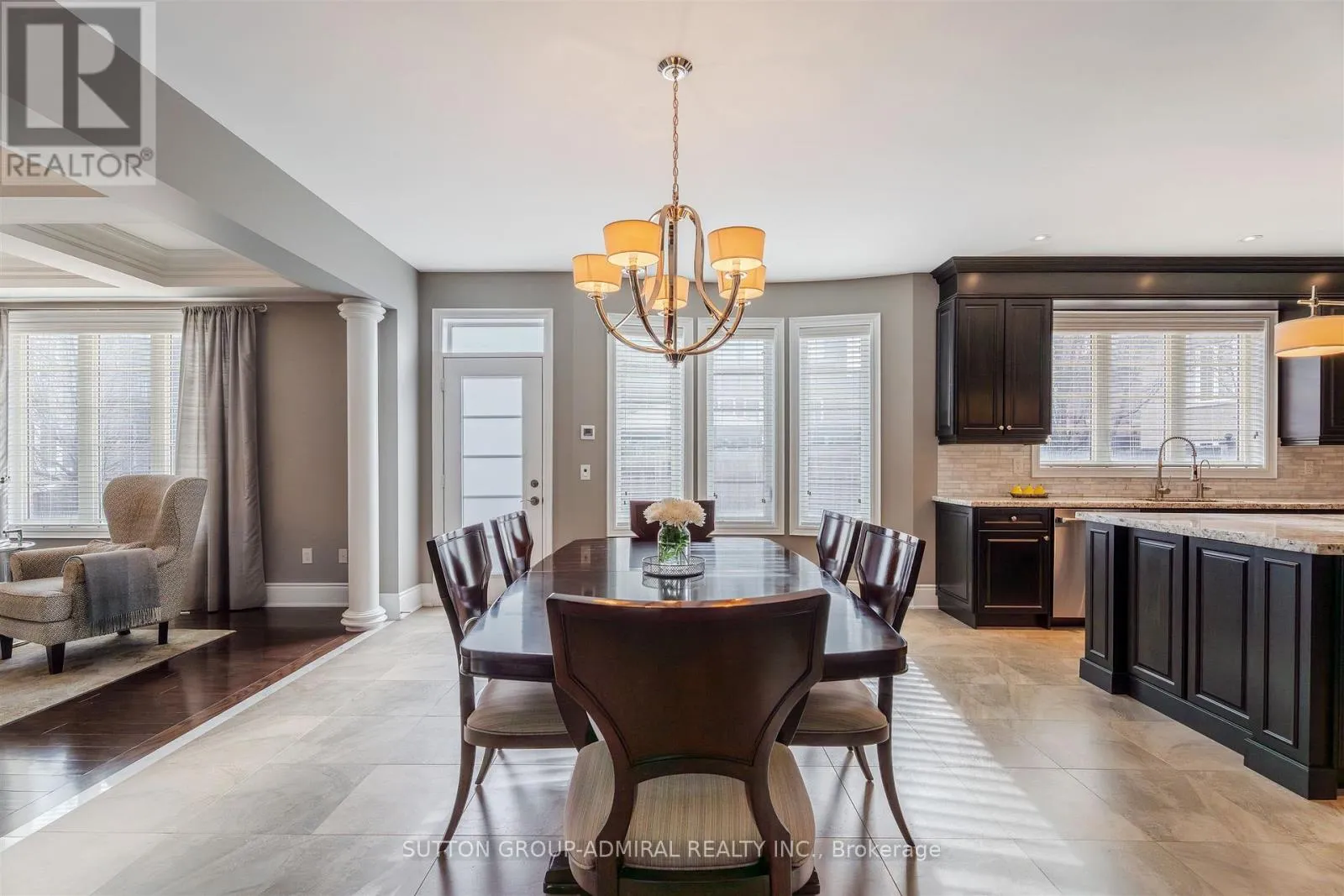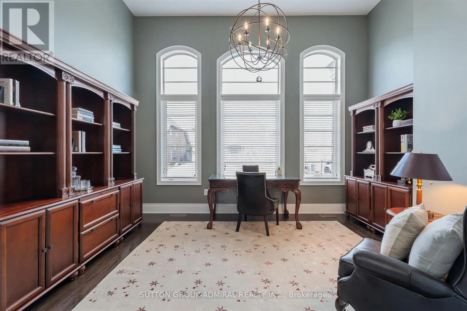 HWY 27/KING RD This executive home is a masterclass in elegance, offering over 4,000 sq. ft. of meticulously maintained living space. Situated on a premium lot on quiet street, the property is a nature lover's dream, bordered by conservation land and walking trails. The striking stone and brick exterior front, a long pavers-landscaped driveway (no sidewalk) for ample parking & a characteristic front porch with an outdoor chandelier creates a lasting first impression. A custom 8' arched door with sidelights welcomes you into a sophisticated floor plan. The main level offers a unique sunken library combined w/ a flexible living space- perfect for a piano room, home office or business waiting area. At the heart of the home is the upgraded Selba kitchen, boasting extended Maple cabinetry, a large centre island, granite counters, & Carrara marble backsplash. A convenient servery with bar fridge & a walk-in pantry connect the kitchen to a quaint formal dining room- the perfect setting for hosting intimate dinner parties. The open concept eating area of the kitchen features 18 x 18 Italian porcelain tiles and walks-out to a fully fenced yard with interlocked patio. Relax in the adjoining open concept design grand family room, highlighted by a tray ceiling & a cozy gas fireplace. For ultimate convenience, the main floor laundry provides direct access to the tandem garage. The upper level is designed for comfort, featuring a massive primary bedroom w/ 9' coffered ceilings, two large his/hers walk-in closets w/ organizers & a luxurious 5pc ensuite w/ a frameless shower. Three additional bedrooms each enjoy ensuite access & plenty of closet space, making this the quintessential home for a growing family. (id:27476)