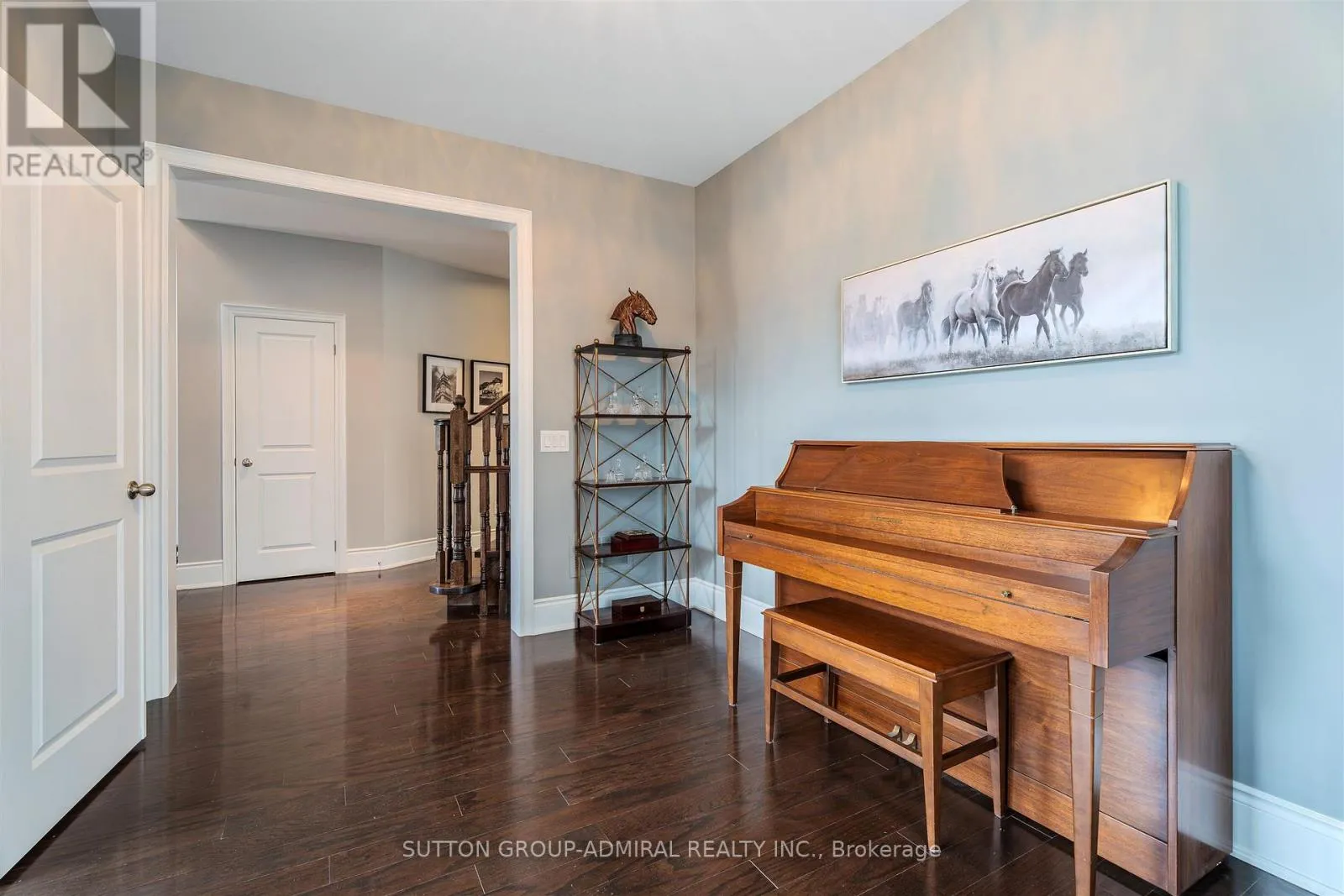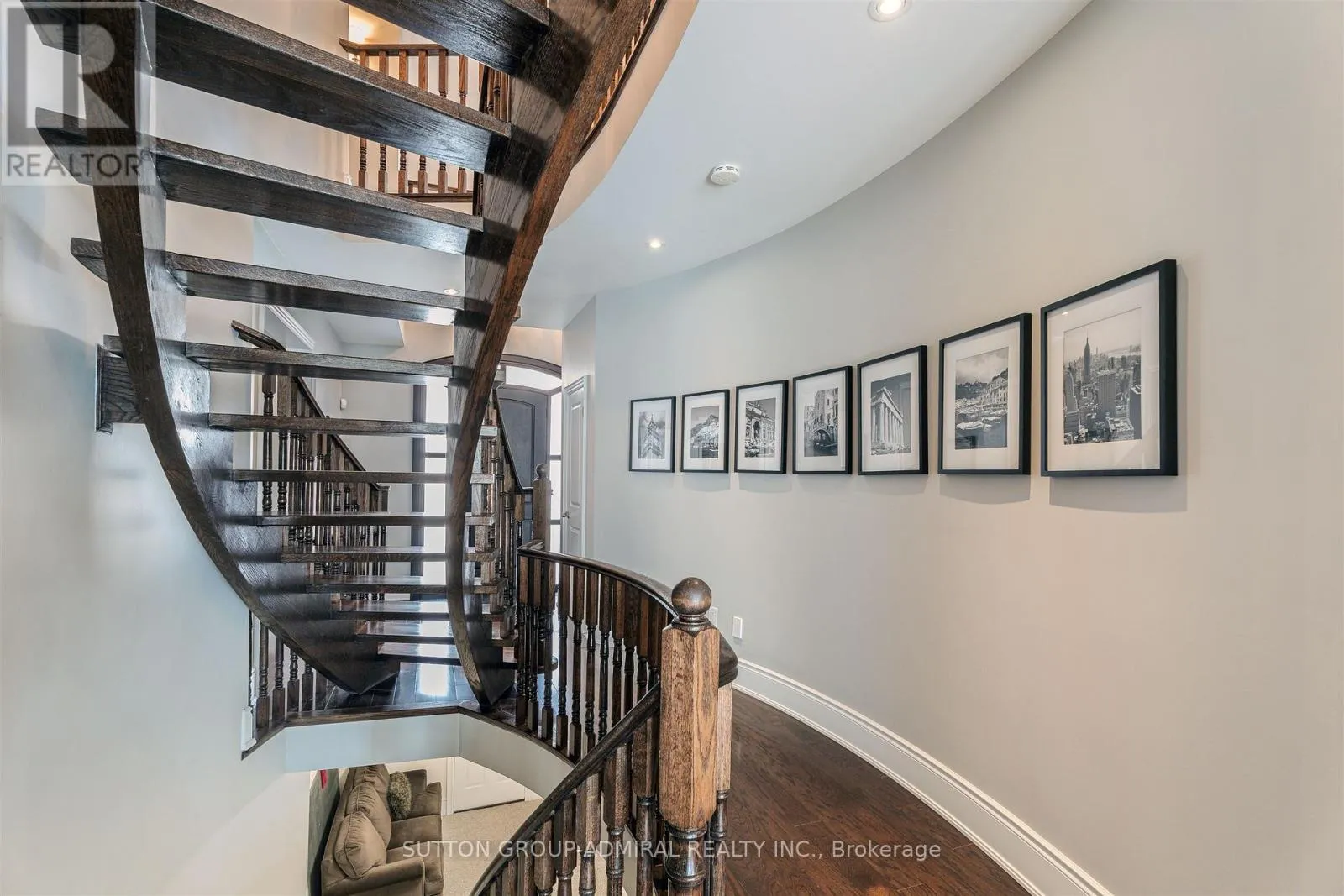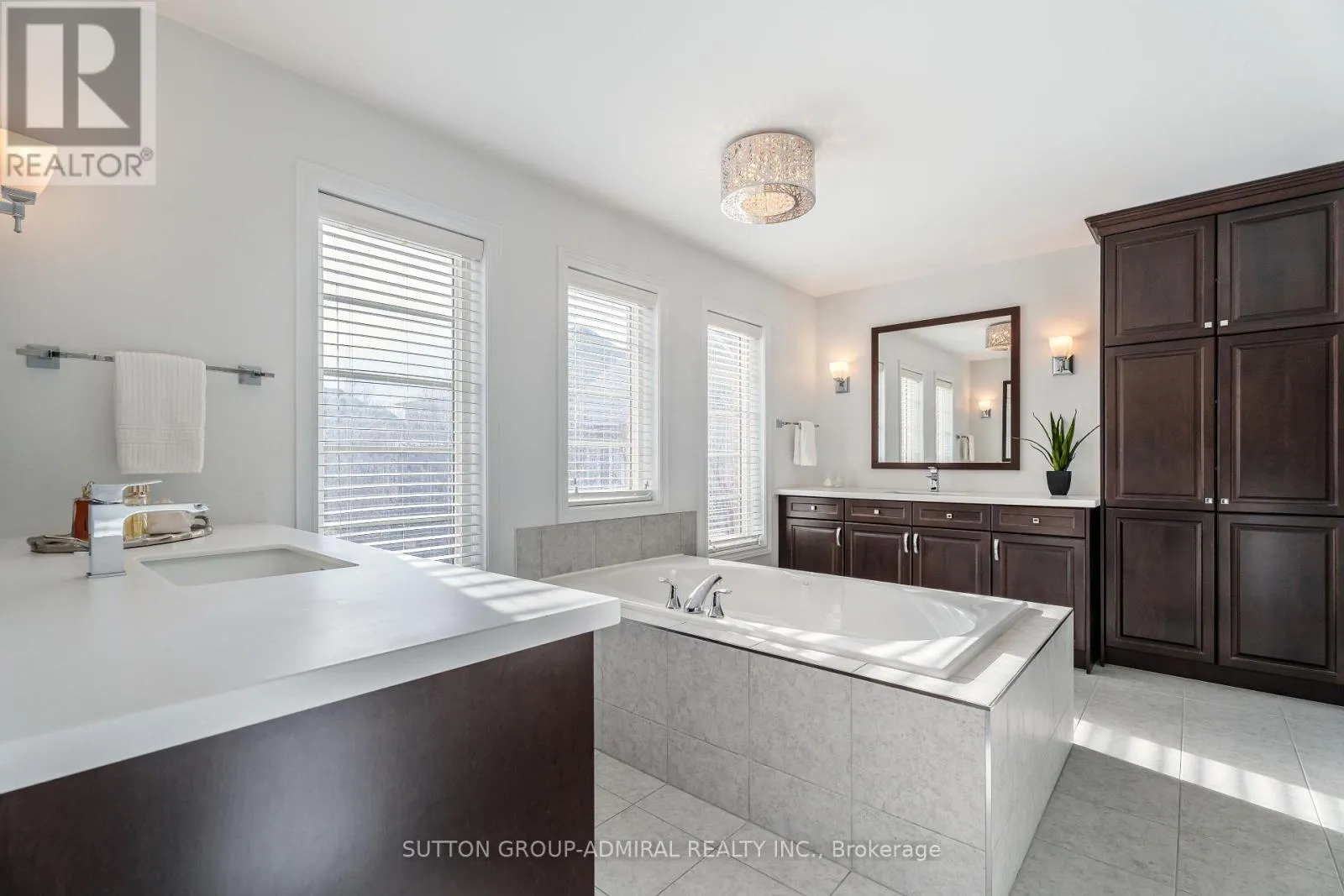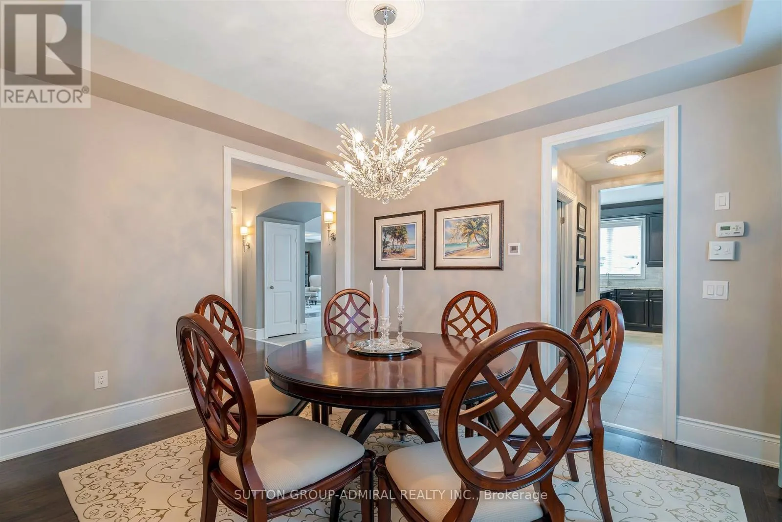 HWY 27/KING RD This executive home is a masterclass in elegance, offering over 4,000 sq. ft. of meticulously maintained living space. Situated on a premium lot on quiet street, the property is a nature lover's dream, bordered by conservation land and walking trails. The striking stone and brick exterior front, a long pavers-landscaped driveway (no sidewalk) for ample parking & a characteristic front porch with an outdoor chandelier creates a lasting first impression. A custom 8' arched door with sidelights welcomes you into a sophisticated floor plan. The main level offers a unique sunken library combined w/ a flexible living space- perfect for a piano room, home office or business waiting area. At the heart of the home is the upgraded Selba kitchen, boasting extended Maple cabinetry, a large centre island, granite counters, & Carrara marble backsplash. A convenient servery with bar fridge & a walk-in pantry connect the kitchen to a quaint formal dining room- the perfect setting for hosting intimate dinner parties. The open concept eating area of the kitchen features 18 x 18 Italian porcelain tiles and walks-out to a fully fenced yard with interlocked patio. Relax in the adjoining open concept design grand family room, highlighted by a tray ceiling & a cozy gas fireplace. For ultimate convenience, the main floor laundry provides direct access to the tandem garage. The upper level is designed for comfort, featuring a massive primary bedroom w/ 9' coffered ceilings, two large his/hers walk-in closets w/ organizers & a luxurious 5pc ensuite w/ a frameless shower. Three additional bedrooms each enjoy ensuite access & plenty of closet space, making this the quintessential home for a growing family. (id:27476)