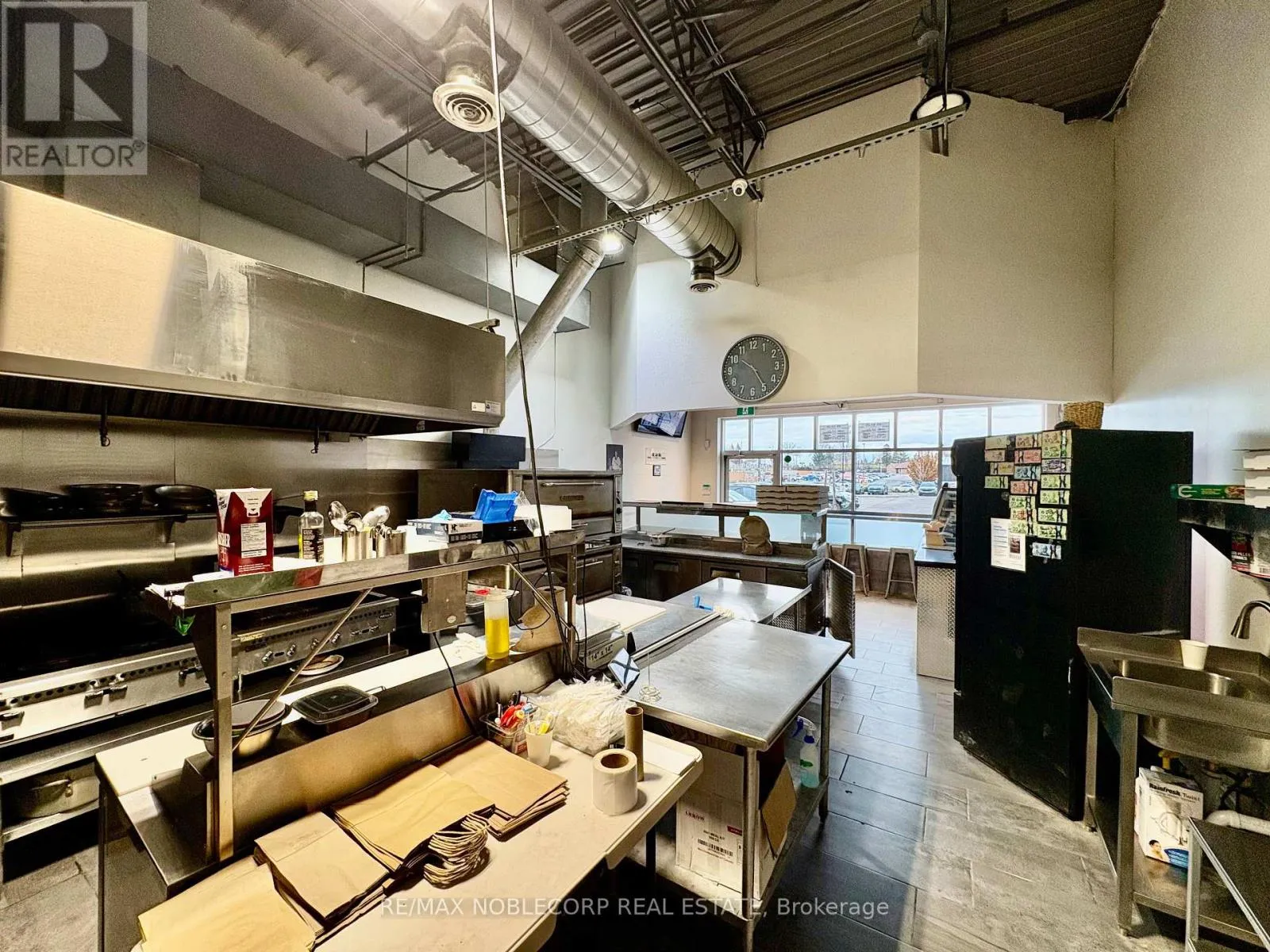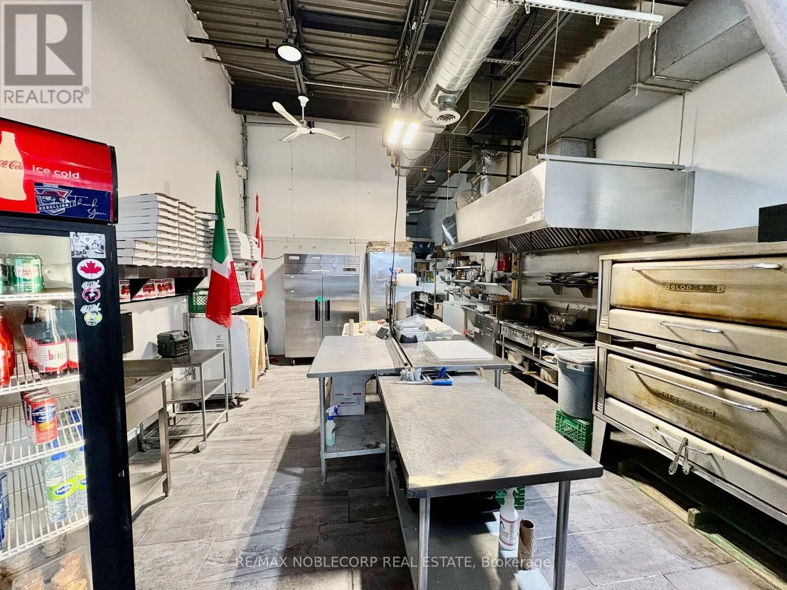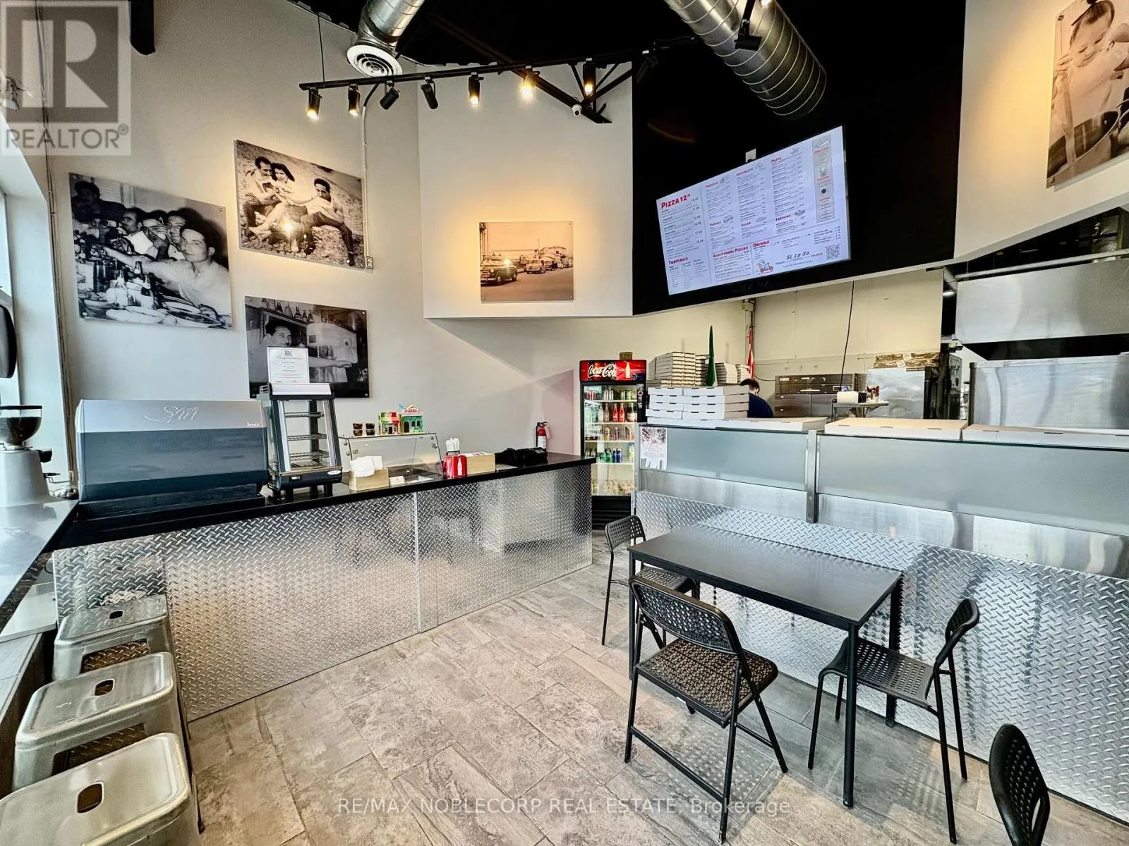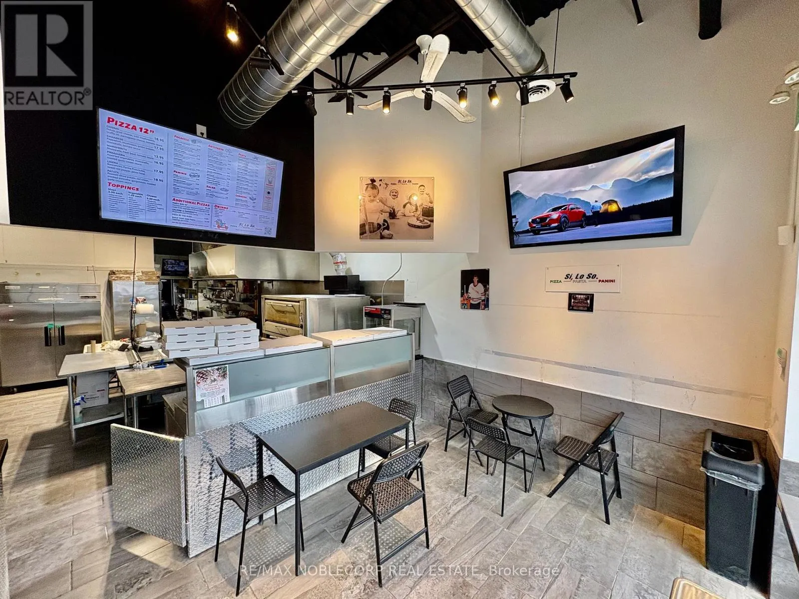 9 & HWY 27 Recently built commercial restaurant unit, presenting a rare opportunity for restaurant operators, franchise groups, and hospitality to own and operate in a high-growth, high-traffic retail corridor. Strategically located within a modern plaza at the prominent intersection of Highway 27 and Highway 9, this property offers exceptional visibility, strong exposure, and consistent customer traffic in a rapidly expanding trade area. Surrounded by major national and regional anchors including LCBO, Tim Hortons, McDonald's, Petro-Canada, and Foodland, the plaza benefits from constant brand-driven traffic and a built-in customer base. The area is further supported by dense and growing residential communities, making it an ideal location for dine-in, take-out, and delivery-focused restaurant concepts. The approximately 1,200 sq. ft. unit is currently operating as an Italian restaurant and take-out component and includes existing commercial kitchen infrastructure, including a hood and exhaust system, significantly reducing startup costs and build-out timelines. The efficient layout allows for easy conversion to other restaurant QSR concept, franchise operation, specialty cuisine, cafe, or ghost kitchen. This turnkey restaurant-ready space offers flexibility for owner-operators and investors seeking immediate operational potential, brand expansion, or long-term brand growth. Ample on-site parking is available for customers and staff. Exceptional opportunity to acquire a high-visibility restaurant in a proven, high-demand location with strong traffic fundamentals and long-term upside.$4700.00 incld TMI/HST, Term in till 2028 with additional extension available w/ landlord approval. (id:27476)