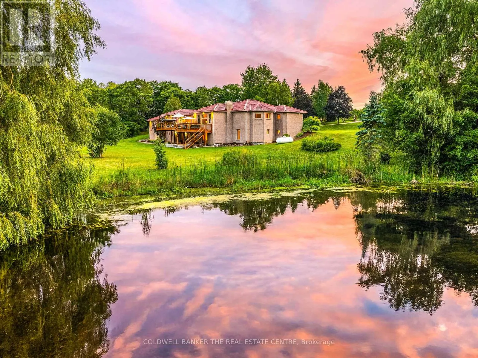 Cross Streets: Jane and King. ** Directions: Jane Street Just North of Downtown King City. Welcome to this spacious and beautifully updated 3+2 bedroom multigenerational opportunity home offering privacy, functionality, and natural serenity just minutes from town. Nestled on a picturesque lot backing onto Humber River Catchment Area and mature forest, this home features a thoughtfully landscaped backyard oasis complete with multi-level decks, a pond, perennial gardens, and fruit trees including apple and cherry. Step into the grand open-concept foyer with ceramic flooring that flows into a front den perfect for a home office with French doors and large windows overlooking the front gardens. The main level boasts freshly stained hardwood floors, pot lights, and fresh paint throughout. The versatile music room/dining room includes a coffered ceiling and rounded windows for a touch of elegance. The chefs kitchen features ceramic floors, centre island with breakfast bar, a large walkthrough pantry, and stainless steel appliances. The breakfast area provides garage access and a walk-out to the expansive deck, overlooking the tranquil backyard. The living room offers a warm and inviting atmosphere, featuring large sun-filled windows, and a classic wood-burning fireplace framed by custom built-in cabinetry perfect for both cozy nights in and elegant entertaining. Its thoughtful layout and timeless finishes provide a comfortable space that seamlessly blends charm and functionality. The primary bedroom impresses with double doors, walk-in closet, and 4-piece ensuite, while secondary bedrooms offer large closets, beautiful garden views and ample natural light. The newly renovated basement features new concrete flooring throughout, pot lights, 3-piece roughed-in kitchen & washroom, laundry room, and two separate entrances ideal for in-laws, rental potential, or extended family use. The basement is ready for your personal touch. Only 5 minutes to King Village, schools, shopping, and restaurants, this home combines true country charmwith urban convenience. (id:27476)