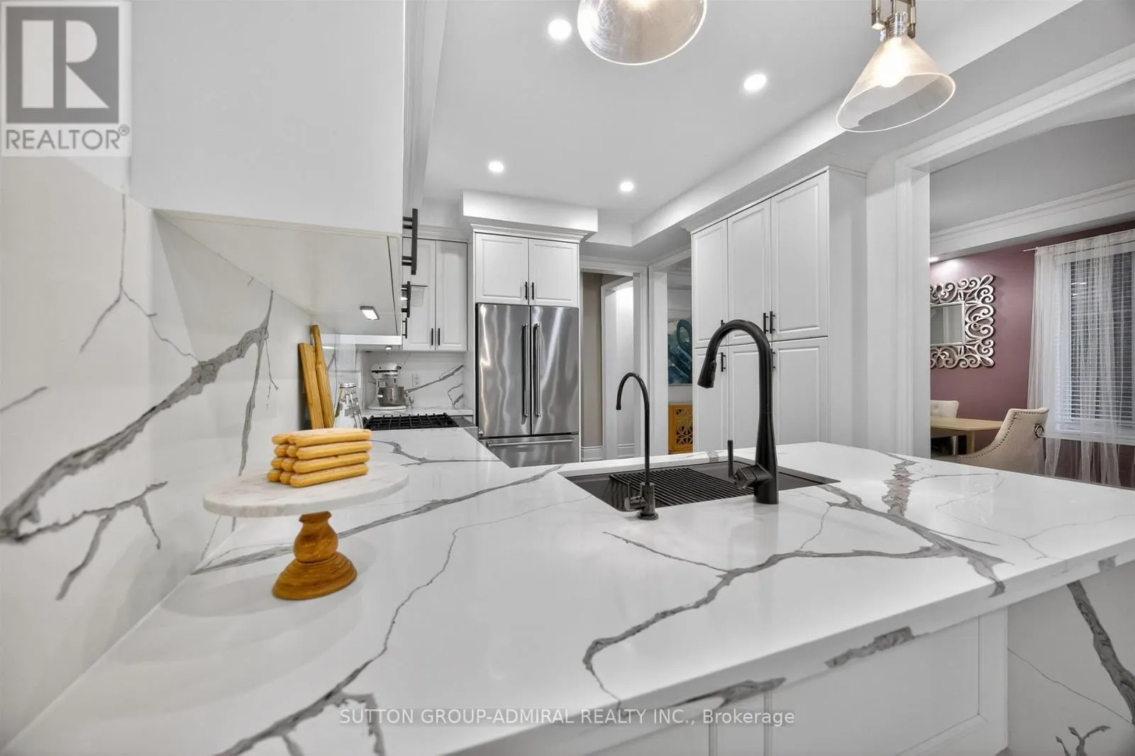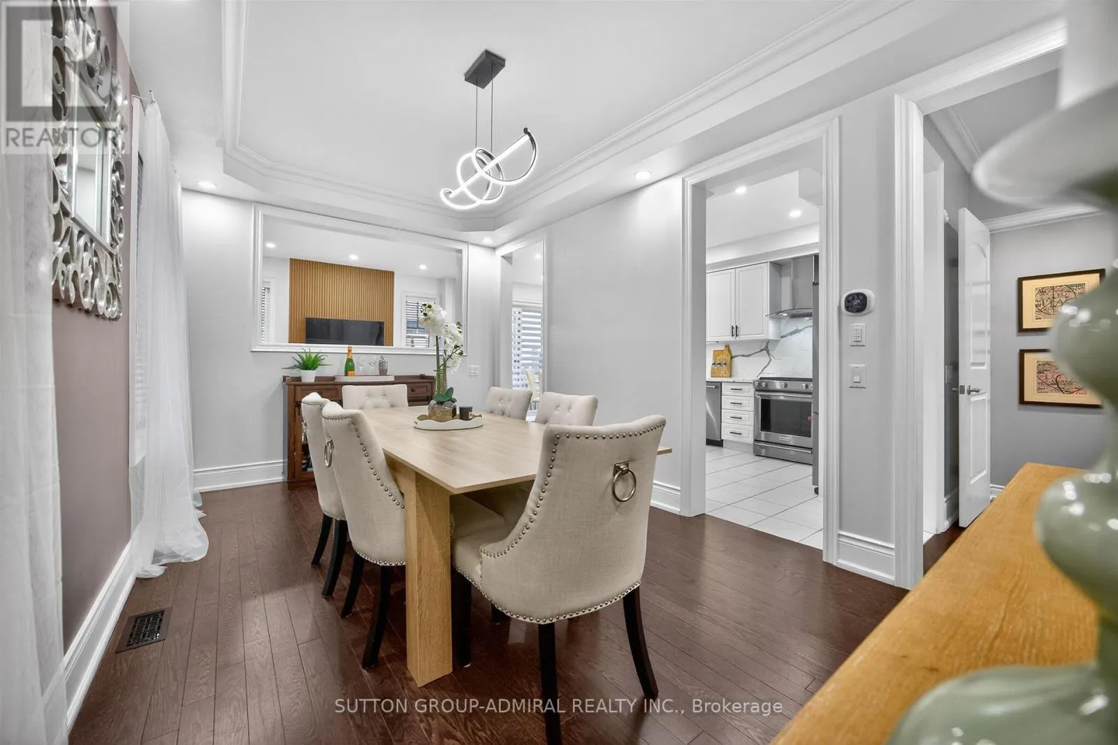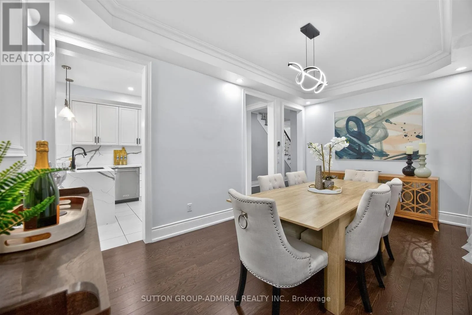 HWY 27/KING RD An incredible opportunity to own the lowest-priced home in sought-after King Country Estates! This beautifully maintained luxury link townhome offers a rare combination of space, style & functionality- complete with a double car garage and private double driveway (no sidewalk), providing ample parking. Ideally located across from open space and scenic walking trails, you'll enjoy nature right at your door step. Step inside to a turnkey home featuring a recently fully finished basement with a spacious recreation room & a convenient 2-piece bathroom- perfect for entertaining or relaxing. The main floor boasts a thoughtfully designed layout with a formal dining room with hardwood floors & elegant finishes, a main floor laundry room with direct garage access, a bright open-concept family room with a cozy electric fireplace and stylish feature wall. The modern kitchen is a showstopper complete with quartz countertops with a waterfall edge, matching backsplash, stainless steel appliances & eat-in area with walk-out to a fully fenced and landscaped backyard with patio. Upstairs, you will find 4 spacious bedrooms and 3 bathrooms, including a luxurious primary suite with a renovated 5-piece ensuite featuring a soaker tub, double-sink vanity & a walk-in closet with custom organizers, plus an extra double closet. Two bedrooms share a semi-ensuite and a fourth bedroom has its own private 4-piece ensuite & walk-in closet. This home offers exceptional value, modern upgrades and an unbeatable location- perfect for families looking to settle in a vibrant, nature-filled community. (id:27476)