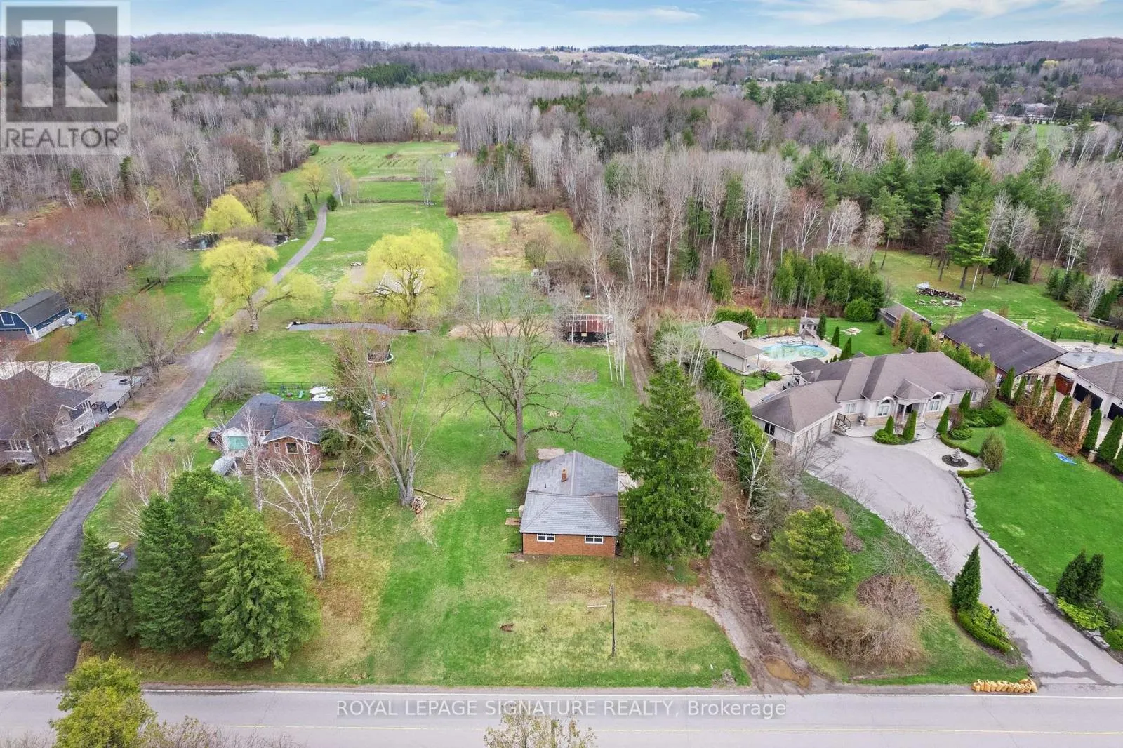 Llyodtown-Aurora Rd / 7th Concession Solid all-brick bungalow situated on a picturesque 5+ acres lot on a quiet country road, backing onto protected conservation land for ultimate privacy and natural views. The home offers 3 bedrooms, a full four-piece bath, and an unfinished basement with a rough-in for an additional full bathroom. Serviced by an artisan well, septic system, natural gas, and hydro. Surrounded by million-dollar homes, this property presents an exceptional opportunity to renovate, expand, or build your custom dream home in a prestigious rural setting. Conveniently located just 20minutes from Woodbridge, combining peaceful country living with easy access to city amenities. Pictures are virtually staged. (id:27476)