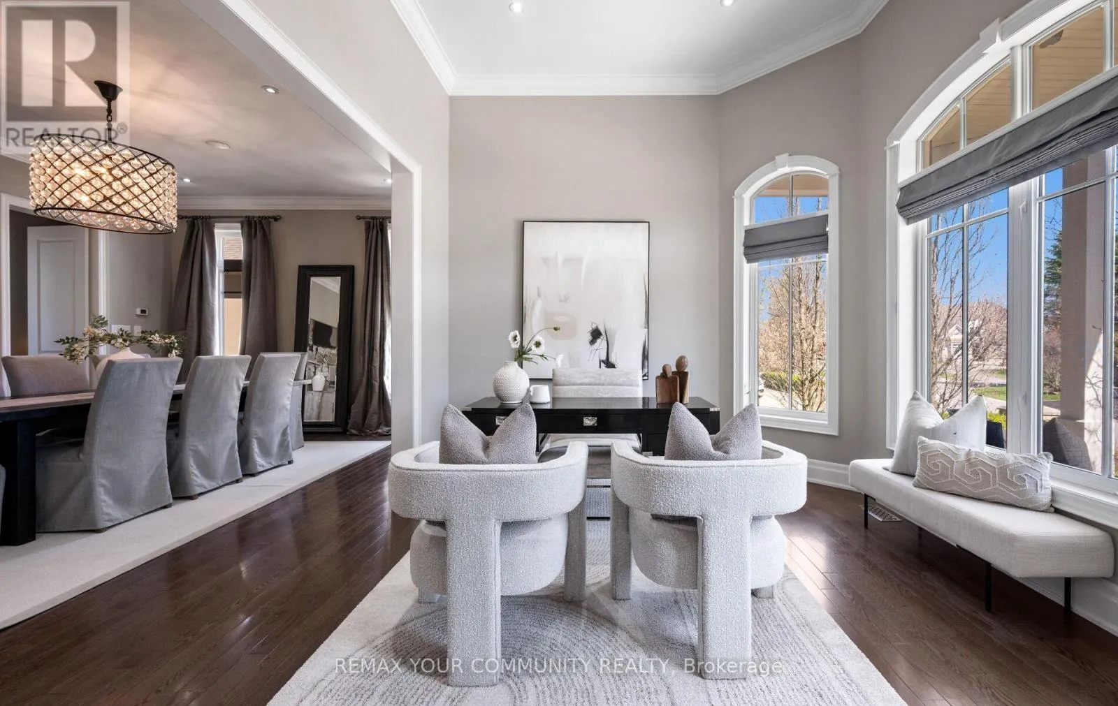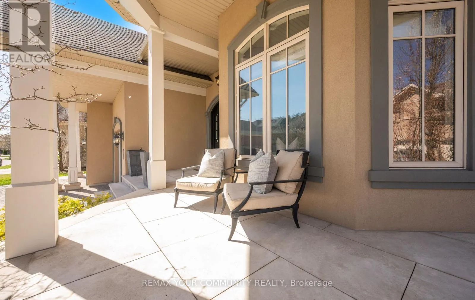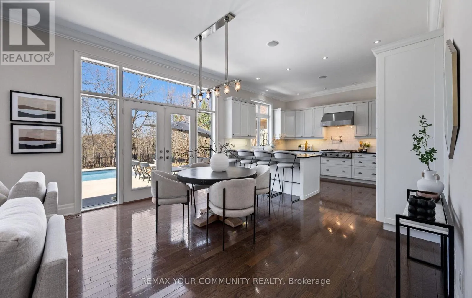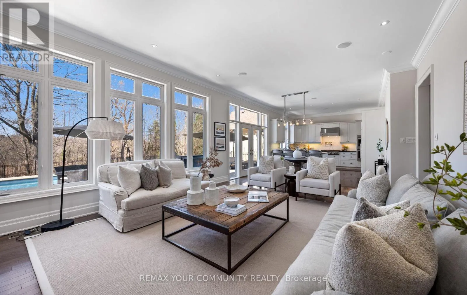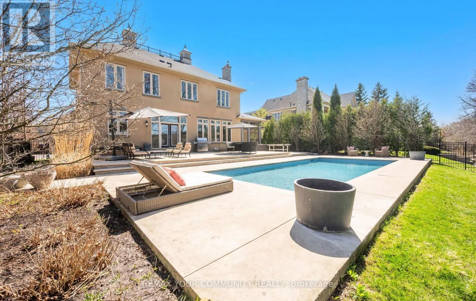 Cross Streets: DUFFERIN & WELLINGTON. ** Directions: DUFFERIN TO KING VALLEY DRIVE. Welcome to King Valley Estates - an exclusive gated enclave adjacent to the prestigious King Valley Golf & Country Club. Situated on a premium 180 ft deep lot, this executive residence offers a private, resort-inspired sanctuary backing onto forested property & Oak Ridges Moraine. The backyard oasis is a masterpiece of outdoor living, boasting a modern linear pool, separate hot tub & an expansive two-tier entertainer's patio. A screened in Muskoka room anchored by a floor-to-ceiling stone fireplace provides the perfect transition for year-round indoor-outdoor enjoyment. Beginning with a covered front porch, once inside the home unfolds with sophisticated, light-filled spaces including 10 ft ceilings, hardwood floors throughout & a gorgeous formal dining rm with built in cabinetry flanking the entry. Open concept family rm complete with custom built-in cabinetry, gas fireplace & a wall of windows framing views of the pool & lush greenery. The kitchen provides a classic culinary space featuring a large breakfast rm, high end integrated appliances & a Butler's pantry thoughtfully equipped with additional fridge/freezer drawers for seamless hosting & a large walk in pantry. The 2nd level features 4 spacious bdrms, each with ensuite baths and 3 walk-in closets. The finished lower level expands the living space with a recreation rm, dedicated exercise rm & a private guest suite or office/hobby rm with walk in closet & 4-piece bath. The mudroom provides direct entry to the 3 car tandem garage. Residents enjoy amenities at the community clubhouse including a private outdoor pool, fitness centre & tennis courts. Experience indoor/outdoor dining at the King Valley Clubhouse with breathtaking views overlooking the fairways of one of Ontario's most renowned golf courses. (id:27476)