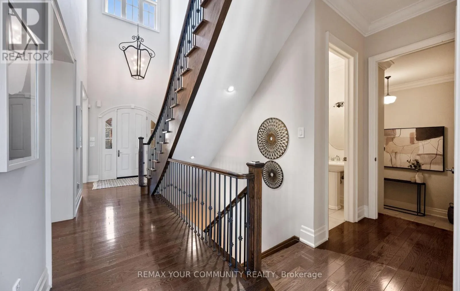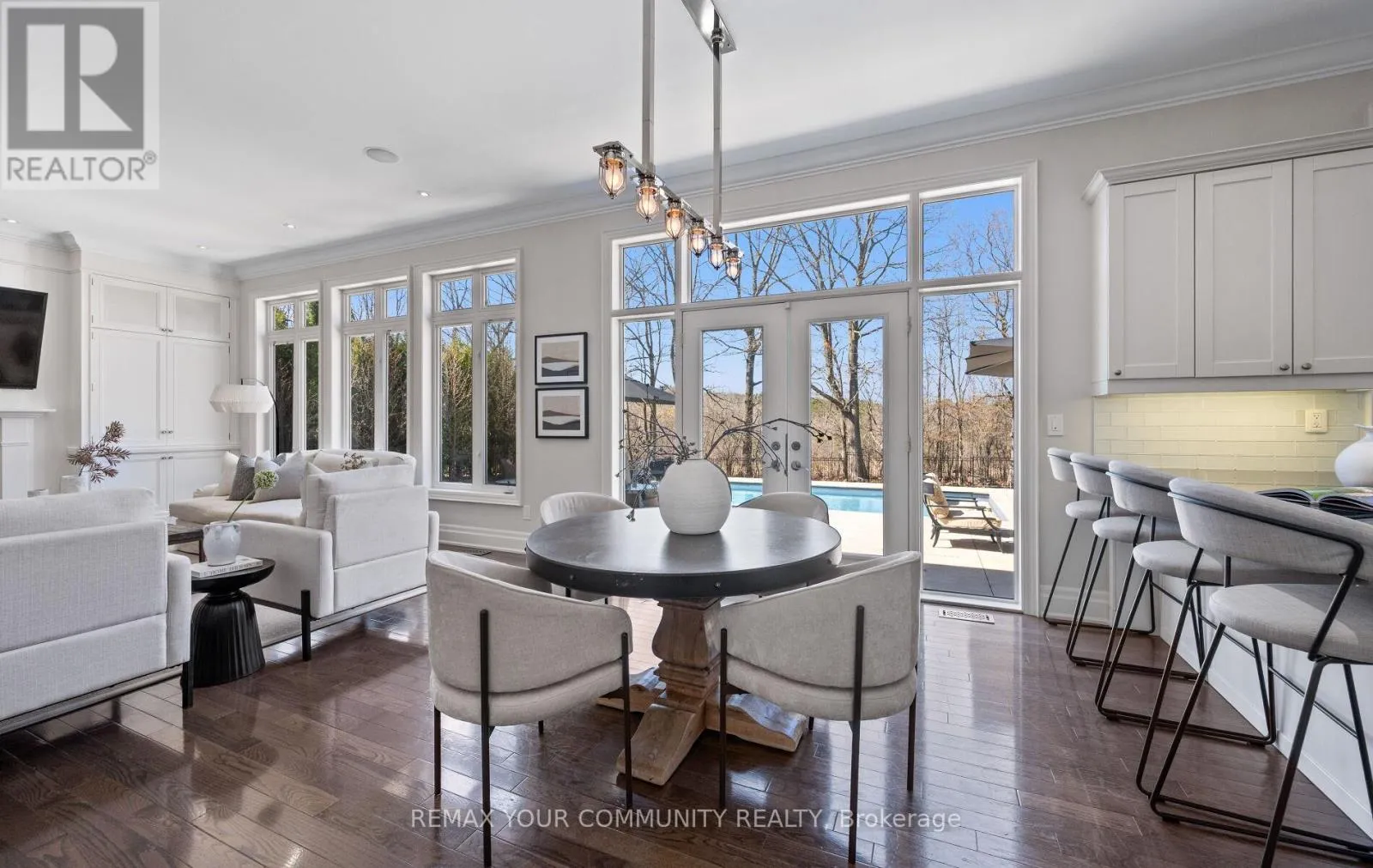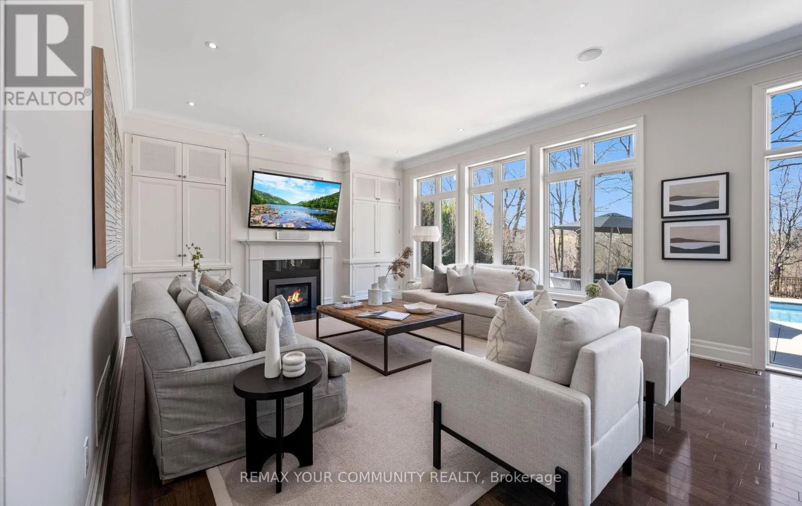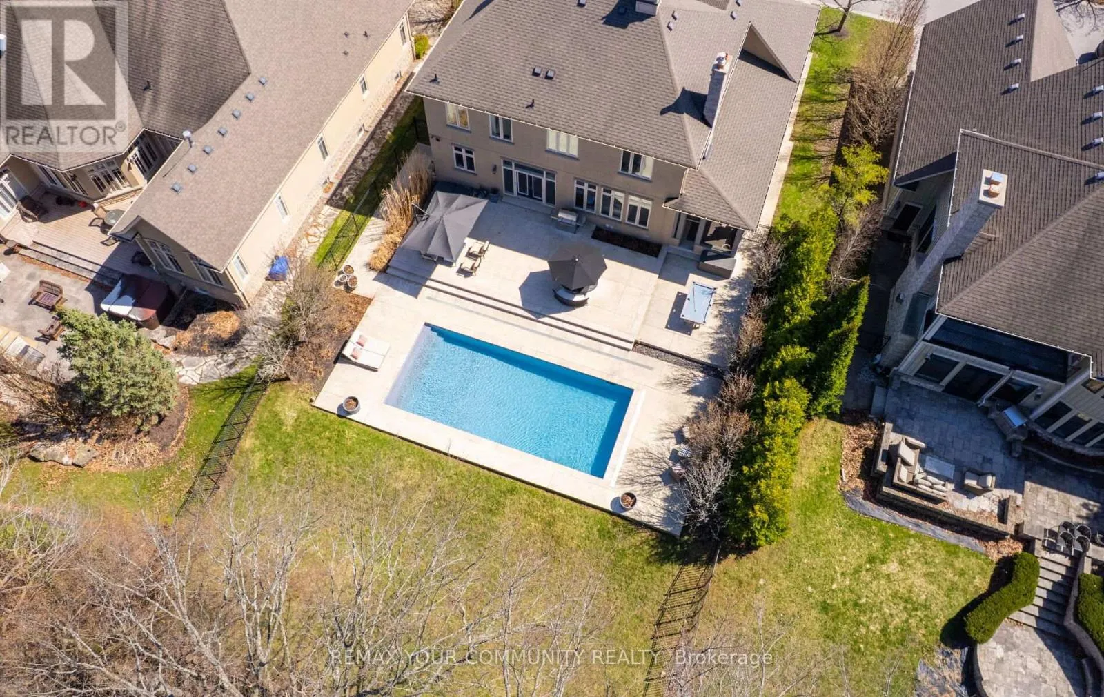 Cross Streets: DUFFERIN & WELLINGTON. ** Directions: DUFFERIN TO KING VALLEY DRIVE. Welcome to King Valley Estates - an exclusive gated enclave adjacent to the prestigious King Valley Golf & Country Club. Situated on a premium 180 ft deep lot, this executive residence offers a private, resort-inspired sanctuary backing onto forested property & Oak Ridges Moraine. The backyard oasis is a masterpiece of outdoor living, boasting a modern linear pool, separate hot tub & an expansive two-tier entertainer's patio. A screened in Muskoka room anchored by a floor-to-ceiling stone fireplace provides the perfect transition for year-round indoor-outdoor enjoyment. Beginning with a covered front porch, once inside the home unfolds with sophisticated, light-filled spaces including 10 ft ceilings, hardwood floors throughout & a gorgeous formal dining rm with built in cabinetry flanking the entry. Open concept family rm complete with custom built-in cabinetry, gas fireplace & a wall of windows framing views of the pool & lush greenery. The kitchen provides a classic culinary space featuring a large breakfast rm, high end integrated appliances & a Butler's pantry thoughtfully equipped with additional fridge/freezer drawers for seamless hosting & a large walk in pantry. The 2nd level features 4 spacious bdrms, each with ensuite baths and 3 walk-in closets. The finished lower level expands the living space with a recreation rm, dedicated exercise rm & a private guest suite or office/hobby rm with walk in closet & 4-piece bath. The mudroom provides direct entry to the 3 car tandem garage. Residents enjoy amenities at the community clubhouse including a private outdoor pool, fitness centre & tennis courts. Experience indoor/outdoor dining at the King Valley Clubhouse with breathtaking views overlooking the fairways of one of Ontario's most renowned golf courses. (id:27476)