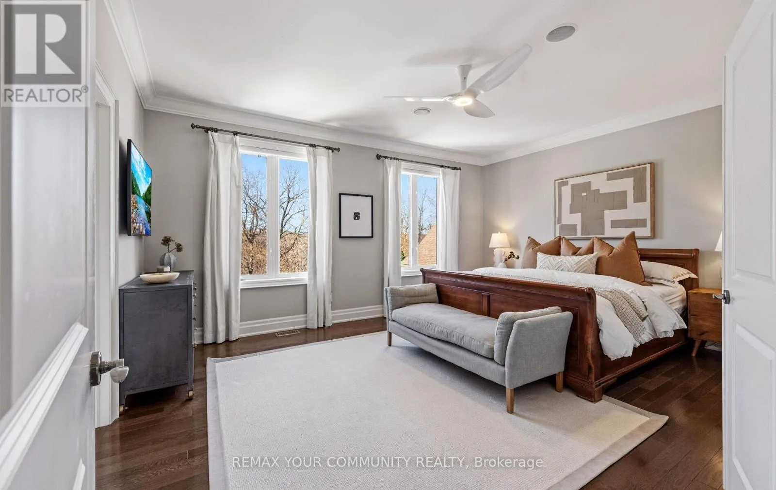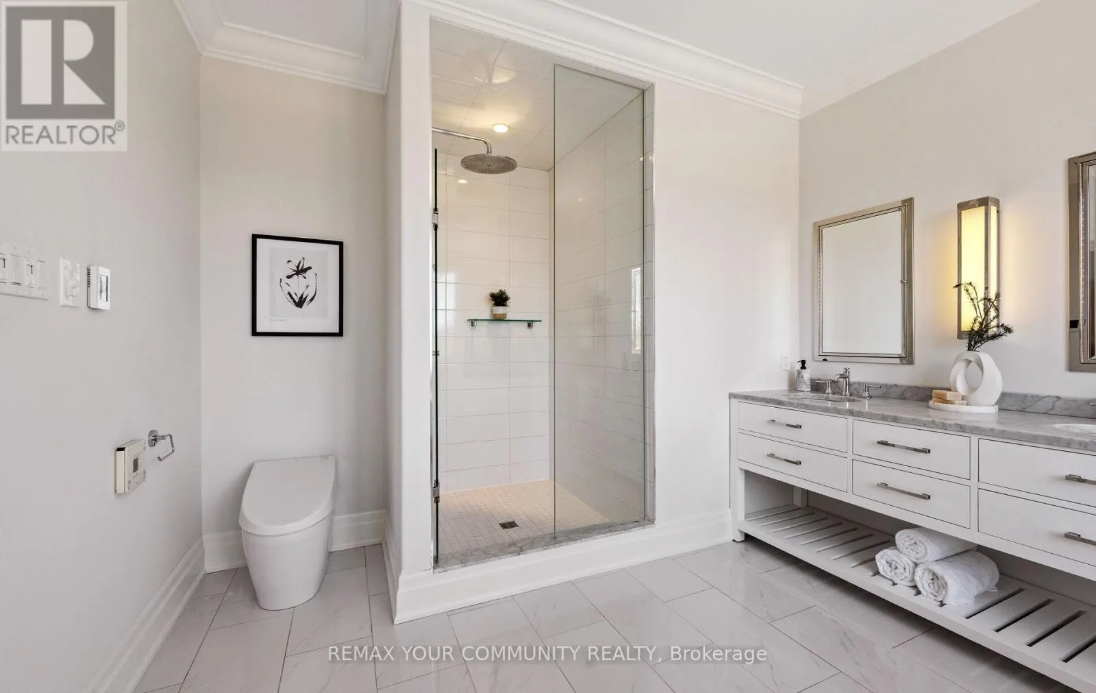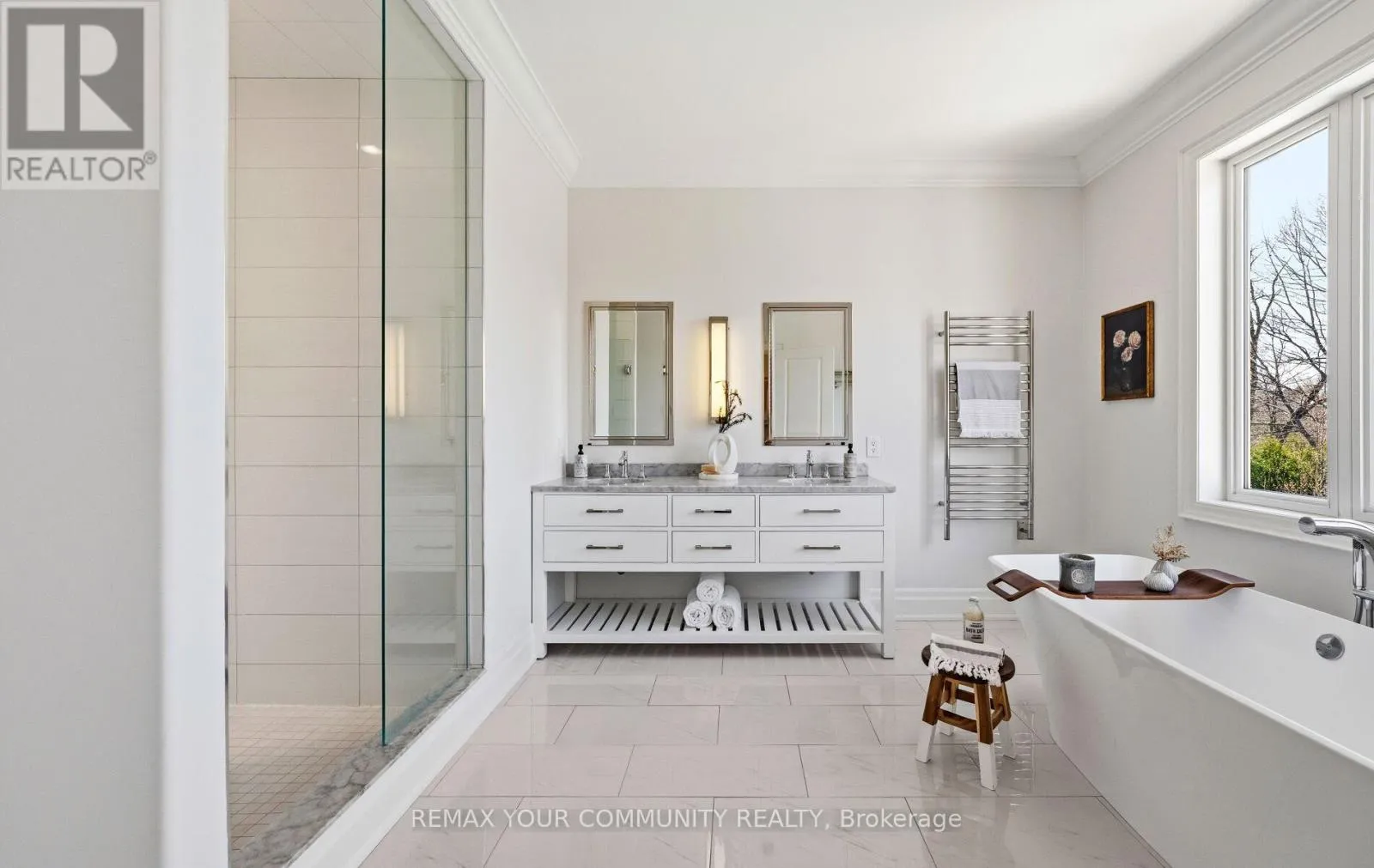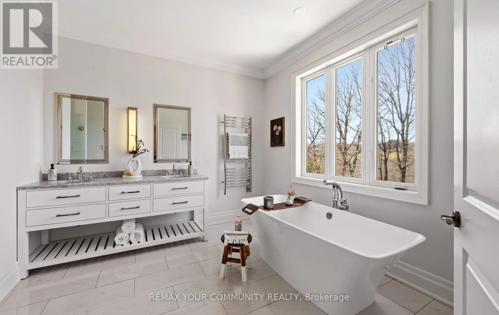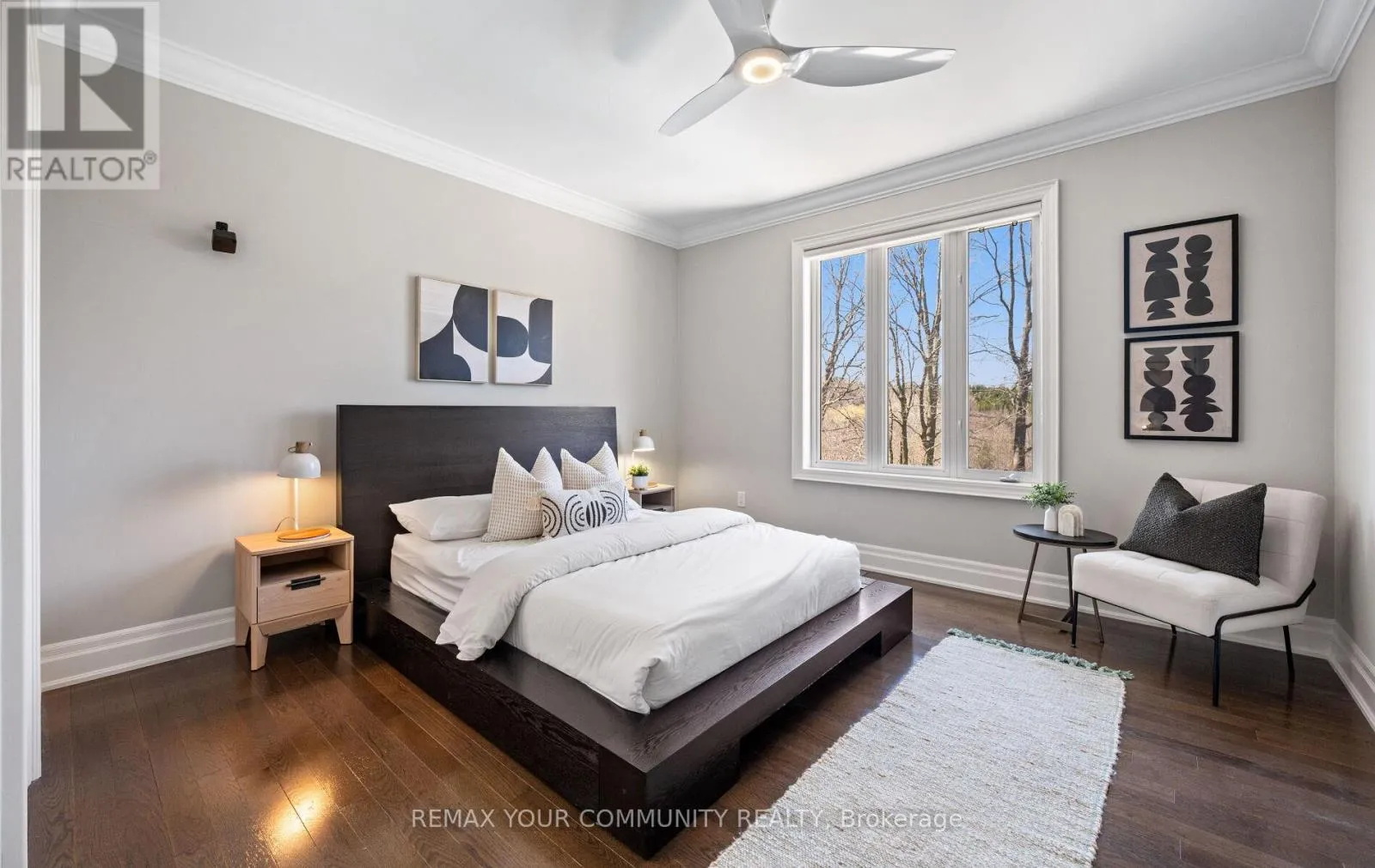Cross Streets: DUFFERIN & WELLINGTON. ** Directions: DUFFERIN TO KING VALLEY DRIVE. Welcome to King Valley Estates - an exclusive gated enclave adjacent to the prestigious King Valley Golf & Country Club. Situated on a premium 180 ft deep lot, this executive residence offers a private, resort-inspired sanctuary backing onto forested property & Oak Ridges Moraine. The backyard oasis is a masterpiece of outdoor living, boasting a modern linear pool, separate hot tub & an expansive two-tier entertainer's patio. A screened in Muskoka room anchored by a floor-to-ceiling stone fireplace provides the perfect transition for year-round indoor-outdoor enjoyment. Beginning with a covered front porch, once inside the home unfolds with sophisticated, light-filled spaces including 10 ft ceilings, hardwood floors throughout & a gorgeous formal dining rm with built in cabinetry flanking the entry. Open concept family rm complete with custom built-in cabinetry, gas fireplace & a wall of windows framing views of the pool & lush greenery. The kitchen provides a classic culinary space featuring a large breakfast rm, high end integrated appliances & a Butler's pantry thoughtfully equipped with additional fridge/freezer drawers for seamless hosting & a large walk in pantry. The 2nd level features 4 spacious bdrms, each with ensuite baths and 3 walk-in closets. The finished lower level expands the living space with a recreation rm, dedicated exercise rm & a private guest suite or office/hobby rm with walk in closet & 4-piece bath. The mudroom provides direct entry to the 3 car tandem garage. Residents enjoy amenities at the community clubhouse including a private outdoor pool, fitness centre & tennis courts. Experience indoor/outdoor dining at the King Valley Clubhouse with breathtaking views overlooking the fairways of one of Ontario's most renowned golf courses. (id:27476)