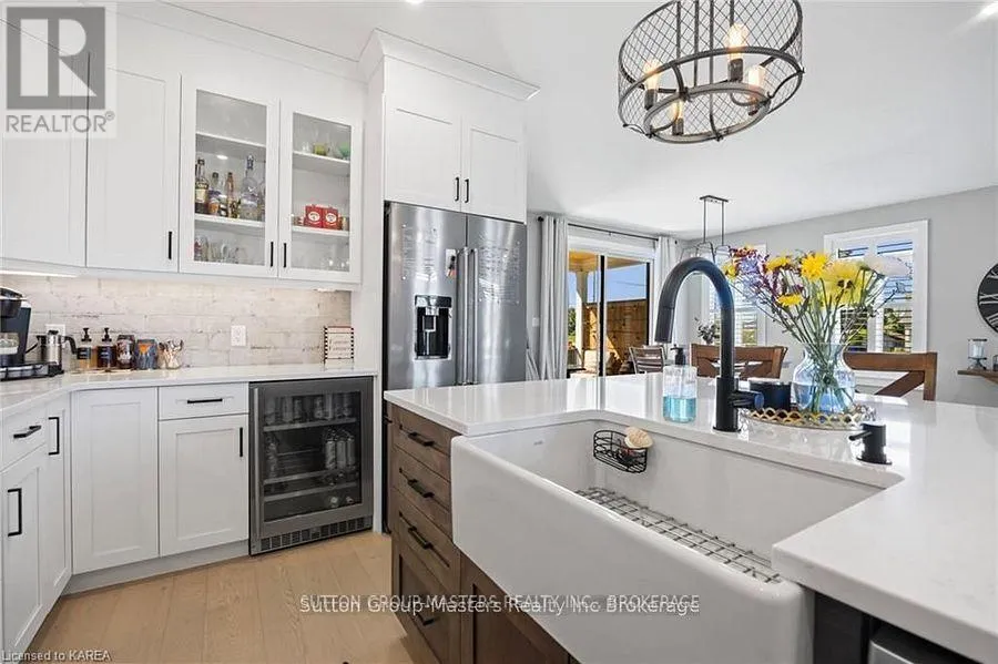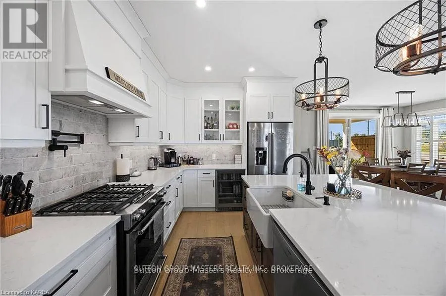 Sydenham Rd to Arnold St Dont miss this opportunity to own this incredible, one-year-old custom-built home located on an extra-large city lot. This 100 x 189 city lot is truly one of a kind. Enjoy all the amenities of city living with the space and privacy of a country lot. With the west end of the city, KP trail and 401 access just seconds away! The rear yard of this property is perfect for those seeking to install a backyard oasis. The home boasts an extra large and tall triple car garage perfect for the car/hobby enthusiast. The home includes many upgrades including a fully paved driveway with enough parking for up to 10 vehicles, a poured concrete walkway and garden. A12x16 rear shed. Mostly fenced. Covered front porch. Upgraded fiberglass 8 front door. Engineered, white oak flooring throughout the main floor, with luxury tiled showers/ baths in both main floor bathrooms. Spacious open concept great room, kitchen, and dining area with a cozy gas fireplace, large windows with custom shutters, and an 8x8 patio door that fills this space with natural sunlight. Gourmet kitchen with separate pantry and an extra-large island makes this home perfect for entertaining. High end appliances complete with a beverage centre. There is a second covered rear porch off the dining area that could be easily upgraded to a screened in room. The master suite is extra-large with a private 4-piece bath and walk-in closet. 2 good sized spare rooms. A 2nd main floor 3 pc bath. 9 ceilings with 8 interior doors with upgraded trims. A larger set of hardwood stairs takes you to the unfinished basement space just waiting for your creativity. The fully finished 2-piece basement bathroom is roughed in for a future shower. Separate laundry area and a separate area for storage. Develop the basement and enjoy over 3400 sqft of living space. Don't miss your chance to make this beautiful home your own! (id:27476)