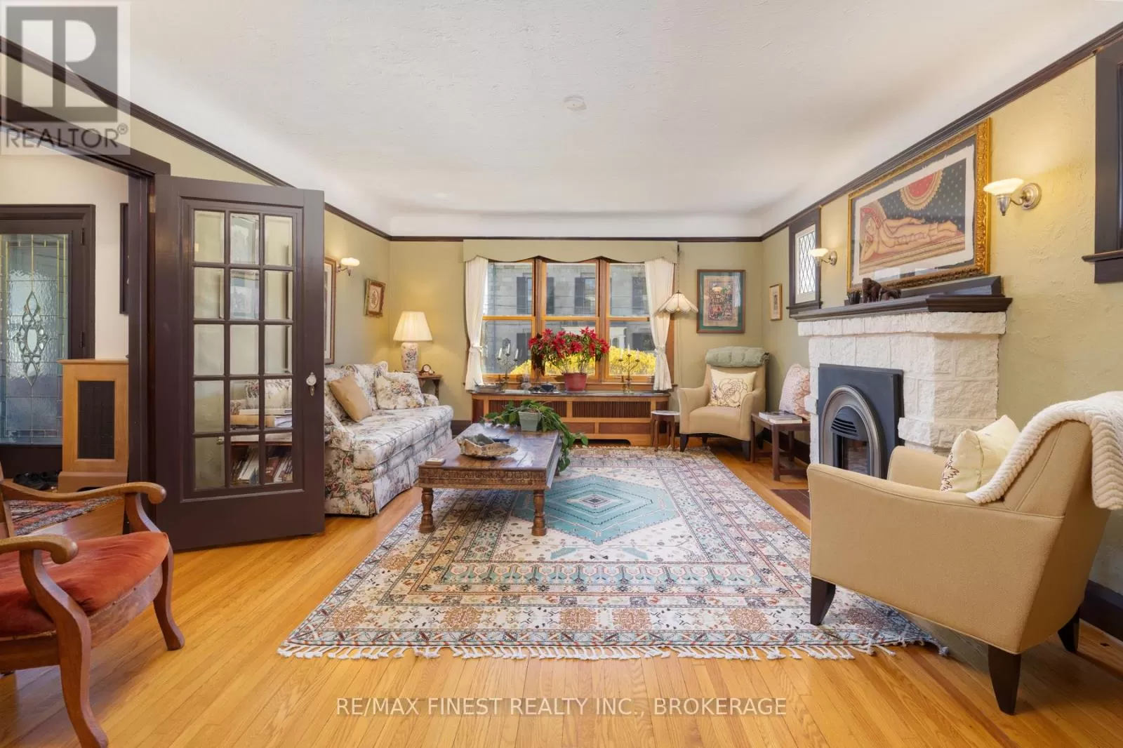 Cross Streets: King and Gore. ** Directions: King St E to 180. Stunning Family Home in the Heart of Sydenham Ward. This charming home, built in 1934, offers over 3,000 square feet of living space and is perfectly located within walking distance of downtown, City Park, the hospitals, live theatre, and the waterfront. Enjoy the convenience of city living, or unwind in the privacy of your own 20x19 composite deck, surrounded by privacy fencing. The main floor welcomes you with a spacious foyer that leads to generously sized principal rooms, including a cozy living room with a gas fireplace. The kitchen features heated tiled floors, adding an extra touch of comfort. A beautiful family room with large windows overlooking Gore Street provides plenty of natural light, and a convenient two-piece bath completes the main level. Upstairs, you'll find three bedrooms and a den. The second-floor bathroom is equipped with heated floors for added luxury. The principal bedroom, located on the third floor, is a true retreat, complete with its own ensuite bath for ultimate privacy. The fully finished basement offers additional living space, including a rec room, laundry area, and another two-piece bath. With a double detached garage and a stamped concrete driveway, this home blends historic charm with modern amenities, offering a truly unique property in one of the most desirable locations. Currently a family home but easy conversion to high end student home with 7/8+ bedrooms. (id:27476)