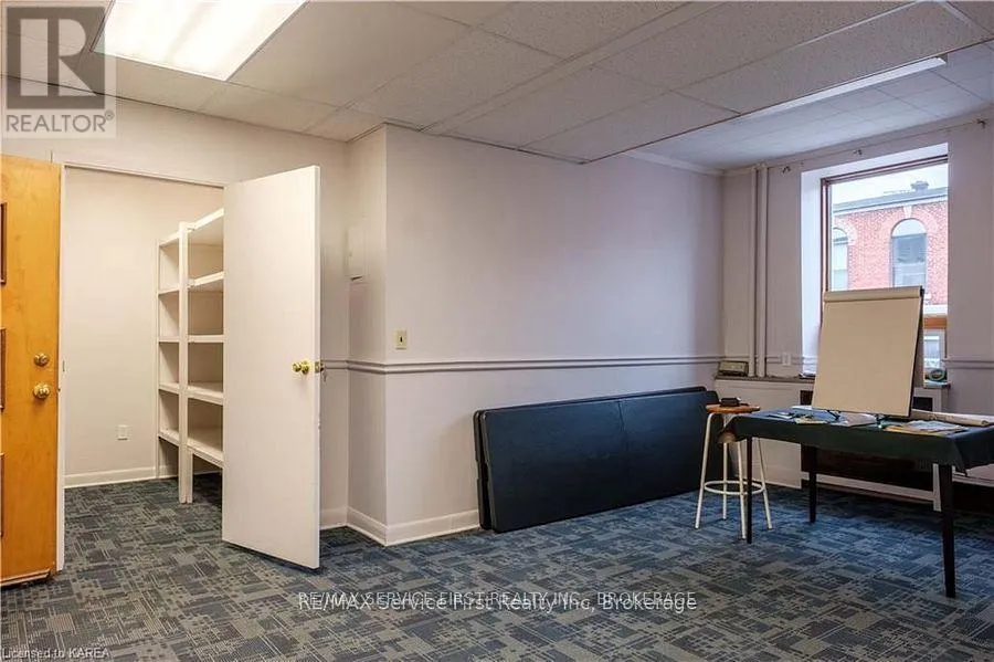 Brock Street at Wellington Street Prime, affordable downtown Kingston office space situated in a wonderful downtown historic building. Well positioned within walking distance to all amenities, this second floor space is ideal for any professional service wanting a foothold in the thriving downtown core. Great window space and layout allows for reception and private offices. With all the new high density construction projects now being built and planned for the downtown, this will make an ideal spot for any business. The rent is inclusive of all costs except hydro. Opportunity to combine the adjacent office space to have approx. 1400 sq ft. (id:27476)