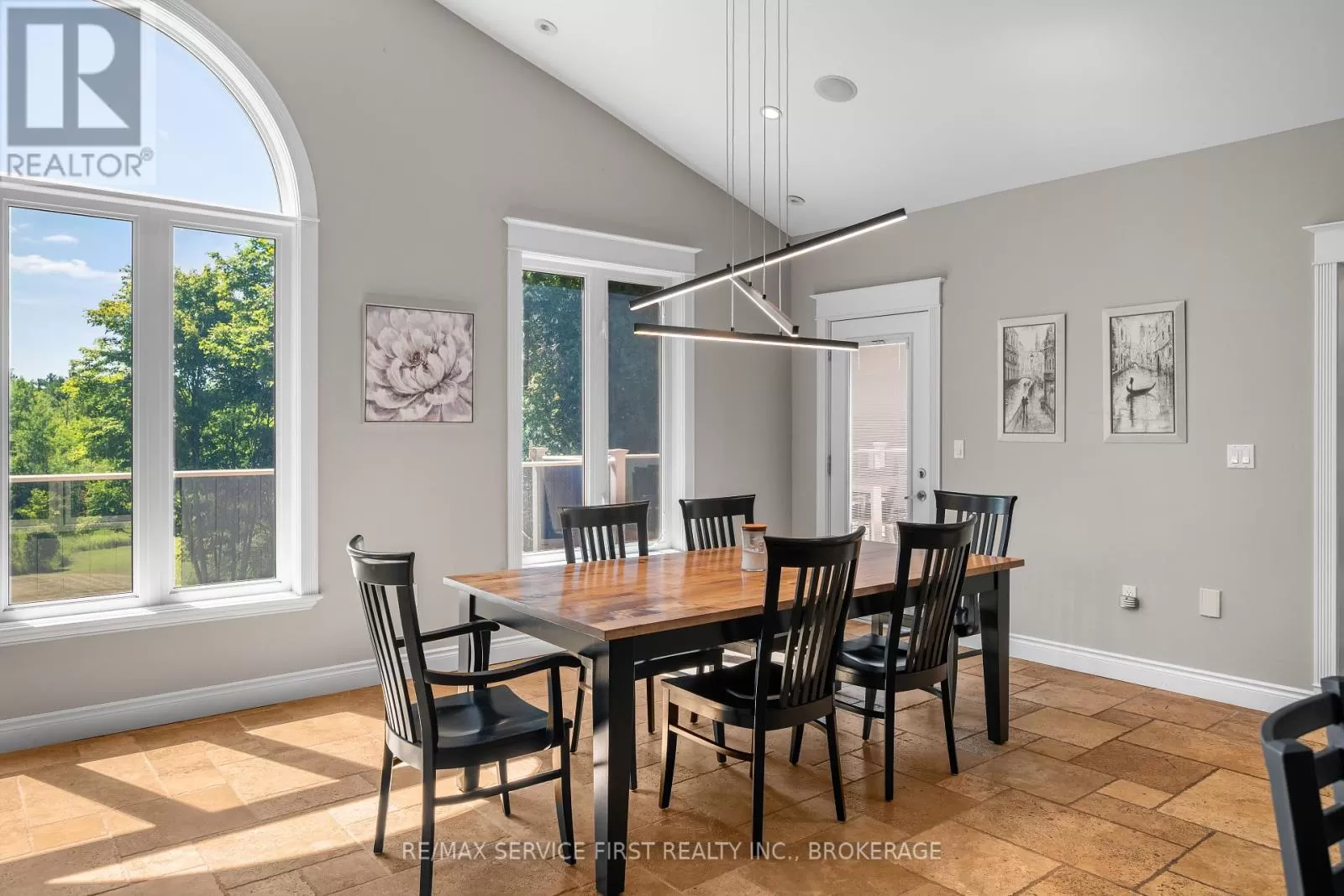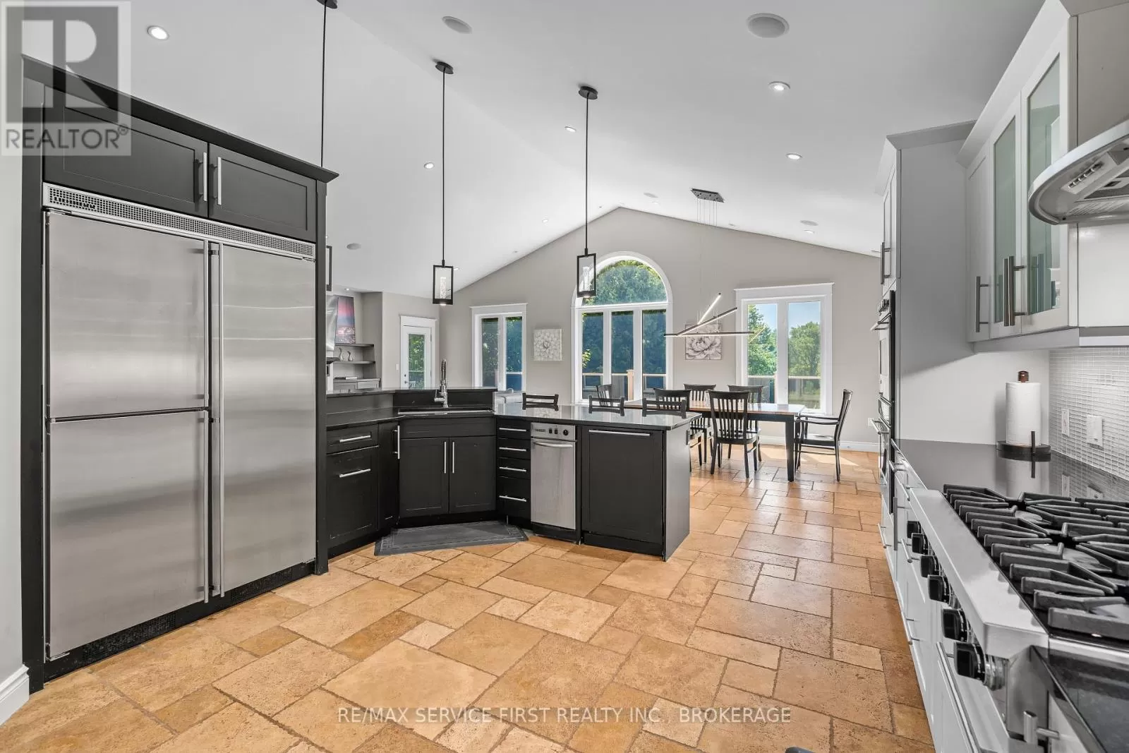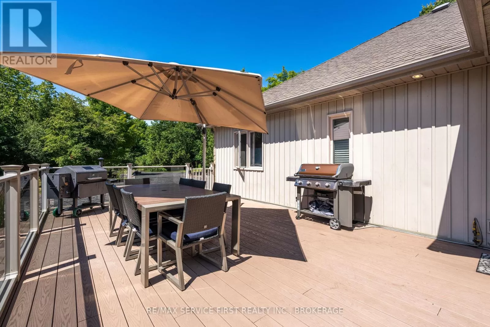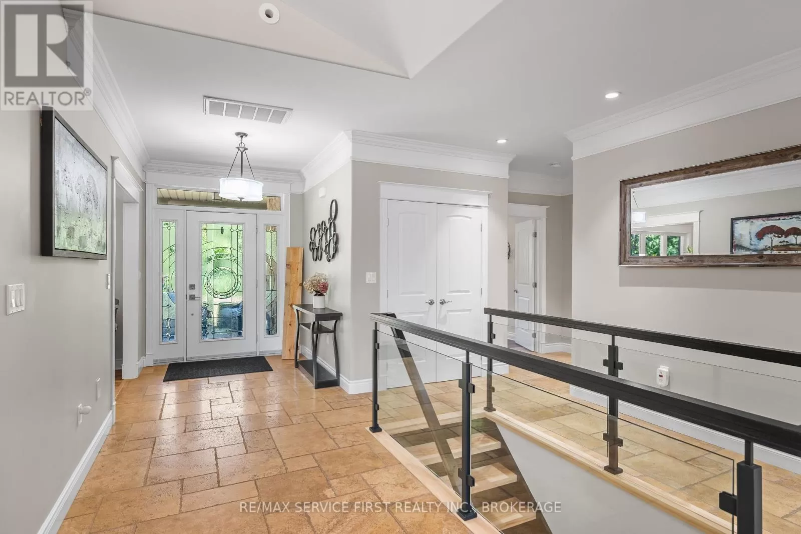 Cross Streets: Highway 38 and Unity Road. ** Directions: 38 Highway to Unity Road. This custom built 2400 sqft executive bungalow is surrounded by rural tranquility as it sits at the back of a 6.5 acre lot and only 10 minutes to the city. Boasting beautiful wooded views from the expansive composite deck with glass railings. The home features 3 plus 1 generous sized bedrooms, 3 and half baths with main floor laundry, in-floor radiant heat on both levels plus in both garages. The full two car attached garage fits 2 trucks, plus the lower-level garage/workshop is perfect for all your storage and toys. The main floor boasts a spacious great room, dining room with vaulted ceiling, glass railings, gas fireplace and travertine tile, plus an office with half bath and crown molding. The open concept kitchen is spacious with all the modern touches. Viking range, built-in double oven, prep area and pantry. The perfect space to entertain. The primary bedroom is complete with patio doors to the rear deck, full bath with glass shower, soaker tub and walk-in closet. Head down the custom hickory stairs with glass railings to the lower level that is fully finished and walk-out, offering loads of natural light in the oversized rec-room with space for the Pool table, ping pong and bar. Plus a bedroom, full bath, den and access to the storage garage/workshop. Step outside to see a private hot tub, landscape lighting, fenced area for the pets and circular drive. Additional updates and features include, Boiler 2025, wall air conditioner unit 2022, water constant pressure system 2022, Hot tub 2022, Ceiling Air conditioning system, plus full generator backup system with new motor 2025. (id:27476)